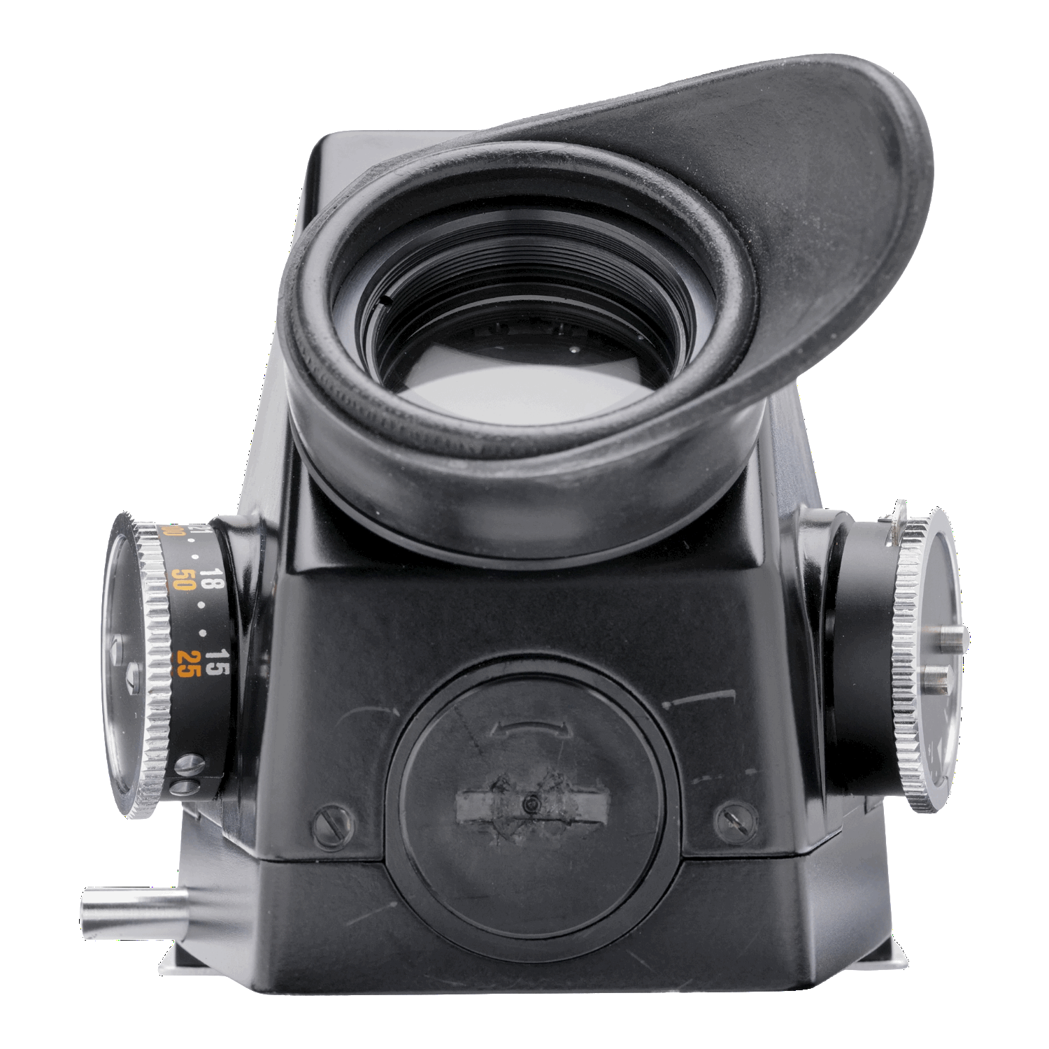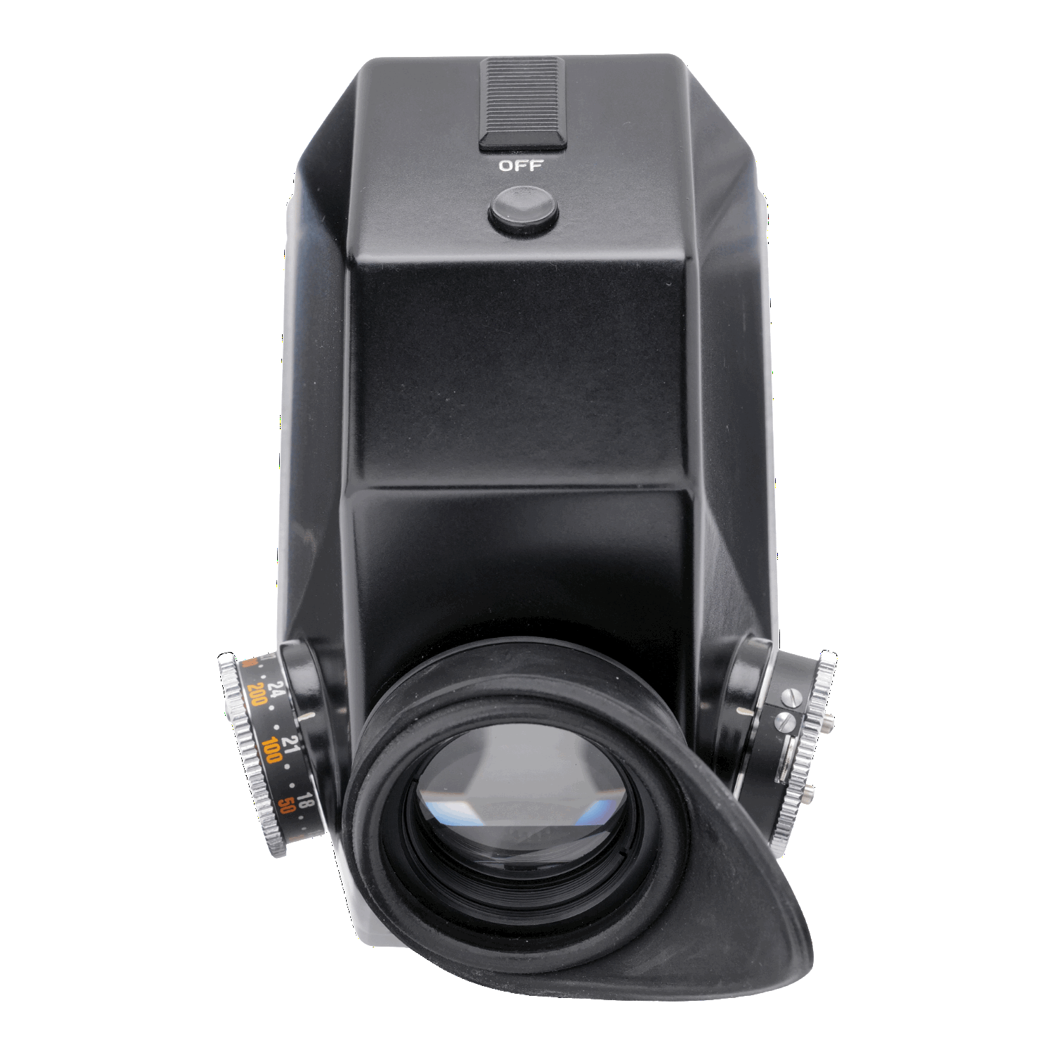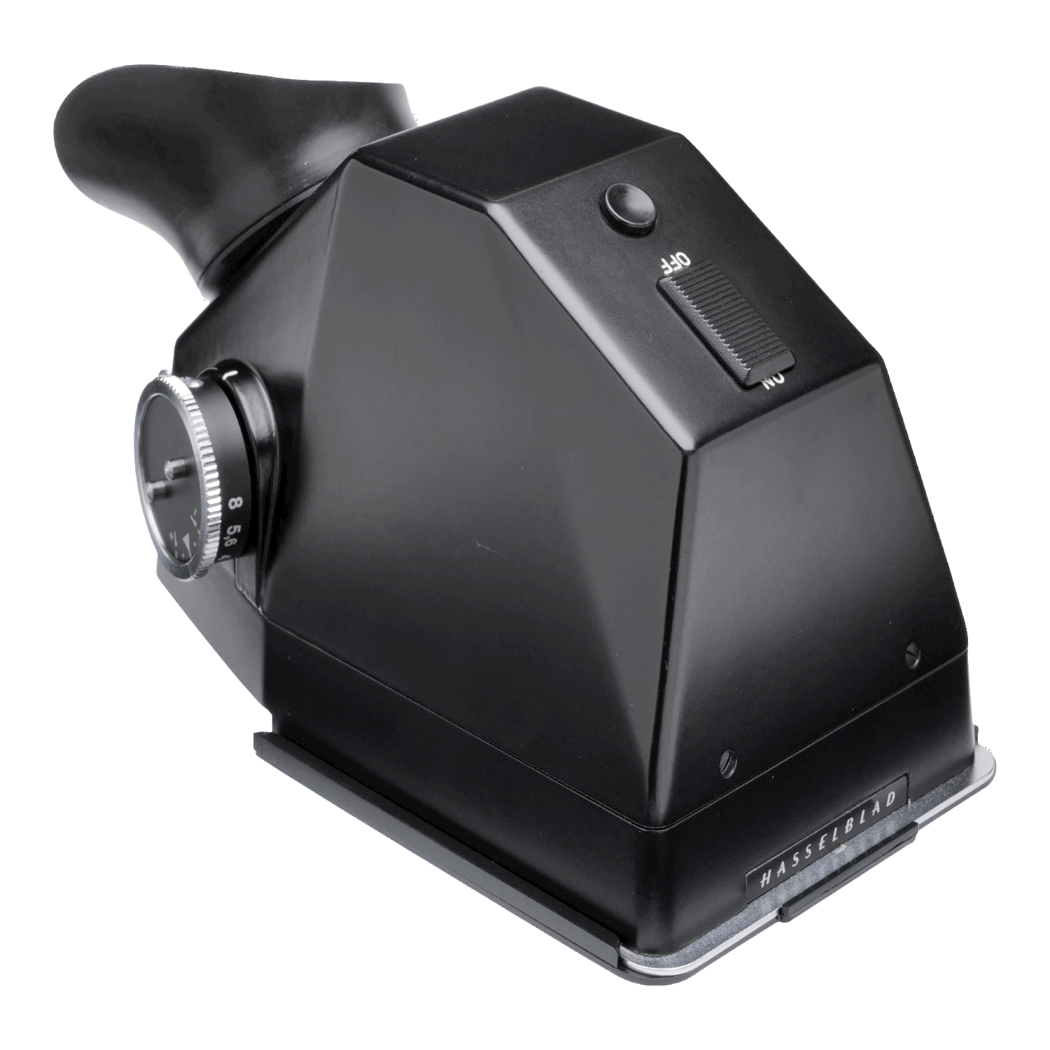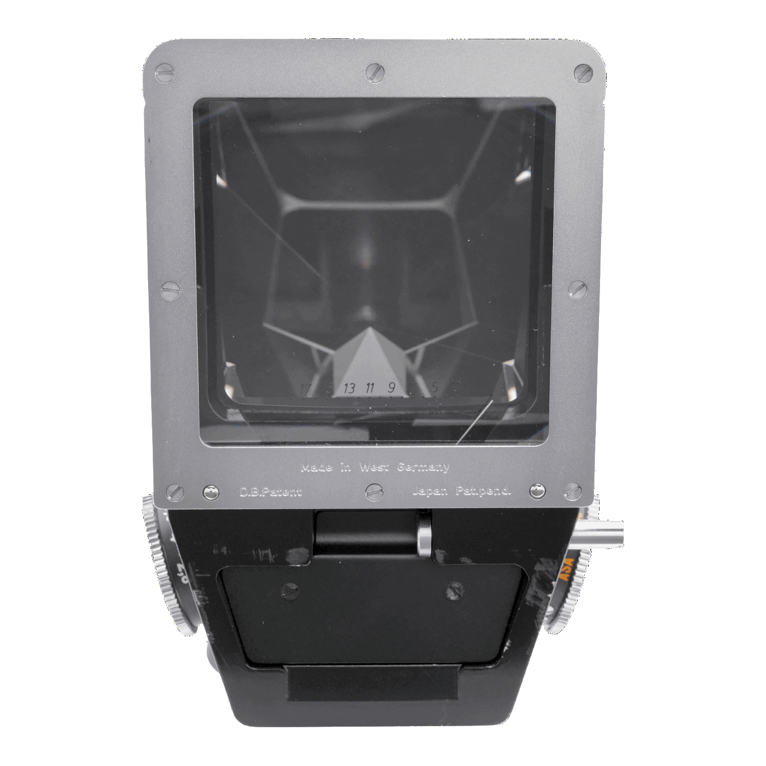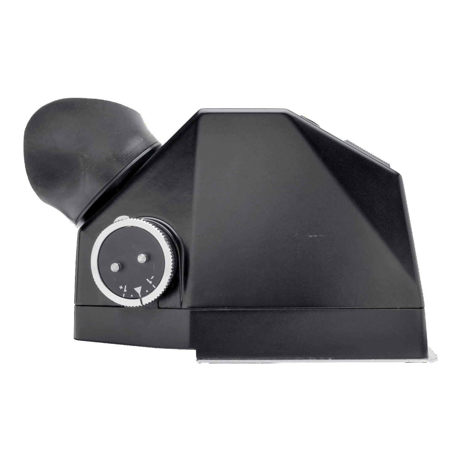 This Hasselblad Meter Prism is in excellent condition with faint wear. I rate it cosmetically at (9+) condition. The meter works and is accurate, but the battery door is marred from use. The finder has no separation or marks, but there is a slight haze that can be cleaned.