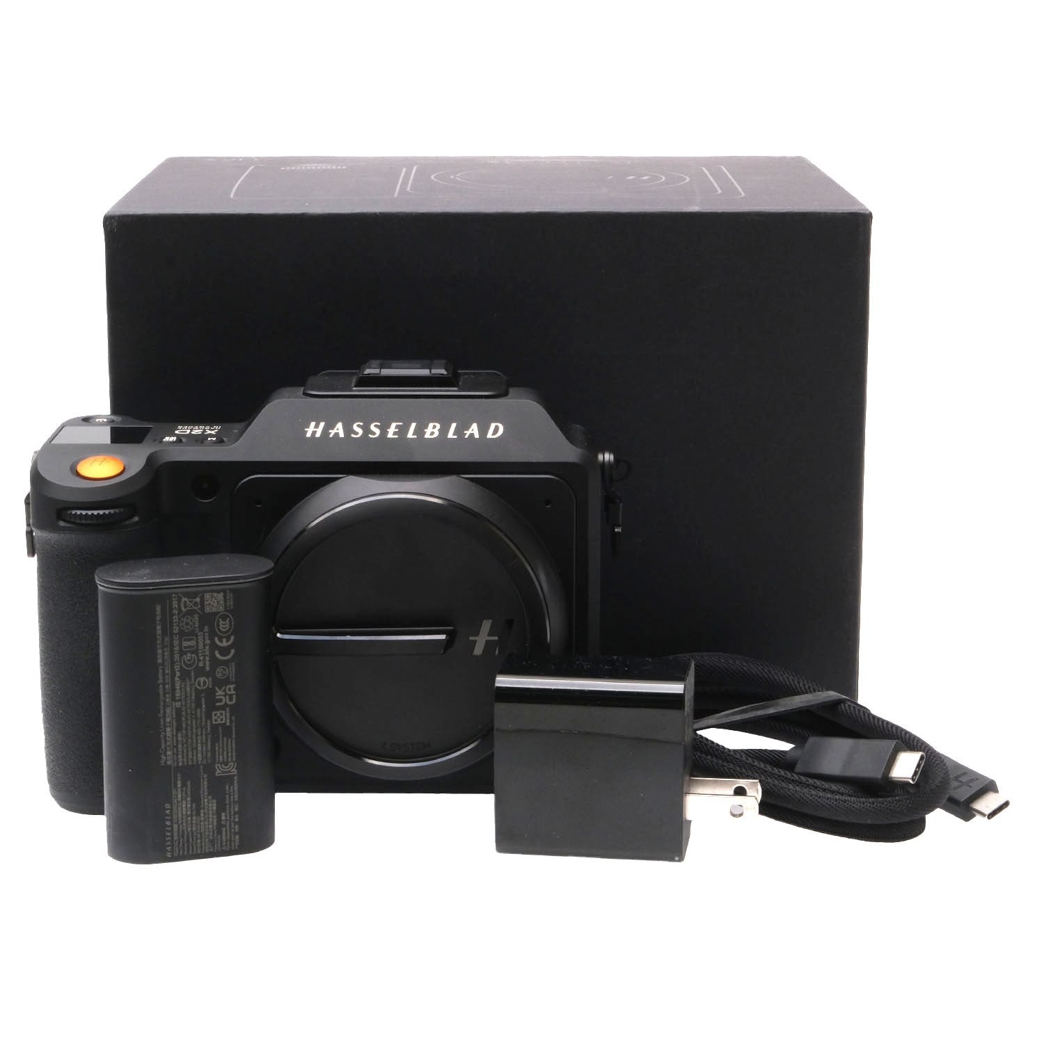 This Hasselblad X2D 100C, #XT24027976, is in great condition with minor handling wear. I rate it cosmetically a (9+). The camera is in proper working order; the viewfinder is clear, the sensor is unmarked, and the memory card slot reads & writes. This camera includes a Hasselblad battery, AC adaptor, USB-C to USB-C cable, neck strap, body cap, hot shoe cover, and the original instructions & box.
