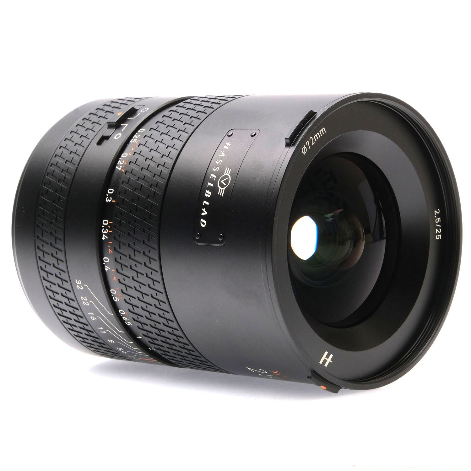 This Hasselblad XCD 25mm f2.5 V Lens, #8RHI12458, is in great condition with minor handling wear. I rate it cosmetically a (9+). It has approximately 10 shutter actuations. The focus and aperture rings are smooth, the autofocus and aperture function properly, and the glass is clean and clear with no haze, marks, or fungus. There are a few faint specks of dust inside, but they do not affect image quality. This lens includes a leather Hasselblad lens pouch, a Hasselblad lens hood, front & rear caps, and the original box.