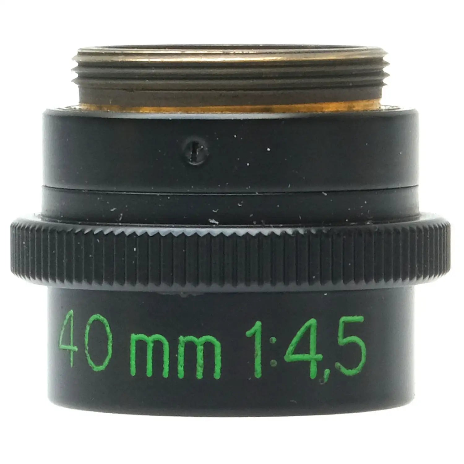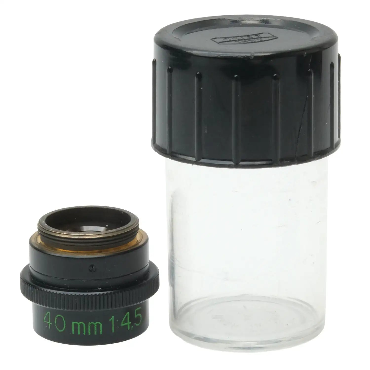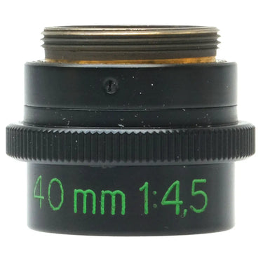 This Zeiss 40mm f4.5 Luminar Macro Lens, #4088643, is in great condition with minor handling wear. I rate it cosmetically a (9+). The aperture ring is quite stiff, but the aperture functions properly and the glass is clean and clear with no haze, marks, or fungus. There are a few faint specks of dust inside, but they do not affect image quality. It has coverage up to 4x5" and optimized magnification between 3.5:1 to 12:1. It includes the original case, the top of which functions as a threaded rear cap. Please refer to the photos for details.