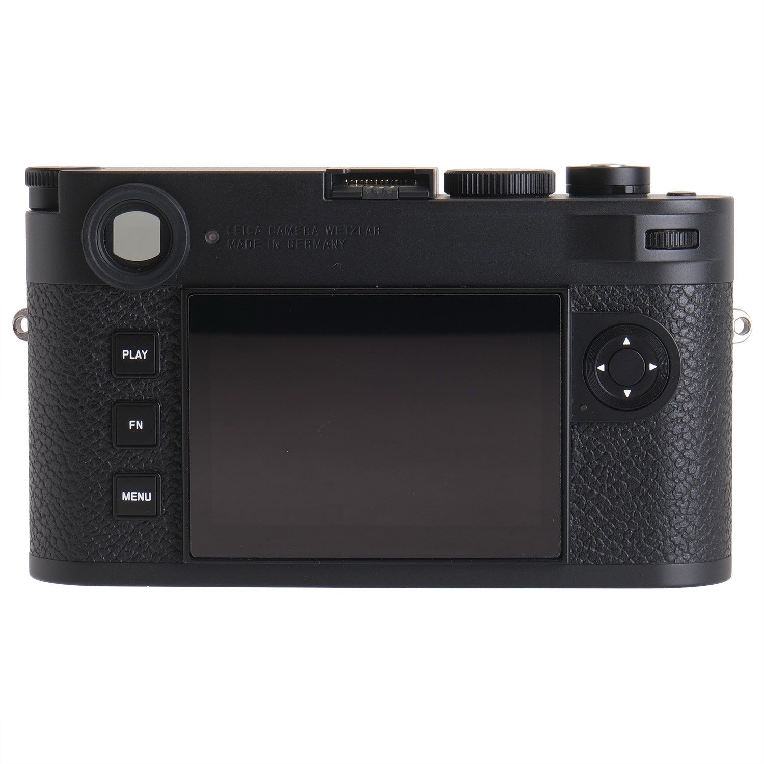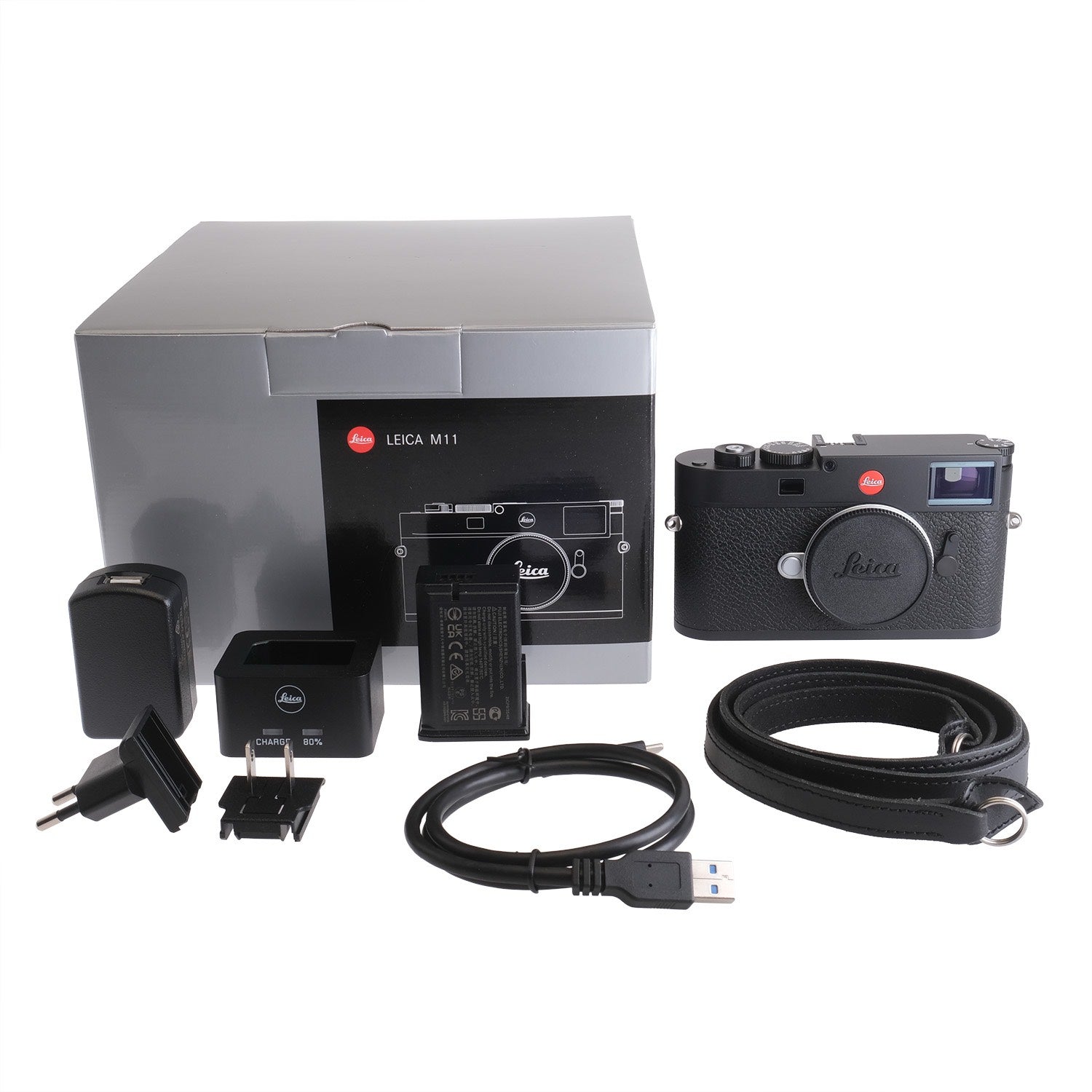 This Leica M11 Camera Body #5589495, is in excellent cosmetic condition with minor signs of handling wear found throughout, please see photos for visual reference. Cosmetically, this camera has been rated at a (9+) condition. This camera is in proper working order; the finder is bright and accurate, the sensor is unmarked, and the memory card slot reads and writes. This camera comes boxed with a neck strap, a battery, and a charger. This camera is ready for use!