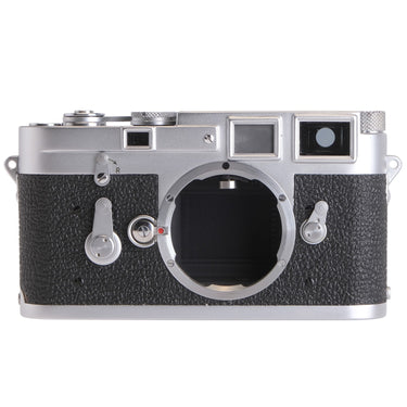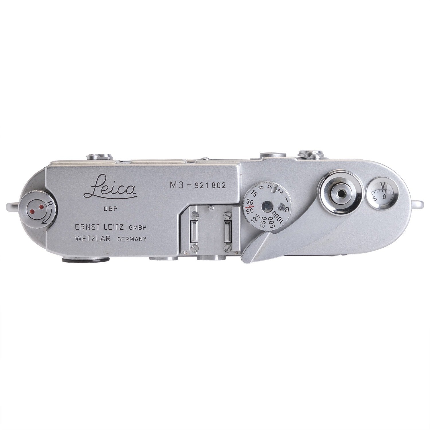 This Leica M3 SS Camera Body #921802, is in good cosmetic condition with minor signs of handling wear found throughout, please see photos for visual reference. Cosmetically, this camera has been rated at a (9) condition. This camera is in proper working order; the finder is bright and accurate, the shutter dial and film advance are smooth, all shutter speeds are accurate, the self timer functions as intended, and the shutter is in excellent condition. This camera was serviced by DAG camera. This camera is ready for use!