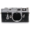 This Leica M3 SS (Silver, Black Leather), #1008542, is in good condition with some handling wear. I rate it cosmetically an (8+). The vulcanite has been replaced with black leather. The camera is in proper working order; film advances properly, the viewfinder is clear, the shutter is accurate at all speeds, the self-timer functions, and the rangefinder is bright & accurate. This camera includes a body cap. Please refer to the photos for details.