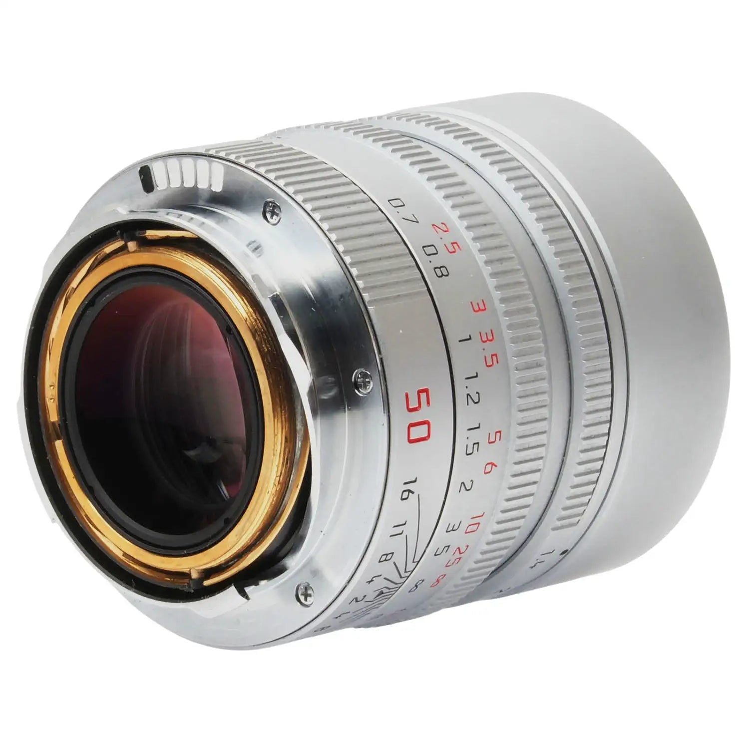 This Leica 50mm f1.4 Summilux-M Asph Lens (Silver), #4789338, is in great condition with minor handling wear. I rate it cosmetically a (9+). The focus and aperture rings are smooth, the aperture functions properly, and the glass is clean and clear with no haze, marks, or fungus. There are a few faint specks of dust inside, but they do not affect image quality. This lens includes a leather Leica lens case, front & rear caps, and the original instructions & box. Please refer to the photos for details.