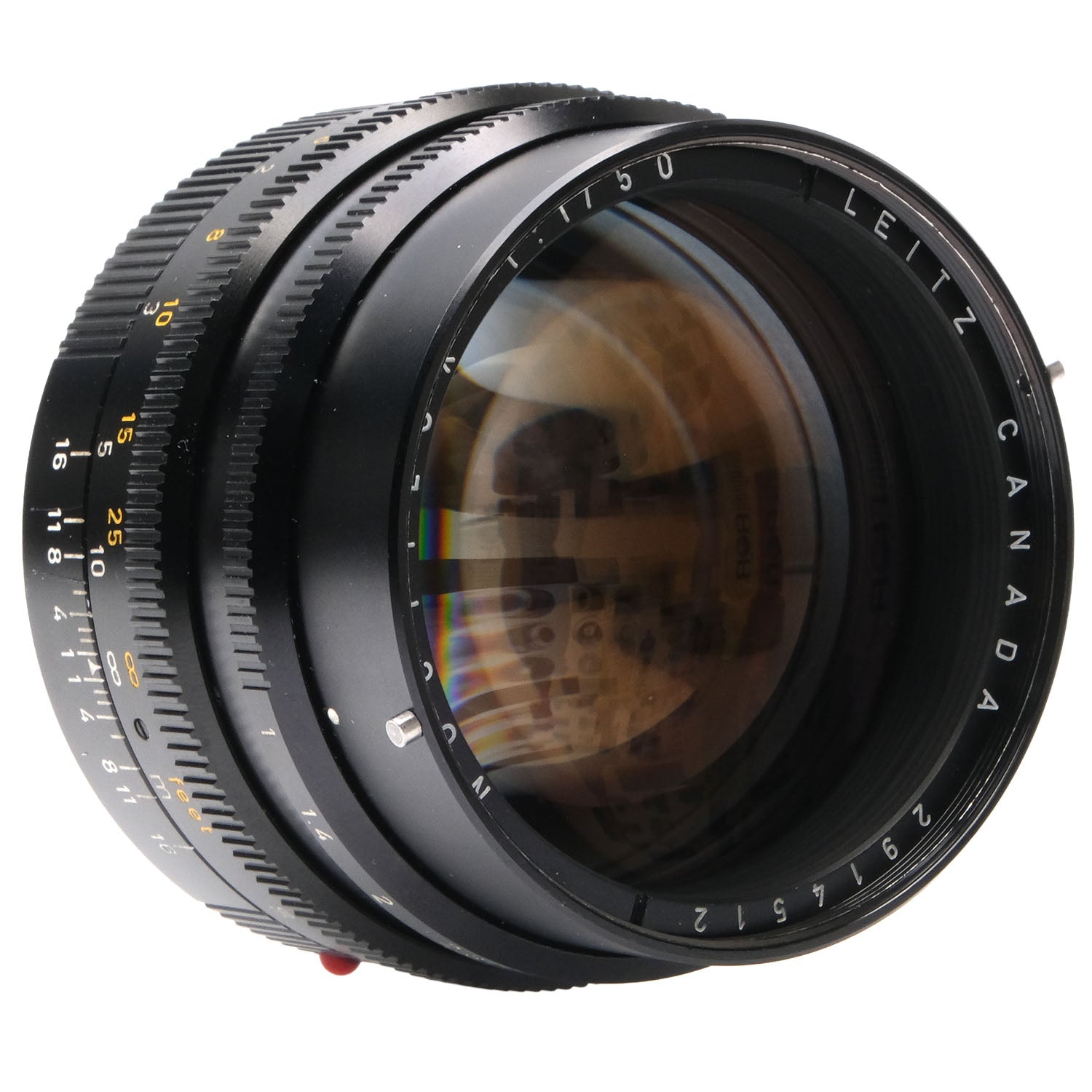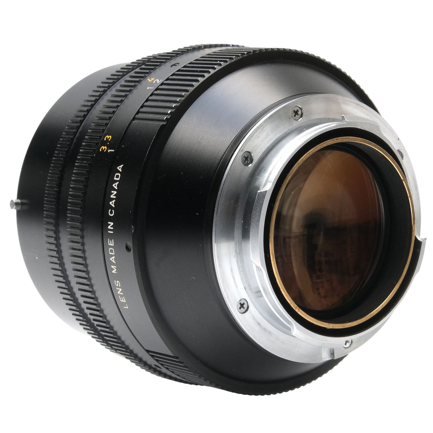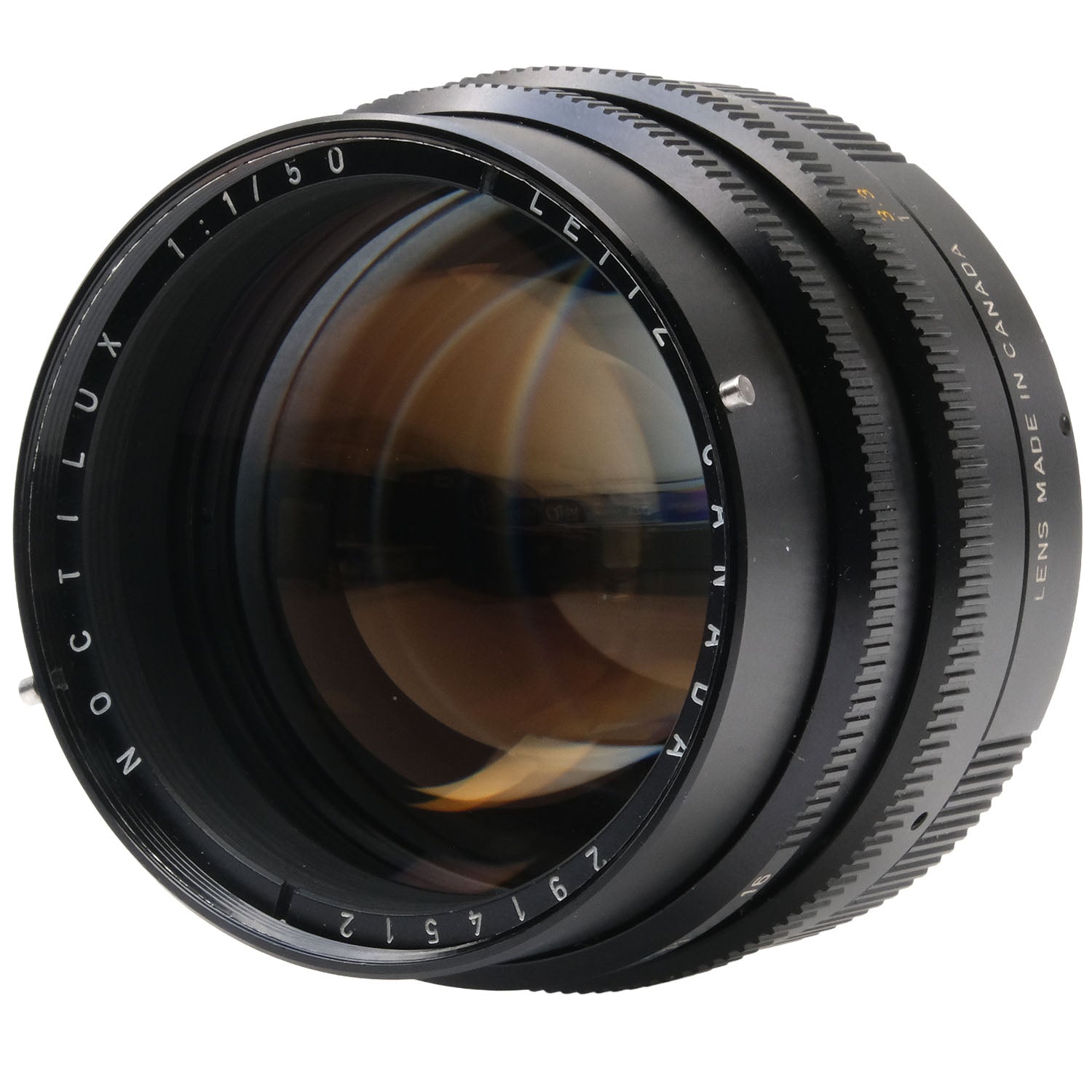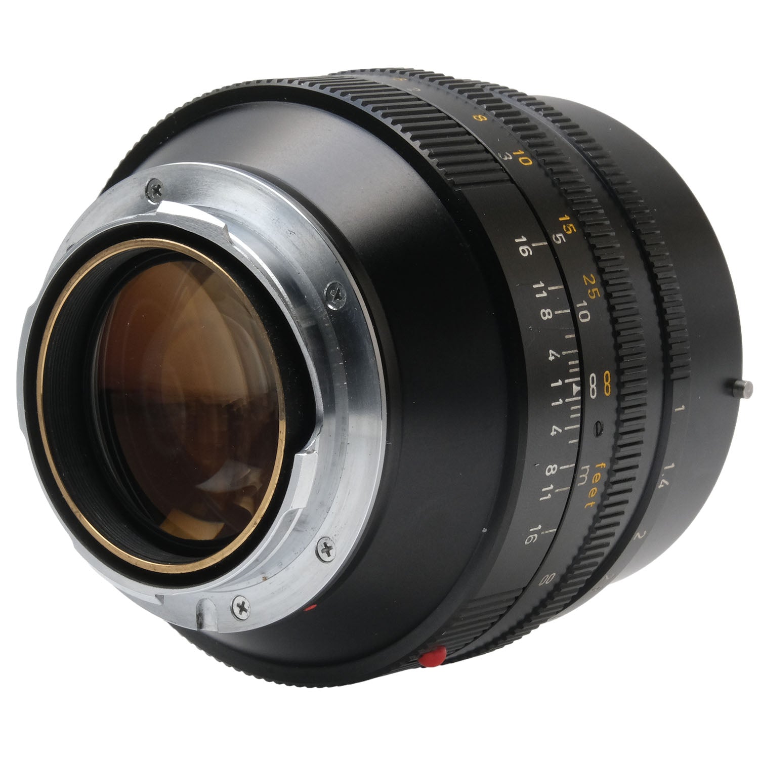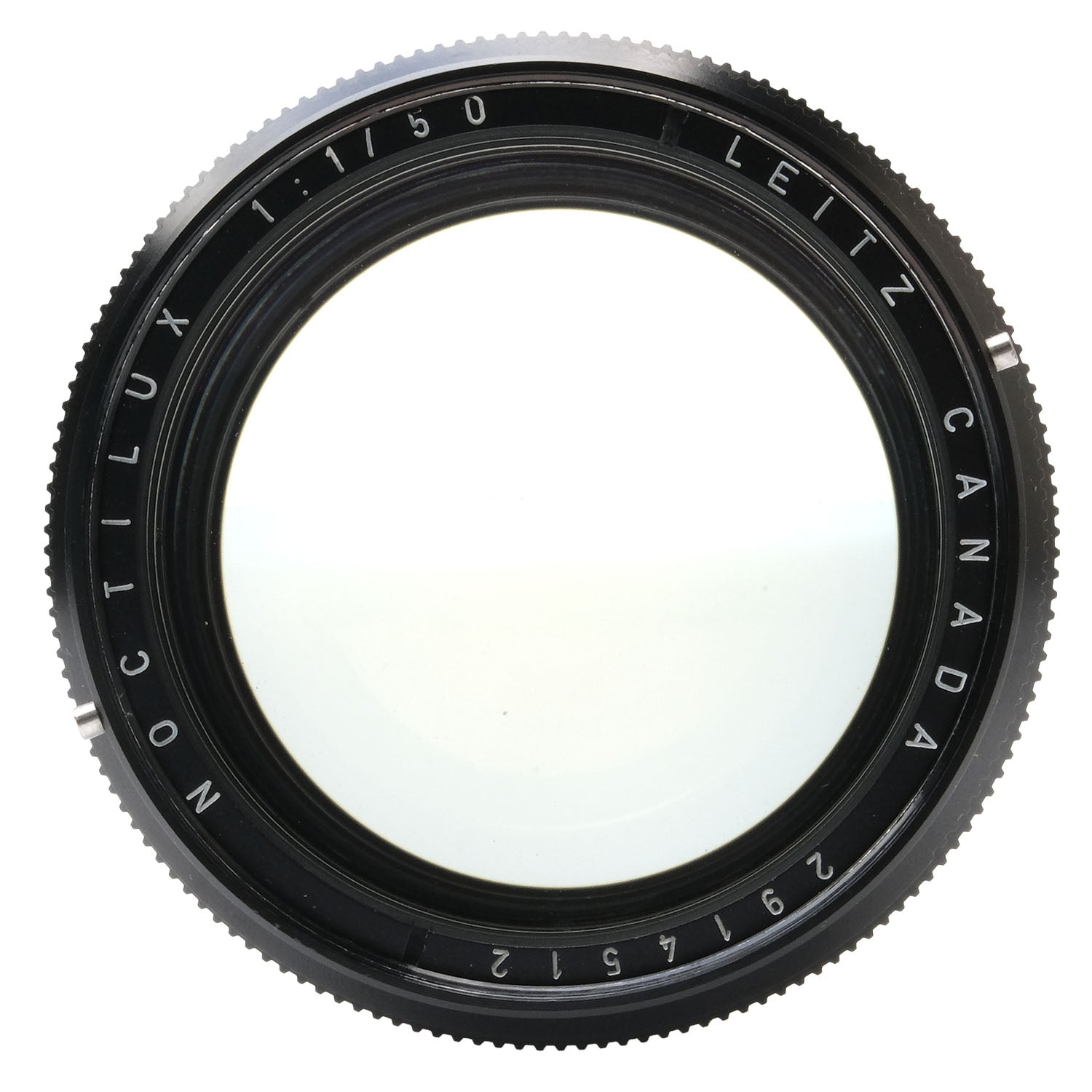 This Leica 50mm f1 Noctilux, #2914512, is in excellent condition with only minor handling wear. I rate it cosmetically at (9+) condition. The focus is smooth and the aperture works properly. The glass is clean and clear with no haze, marks or fungus. The lens comes with both correct caps, although the front cap is repaired. This is from the last year of E58 production and the second to last production batch.