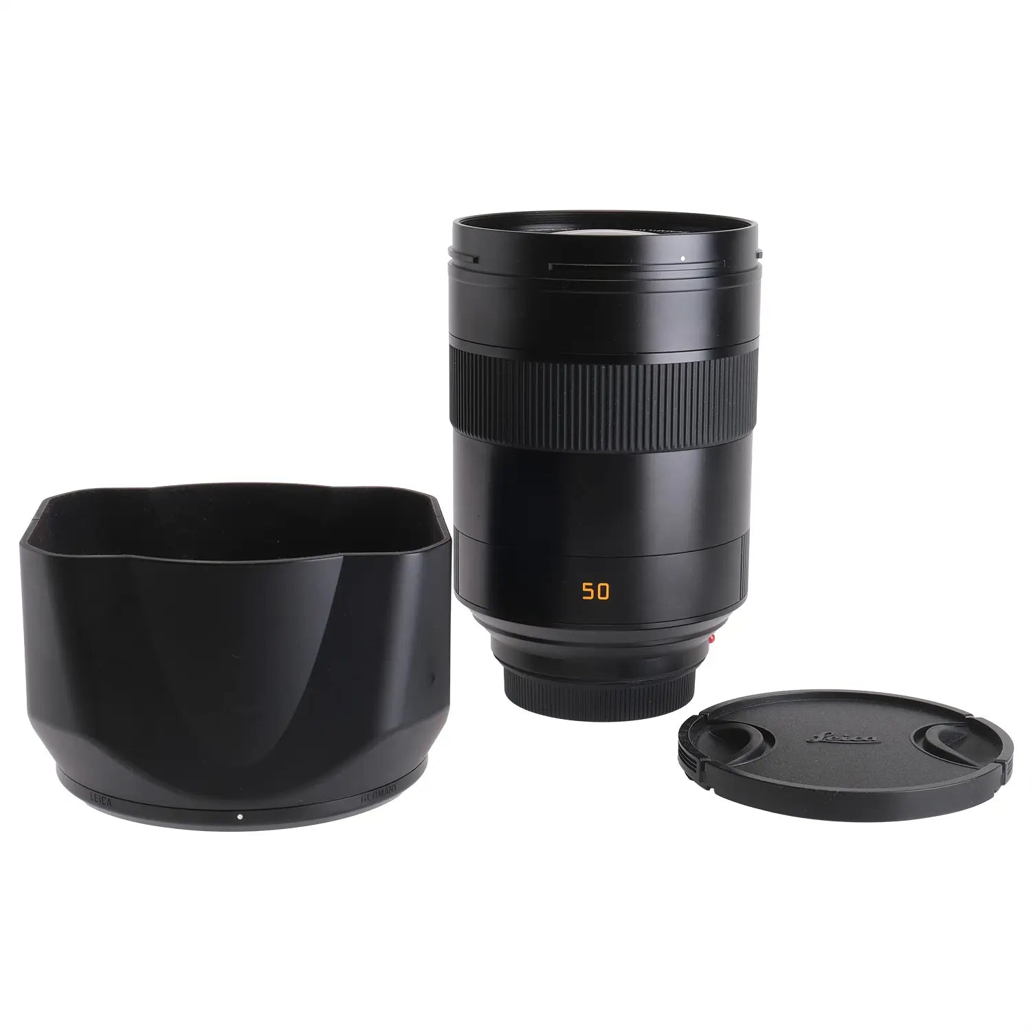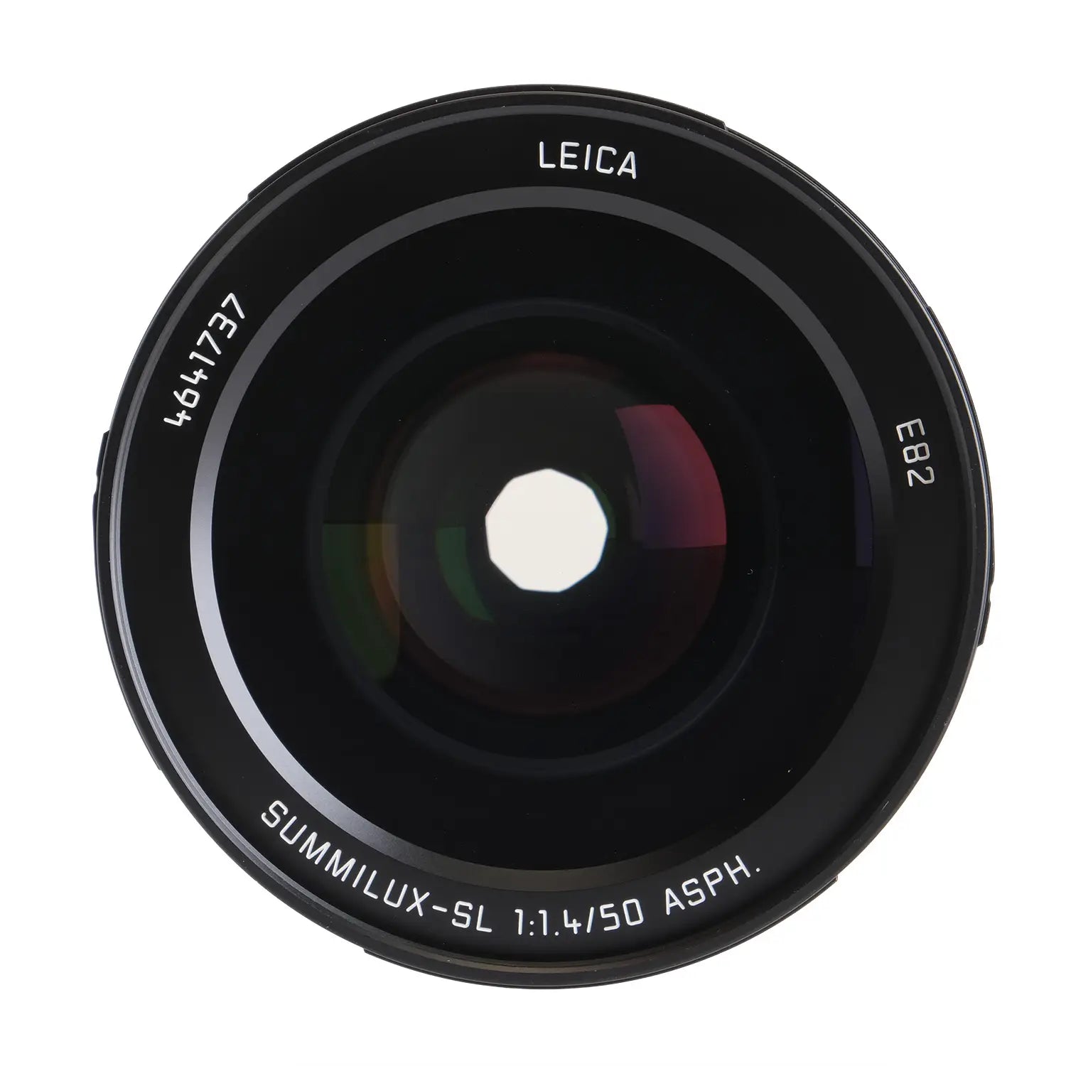 This Leica 50mm f1.4 Summilux-SL ASPH Lens #4641737, is in good cosmetic condition with minor signs of handling wear, please see photos for visual reference. Cosmetically, this lens has been rated at a (9) condition. This lens is in proper working order; the focus ring turns smoothly and the glass is clean and clear with no signs of fungus, haze, or marks present. This lens comes with a lens shade, a front cap, and a rear cap. This lens is ready for use!