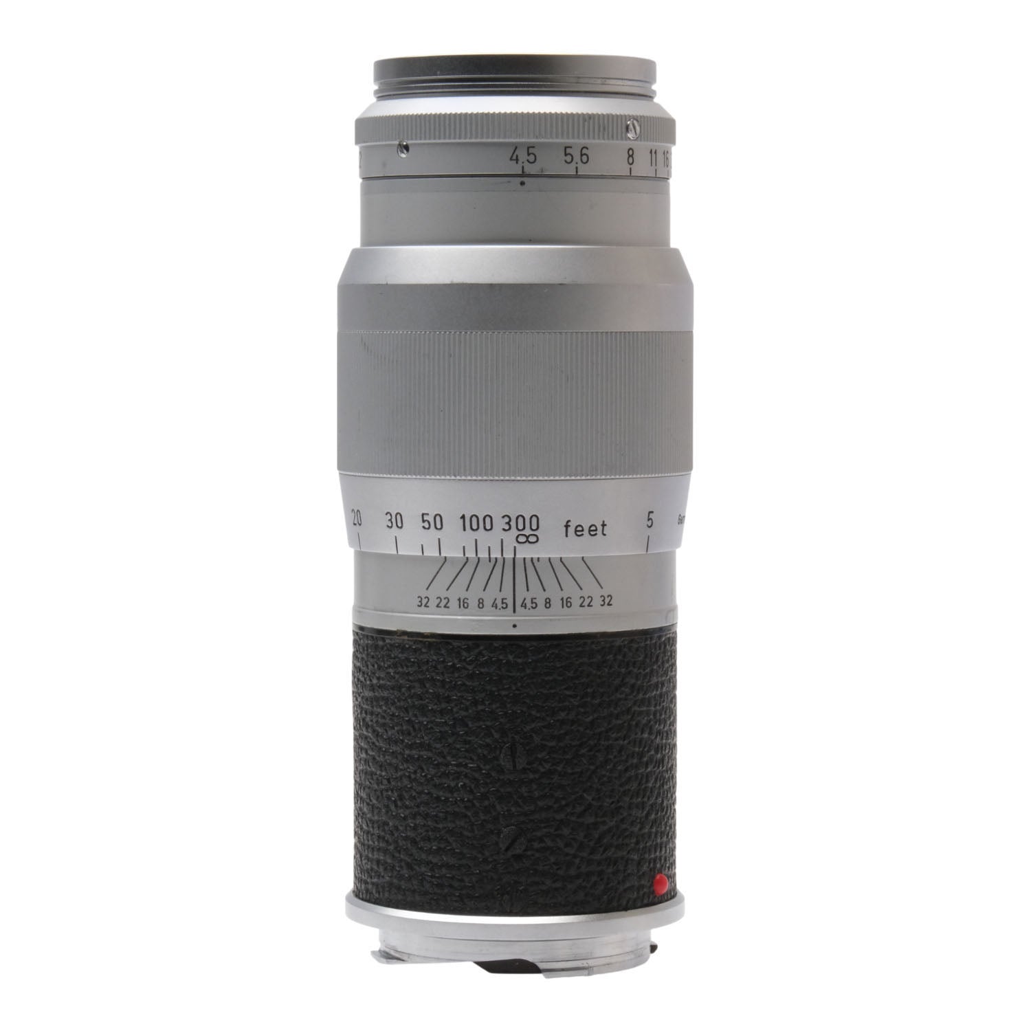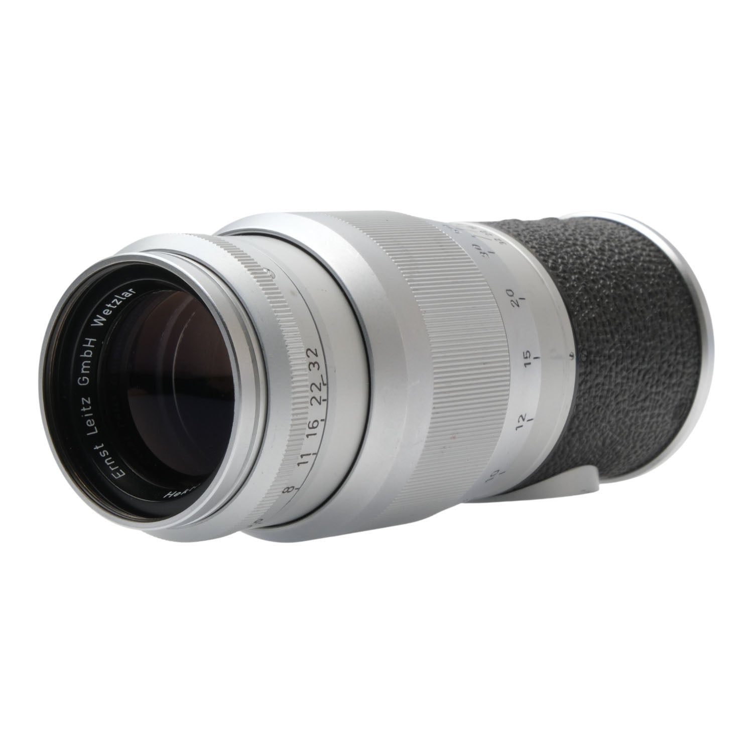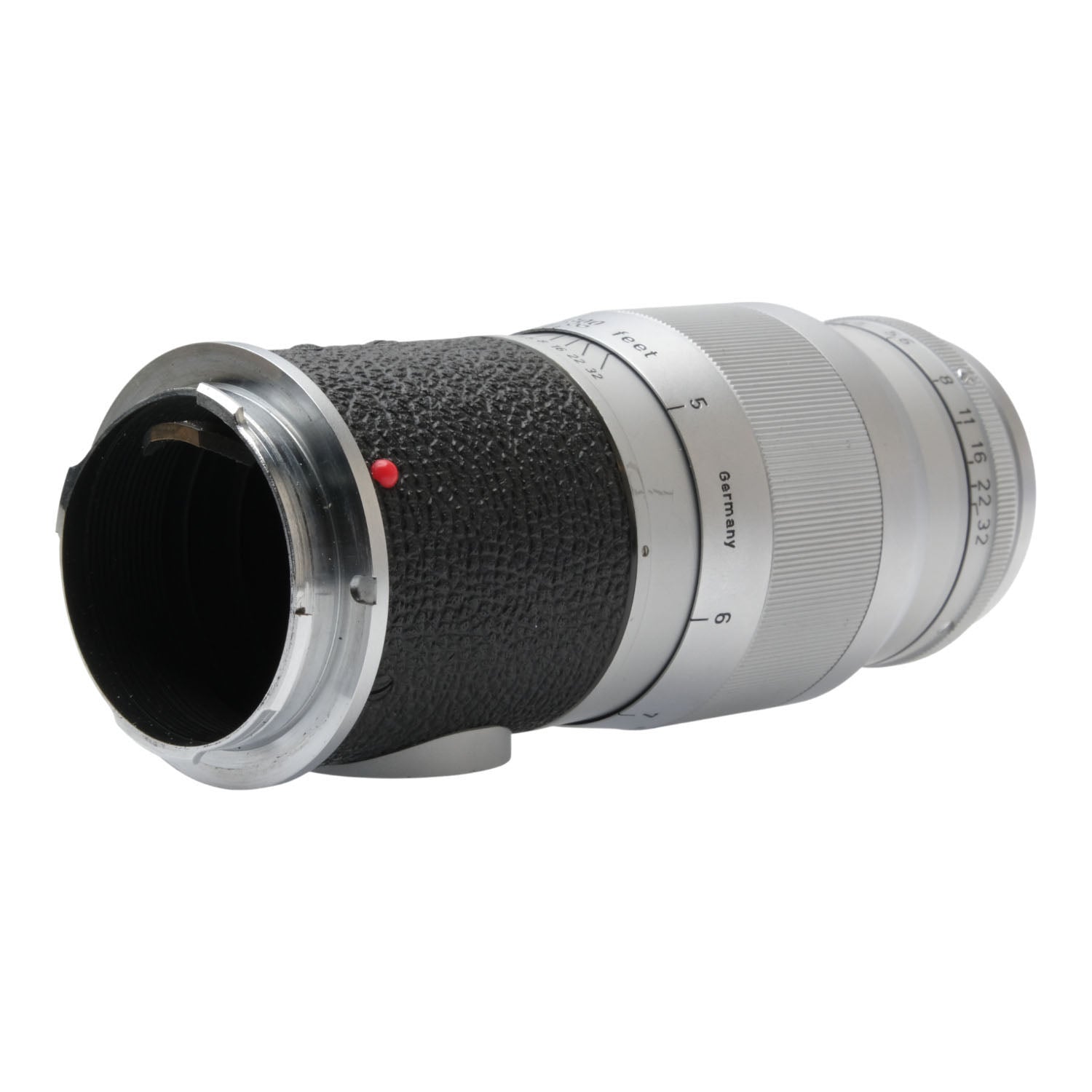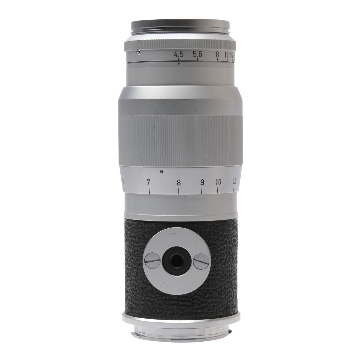 This Leica 13.5cm f4.5 Hektor M Lens (Silver), #1559919, is in good condition with some handling wear. I rate it cosmetically an (8+). The aperture ring is smooth, the aperture functions properly, and the glass has no marks or fungus, but there's some haze and dust inside. The focusing helicoid is smooth. This lens includes front & rear caps. Please refer to the photos for details.