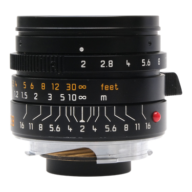 This Leica 28mm f2 Summicron-M Asph Lens (Black), #4126857, is in great condition with minor handling wear. I rate it cosmetically a (9). The focus and aperture rings are smooth, the aperture functions properly, and the glass is clean and clear with no haze, marks, or fungus. There are a few faint specks of dust inside, but they do not affect image quality. This lens includes a leather Leica lens case, a clip-on Leica lens hood with a front cover, and standard rear lens cap.Please refer to the photos for details.