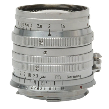 This Leica 5cm f1.5 Summarit Lens, #1119399 is in average condition with minor edge wear. I rate it cosmetically at (8+) condition. The focus is smooth and the aperture works well. The glass has no fungus. There are minor cleaning marks and there is faint edge haze in the rear. The lens shoots well and comes with front and rear caps