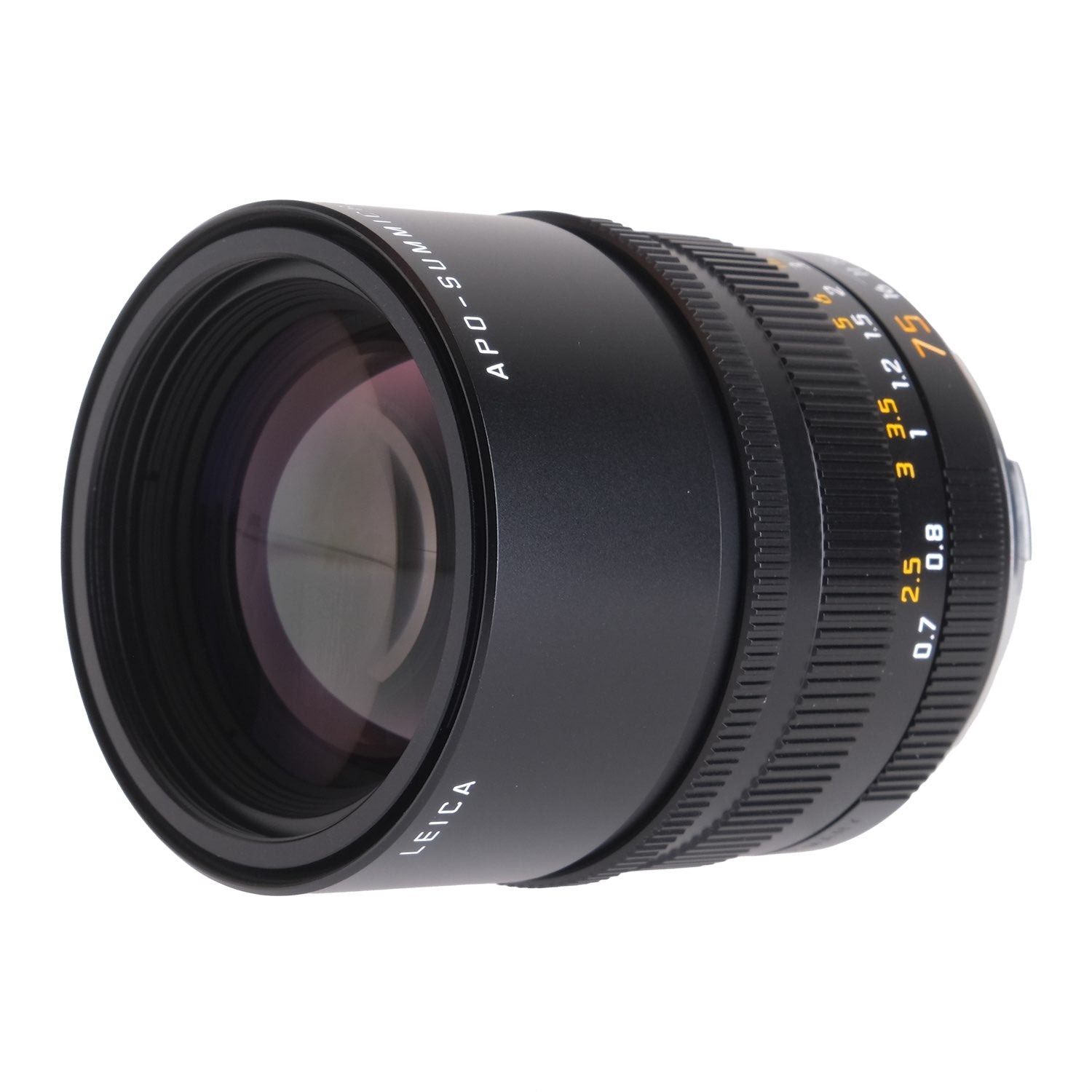 This Leica 75mm f2 Apo-Summicron-M ASPH Lens #4758754, is in excellent cosmetic condition with very faint signs of handling wear found throughout, please see photos for visual reference. Cosmetically, this lens has been rated at a (9+) condition. This lens is in proper working order; the aperture and focus turn smoothly, and the glass is clean and clear with no signs of fungus, haze, or marks present. This lens comes boxed with a leather case, a front cap, and a rear cap. This lens is ready for use!