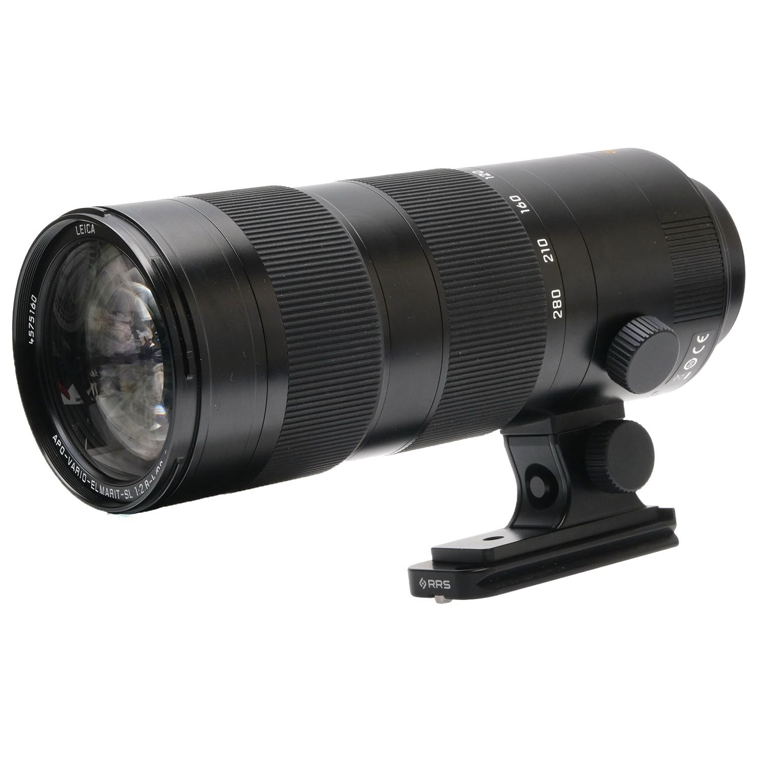 This Leica 90-280mm f2.8-4 APO-Vario-Elmarit-SL Zoom Lens, #4575160, is in great condition with minor handling wear. I rate it cosmetically an (9+). The focus and zoom rings are smooth, the autofocus and aperture function properly, and the glass is clean and clear with no haze, marks, or fungus. There are a few faint specks of dust inside, but they do not affect image quality. This lens includes a Leica lens hood, tripod mounting foot, a Really Right Stuff plate, and front & rear caps. Please refer to the photos for details.