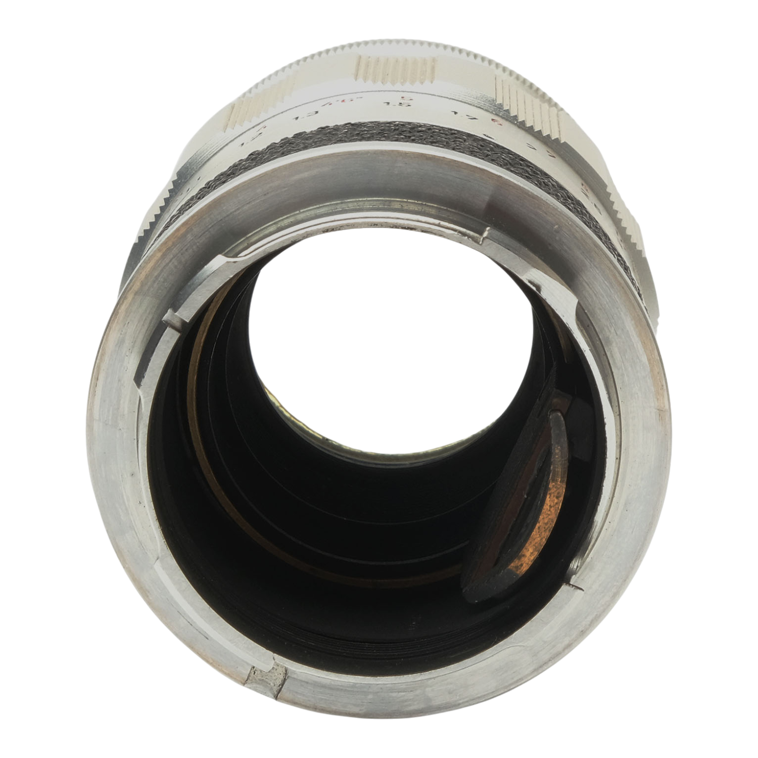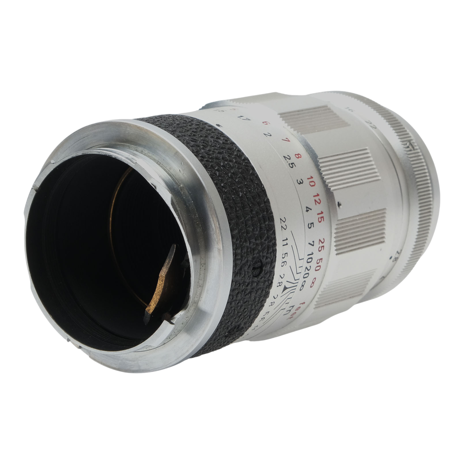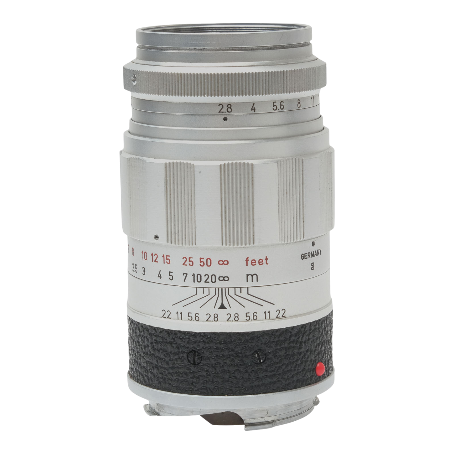 This Leica 90mm f2.8 Elmarit M Lens (Silver), #1761174, is in great condition with minor handling wear. I rate it cosmetically a (9). The aperture ring is smooth, the aperture functions properly, and the glass is clean and clear with no haze, marks, or fungus. There are a few faint specks of dust inside, but they do not affect image quality. The focusing helicoid is a bit stiff. This lens includes a Leica UVa filter and a rear lens cap, but no front cap. Please refer to the photos for details.