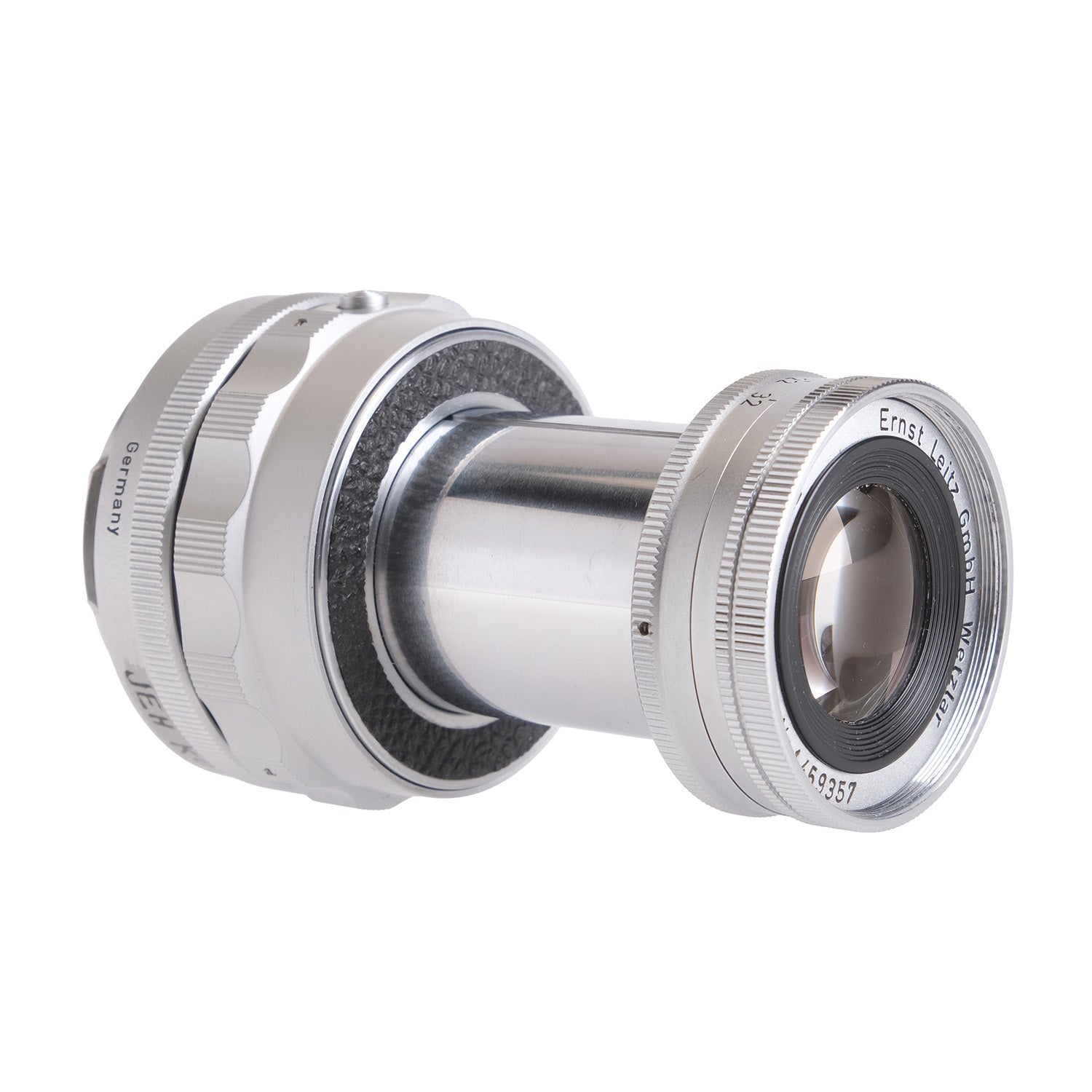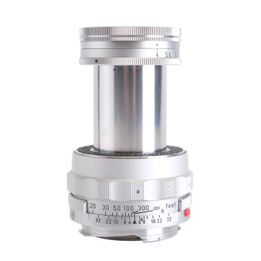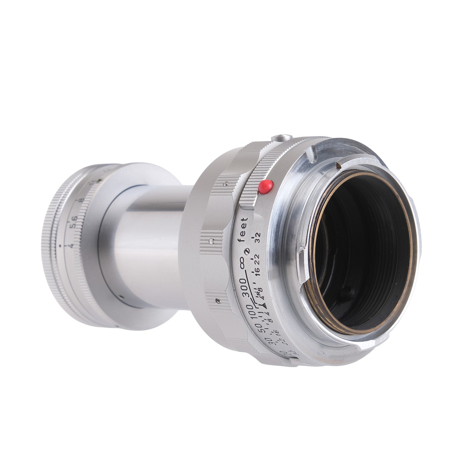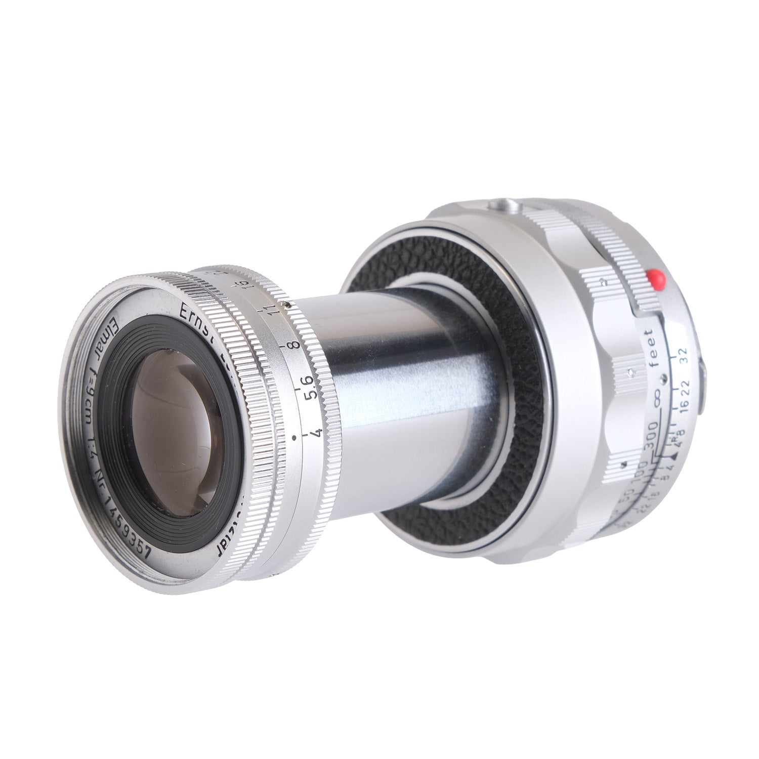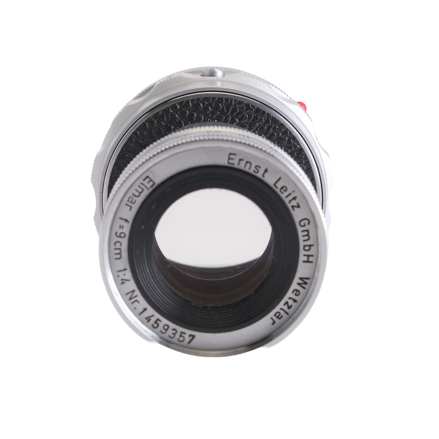 This Leica 9cm f4 Elmar Lens #1459357, is in excellent cosmetic condition with minor signs of handling wear found throughout. There is an engraving on the rear of the lens, please see photos for visual reference. Cosmetically, this lens has been rated at a (9+) condition. This lens is in proper working order; the aperture and focus turn smoothly, and the glass has minor haze which should not affect image quality. There are no signs of fungus or marks present. This lens comes with a front and rear cap only. This lens is ready for use!