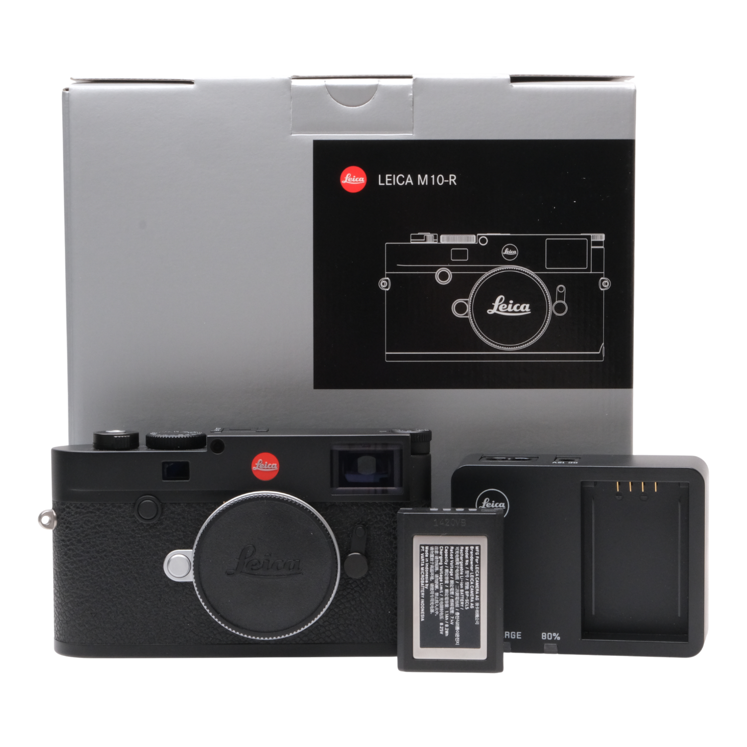 This Leica M10-R (Black), #5514079, is in great condition with minor handling wear. I rate it cosmetically a (9+). The camera is in proper working order; the viewfinder is clear, the sensor is unmarked, the memory card slot reads & writes, and the rangefinder is bright & accurate. This camera includes a Leica battery, battery charger, charging cables, neck strap, body cap, hot shoe cover, and the original instructions & box. Please refer to the photos for details.