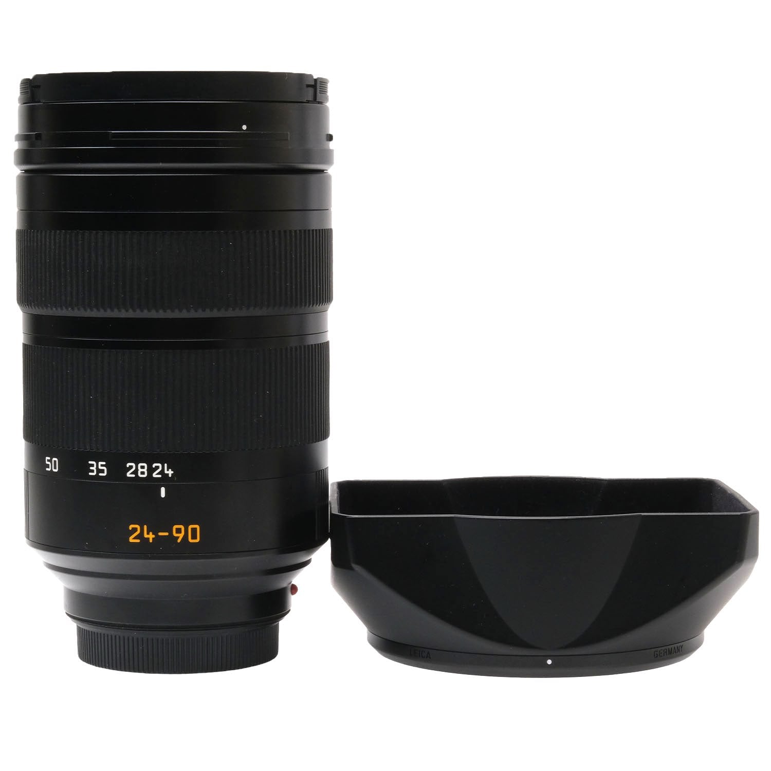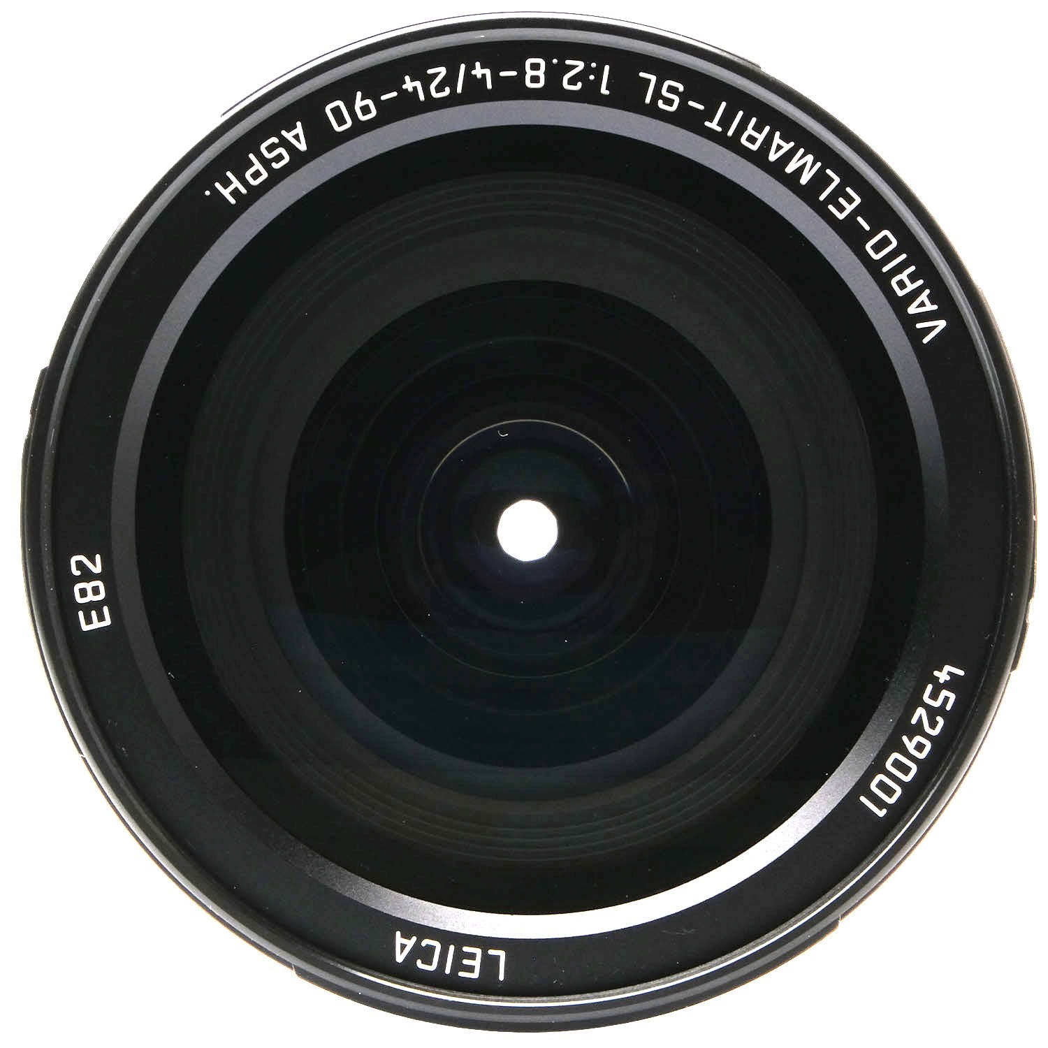 This Leica 24-90mm f2.8-4 Vario-Elmarit-SL Asph Zoom Lens, #4529001, is in great condition with minor handling wear. I rate it cosmetically a (9). The focus ring is smooth, but the zoom ring is a bit stiff. The autofocus and aperture function properly and the glass is clean and clear with no haze, marks, or fungus. There are a few faint specks of dust inside, but they do not affect image quality. This lens includes a Leica lens hood and front & rear caps. Please refer to the photos for details.