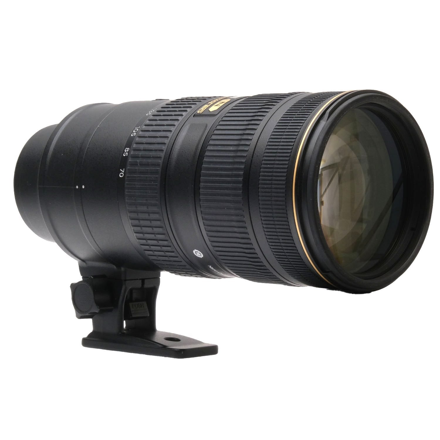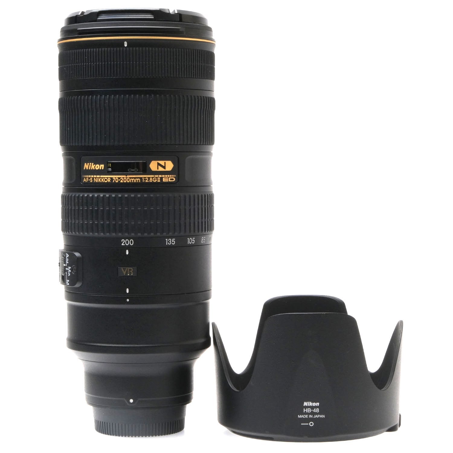 This Nikon AF-S 70-200mm f2.8 G II ED N VR Nikkor Zoom Lens, #US20112462, is in great condition with minor handling wear. I rate it cosmetically a (9). The focus ring is smooth, but the zoom ring is a bit rough. The autofocus and aperture function properly, and the glass is clean and clear with no haze, marks, or fungus. There are a few faint specks of dust inside, but they do not affect image quality. This lens includes a Nikon lens hood, tripod mounting foot, and front & rear caps. Please refer to the photos for details.