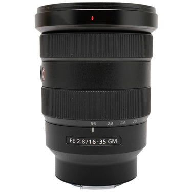 This Sony 16-35mm f2.8 GM #1804036 is in _ cosmetic condition with _ wear found throughout, please see photos for visual reference. Cosmetically, this lens has been rated at a (9+) condition. This lens is in proper working order; the zoom and the focus ring turn smoothly, the autofocus is accurate, and the glass is clean and clear with no signs of fungus, haze, or marks present. This lens includes front/rear caps.