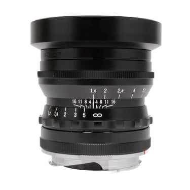 This Voigtlander 50mm f1.5 Nokton Lens, #8360023, is in nice condition with minor handling wear. I rate it cosmetically at (9) condition. The focus is smooth and the aperture works well. The glass is clean and clear with no haze, marks or fungus. The lens comes with both caps, lens shade and original box,