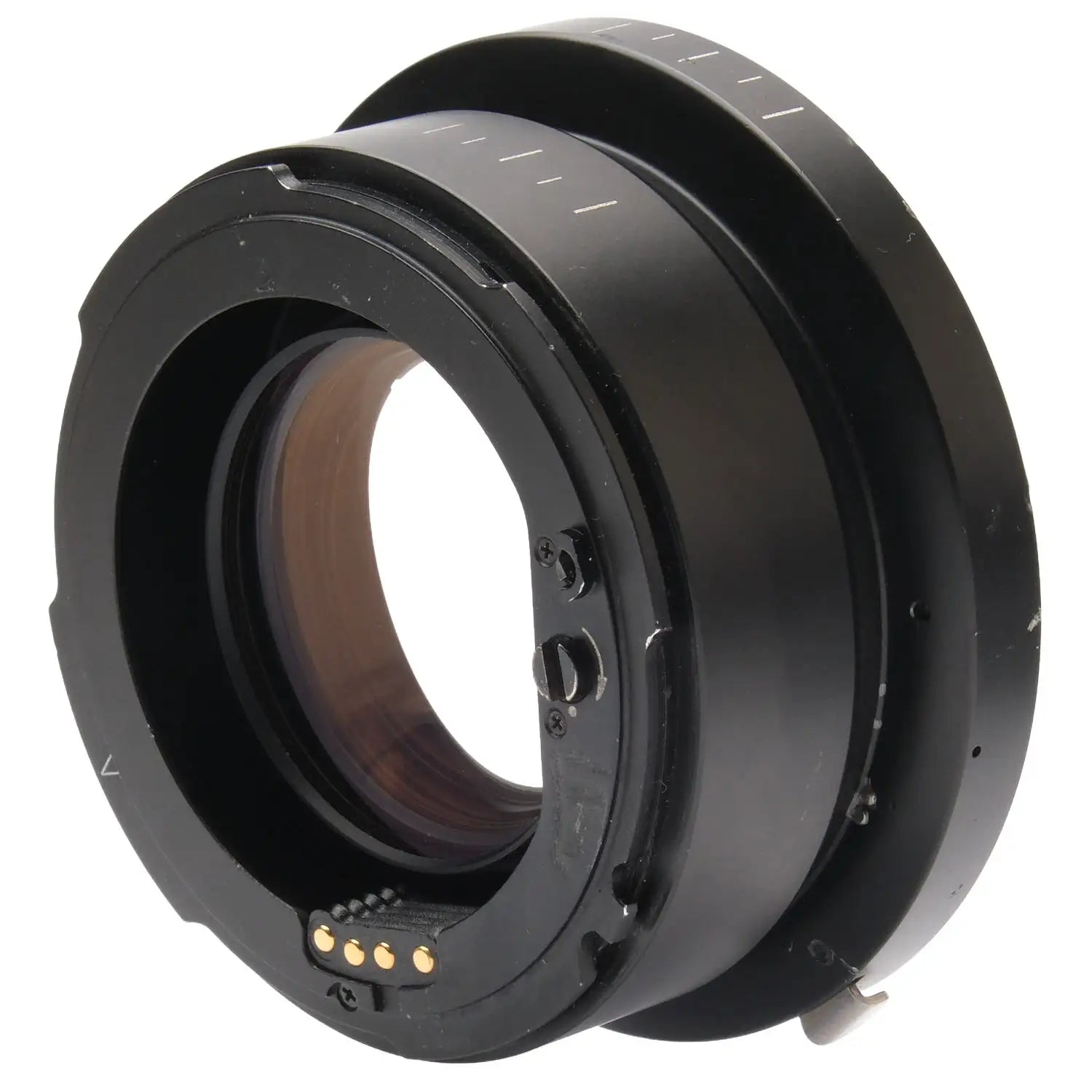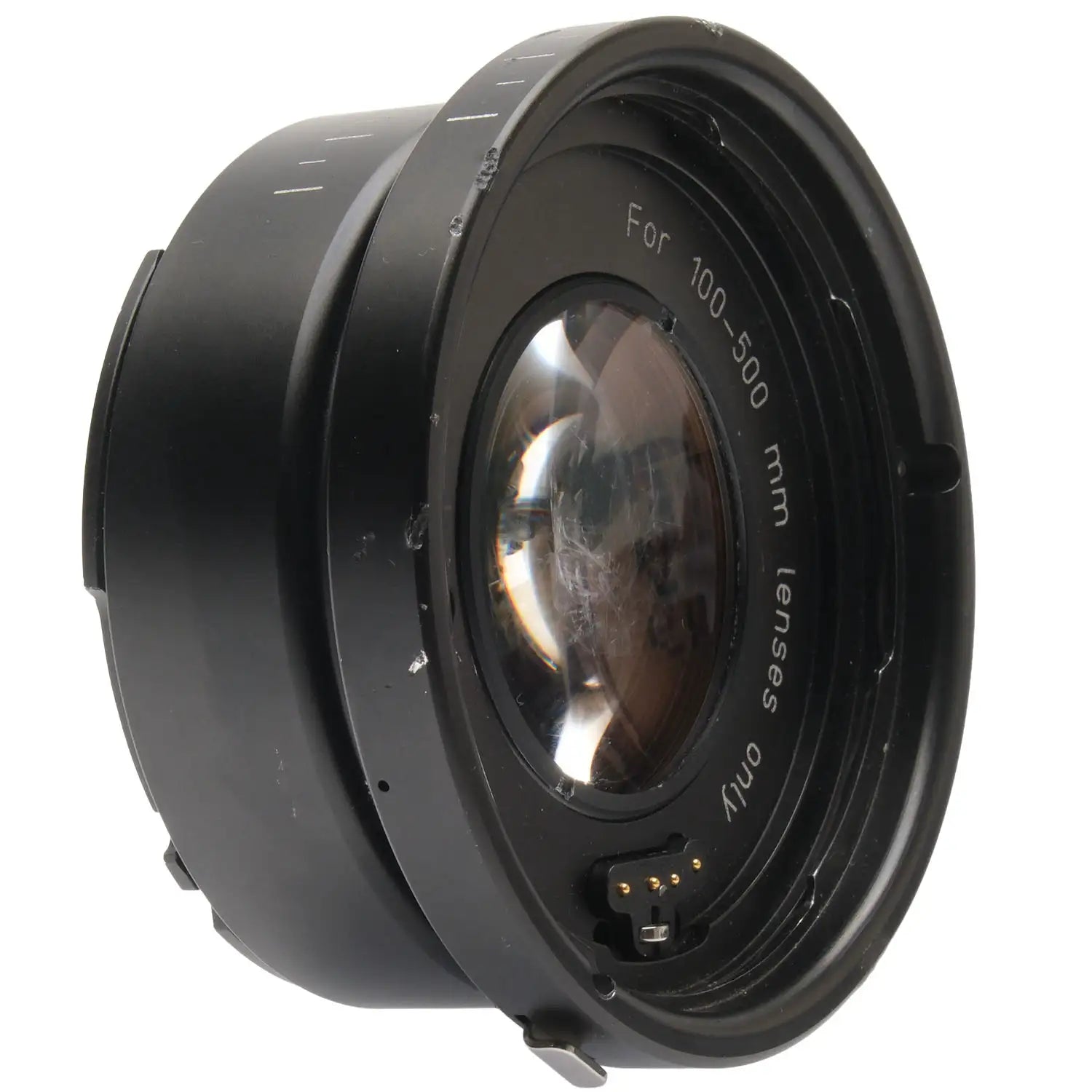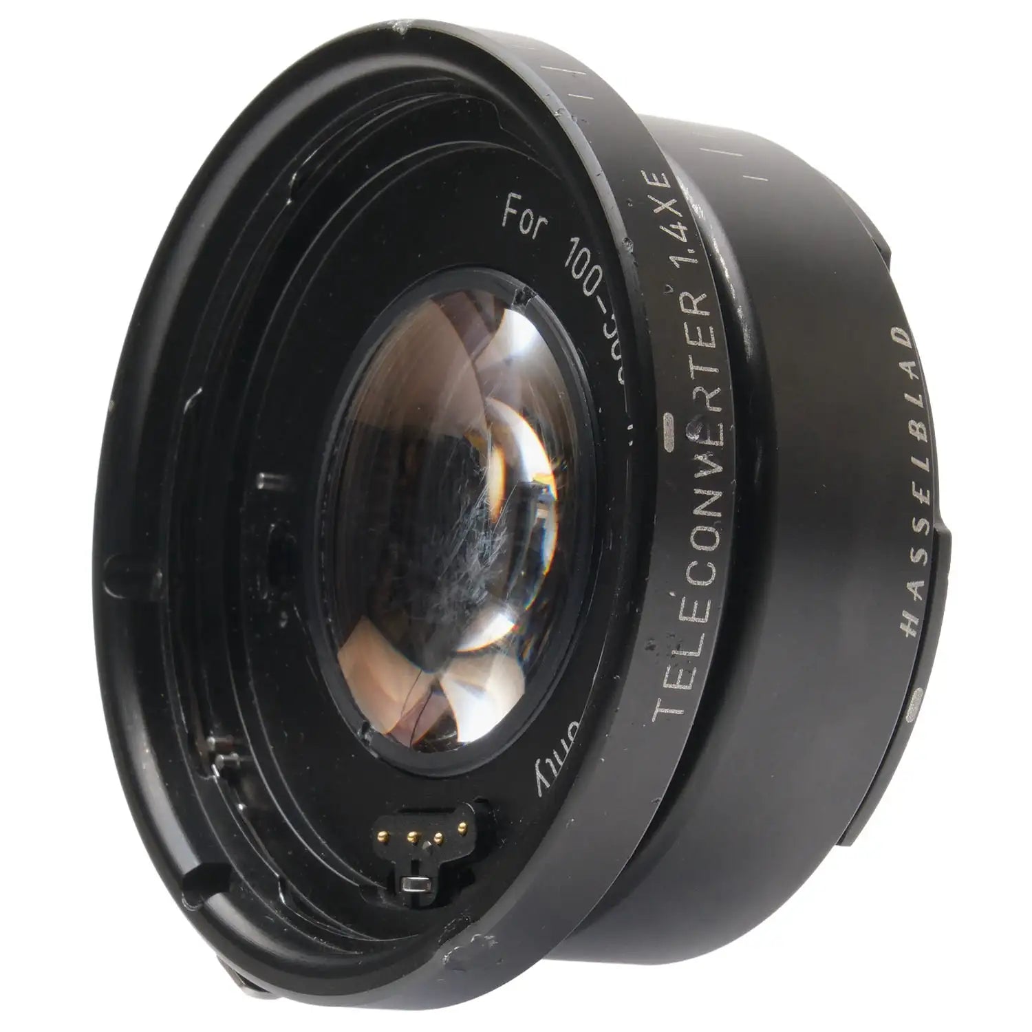 This Hasselblad Teleconverter 1.4XE is in fair condition with heavy handling wear. I rate it cosmetically a (7). The teleconverter is in proper working order; the glass has marks on the front of the element, but is otherwise clear. It includes front & rear caps. Please refer to the photos for details.