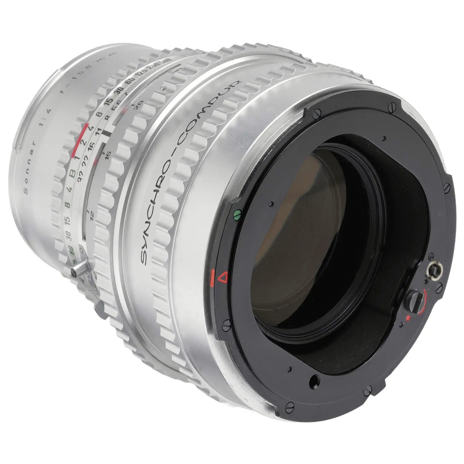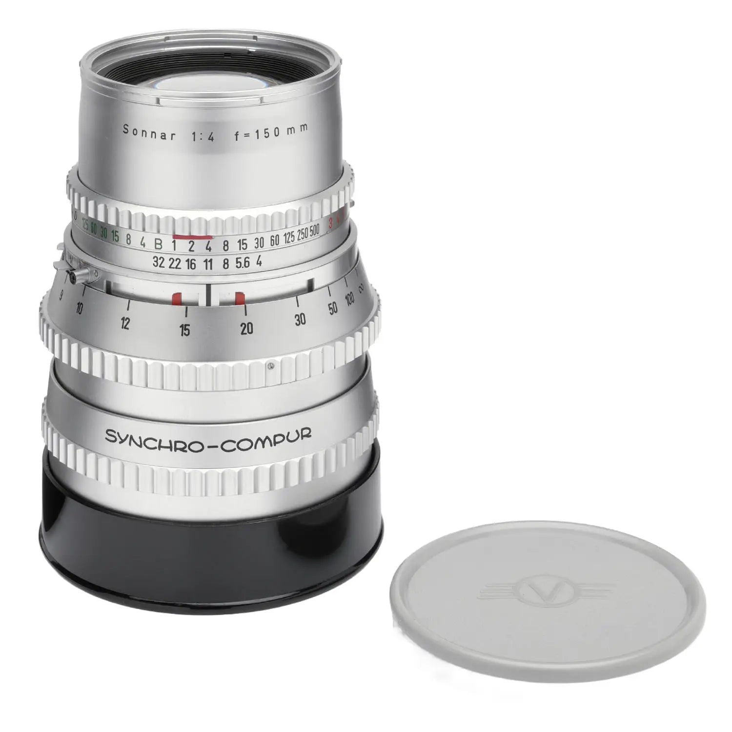 This Hasselblad C 150mm f4 Sonnar Lens, #4971490, is in excellent condition with faint handling wear, I rate it cosmetically at (9+) condition. The focus is smooth and the aperture works well. The shutter is accurate at all speeds. The glass is clean and clear with no haze, marks or fungus. This lens comes with both caps.