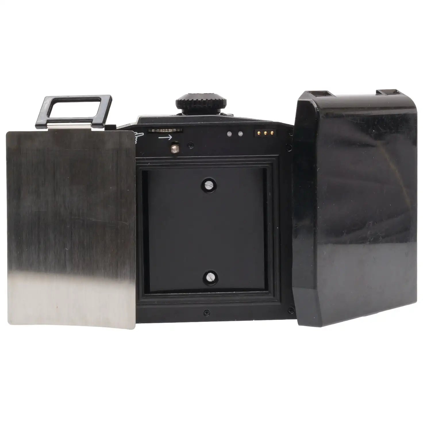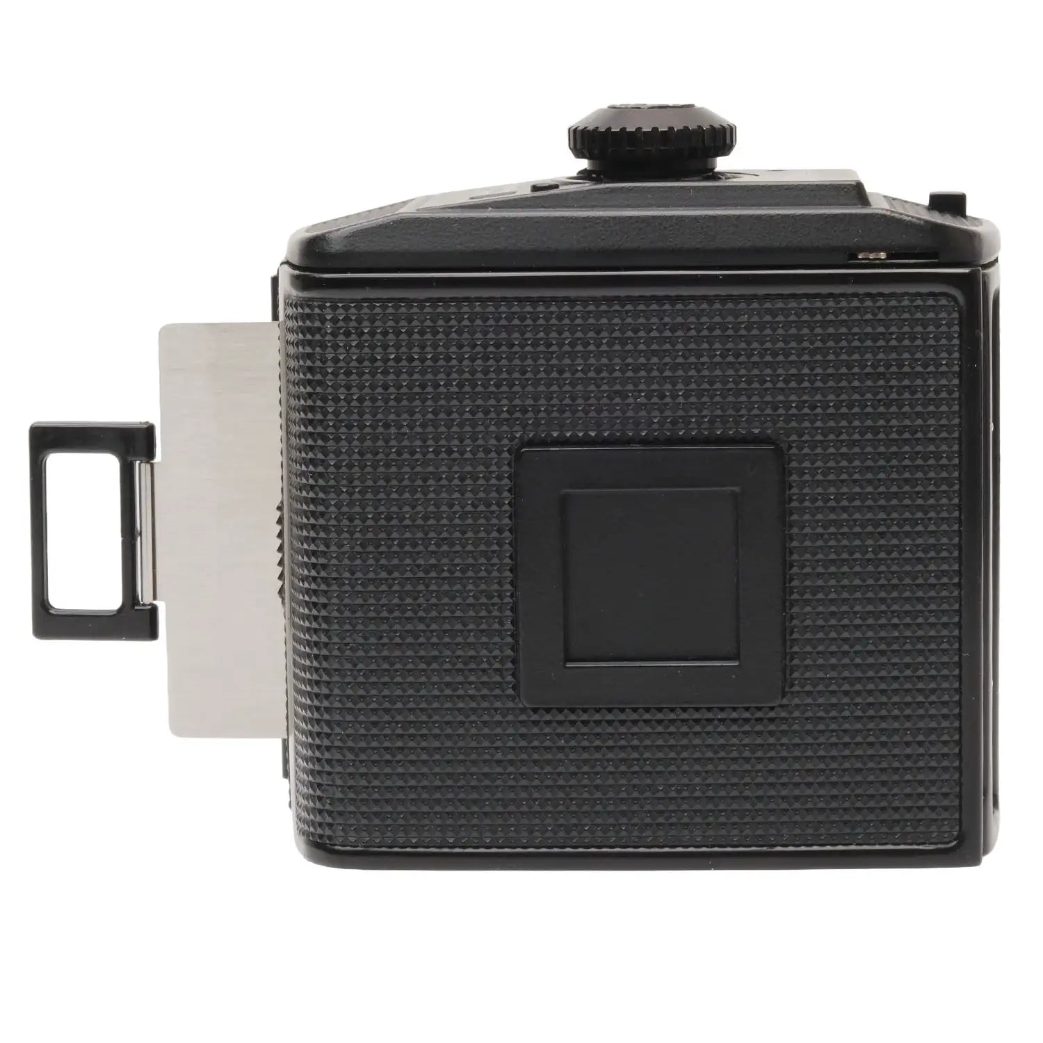 This Rollei Rolleiflex SL66E Magazin 6x6 120/220 Film Back, #001290033, is in great condition with minor handling wear. I rate it cosmetically a (9). The back is in proper working order; film advances properly and the film holder has a matching serial number. It also includes a darkslide and protective cover. Please refer to the photos for details.