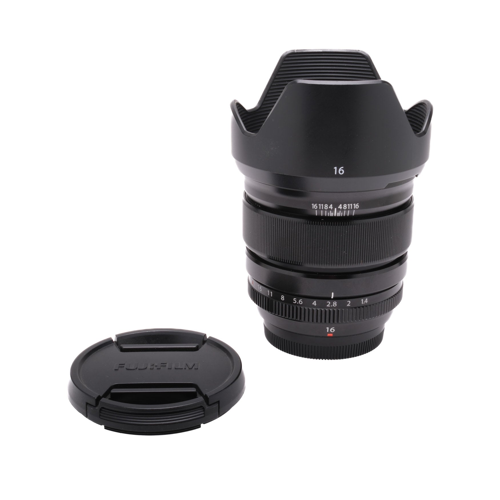 This Fujifilm XF 16mm f1.4 R WR Lens, #2DA00050, is in excellent condition with faint handling wear. I rate it cosmetically at (9+) condition. The focus is smooth and the aperture works properly. The glass is clean and clear with no haze, marks or fungus. This lens comes with a hood, rear cap and front cap.
