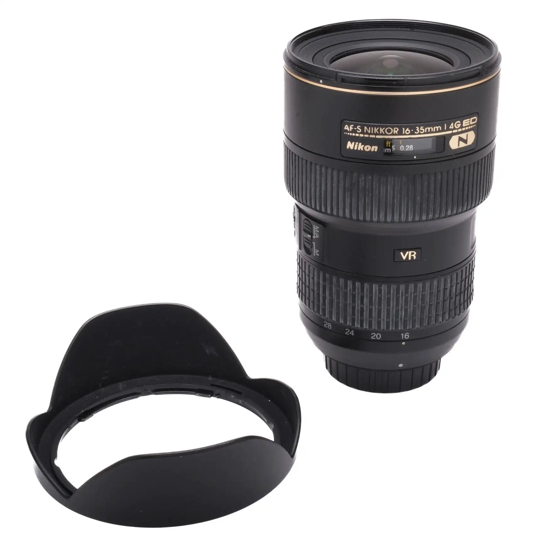 This Nikon AF-S NIKKOR 16-35mm f/4G ED VR is in great cosmetic condition with minor handling wear found throughout, please see photos for visual reference. Cosmetically, this lens has been rated at a (9) condition. This lens is in proper working order; the zoom and the focus ring turn smoothly, the autofocus is accurate, and the glass is clean and clear with no signs of fungus, haze, or marks present. This lens includes a rear cap and hood.