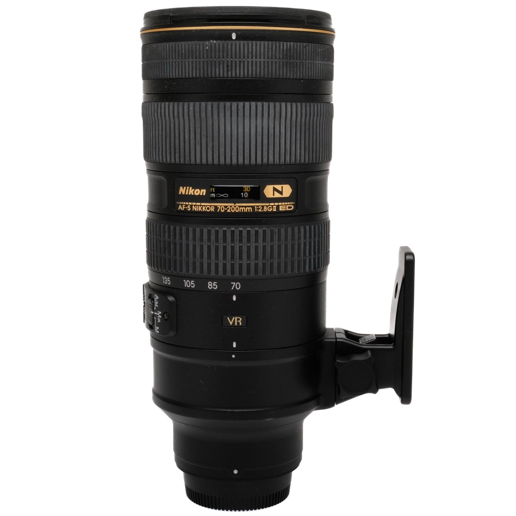 This Nikon 70-200mm f2.8 G II #US20088936 is in excellent cosmetic condition with faint handling wear found throughout, please see photos for visual reference. Cosmetically, this lens has been rated at a (9+) condition. This lens is in proper working order; the zoom and the focus ring turn smoothly, the autofocus is accurate, and the glass is clean and clear with no signs of fungus, haze, or marks present. This lens includes front/rear caps and hood..
