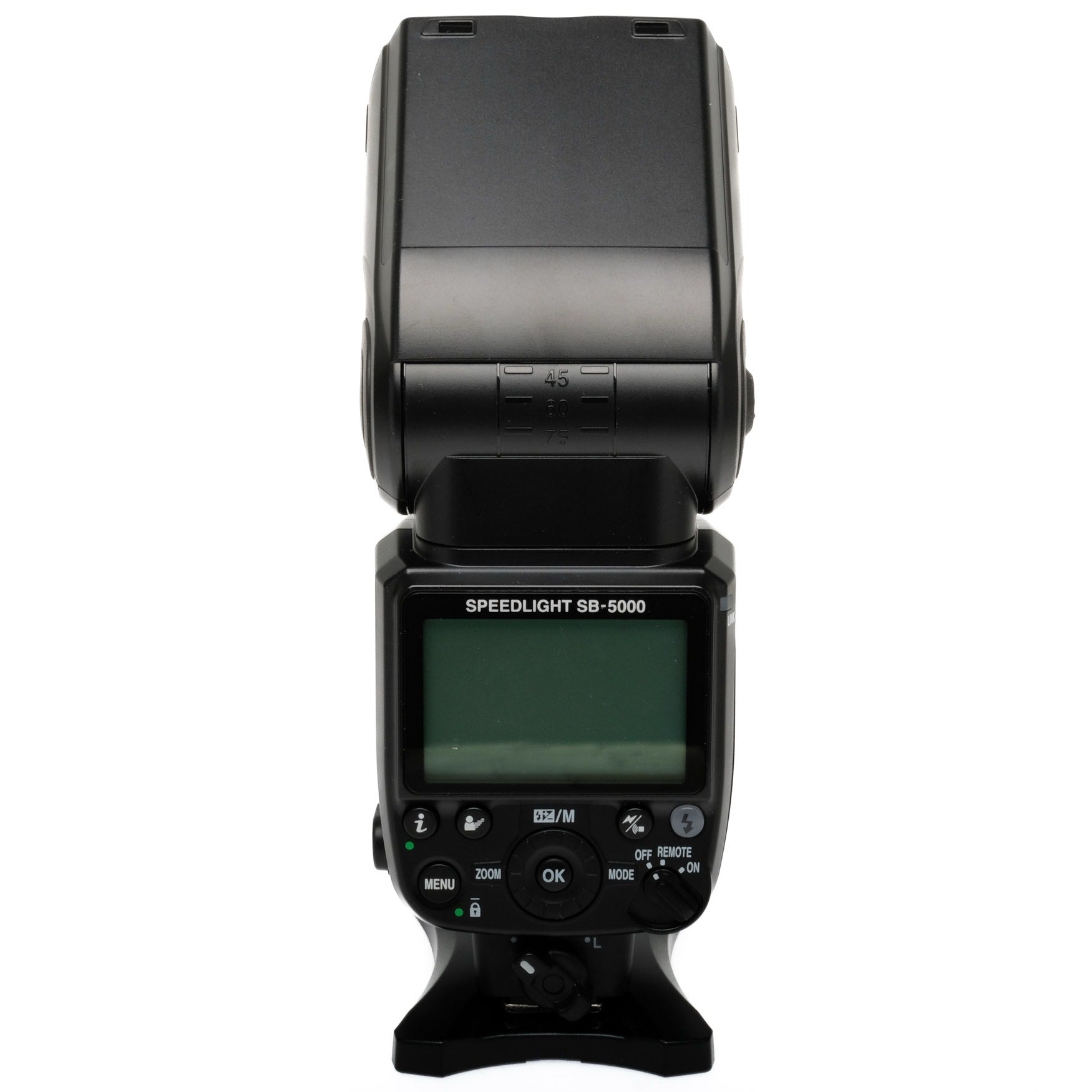 This Nikon SB-5000 Speedlight Flash, #2158539, is in good cosmetic condition. It has minor signs of wear from normal use. I rate it cosmetically at a (9+). The LCD screen is clean and undamaged. Mechanically, this flash is in proper working order. The battery compartment is clean with no signs of corrosion. The head tilts and rotates properly. Comes with original box. Please see photos for reference.