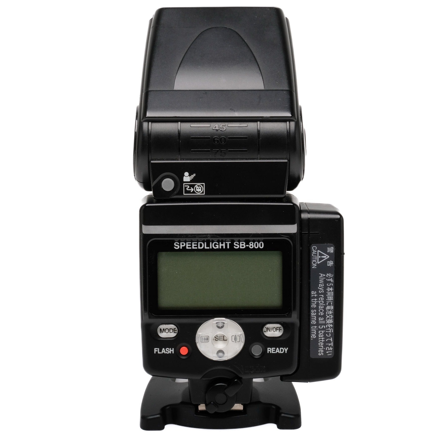 This Nikon SB-800 Speedlight Flash, #2771885, is in good cosmetic condition. It has minor signs of wear from normal use. I rate it cosmetically at a (9). The LCD screen is clean and undamaged. Mechanically, this flash is in proper working order. The battery compartment is clean with no signs of corrosion. The head tilts and rotates properly. Comes with original box. Please see photos for reference.