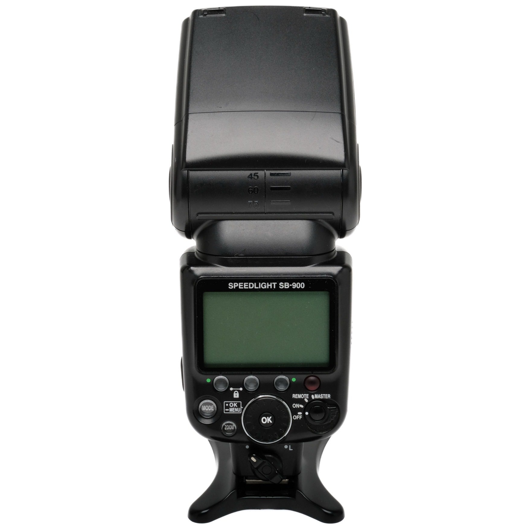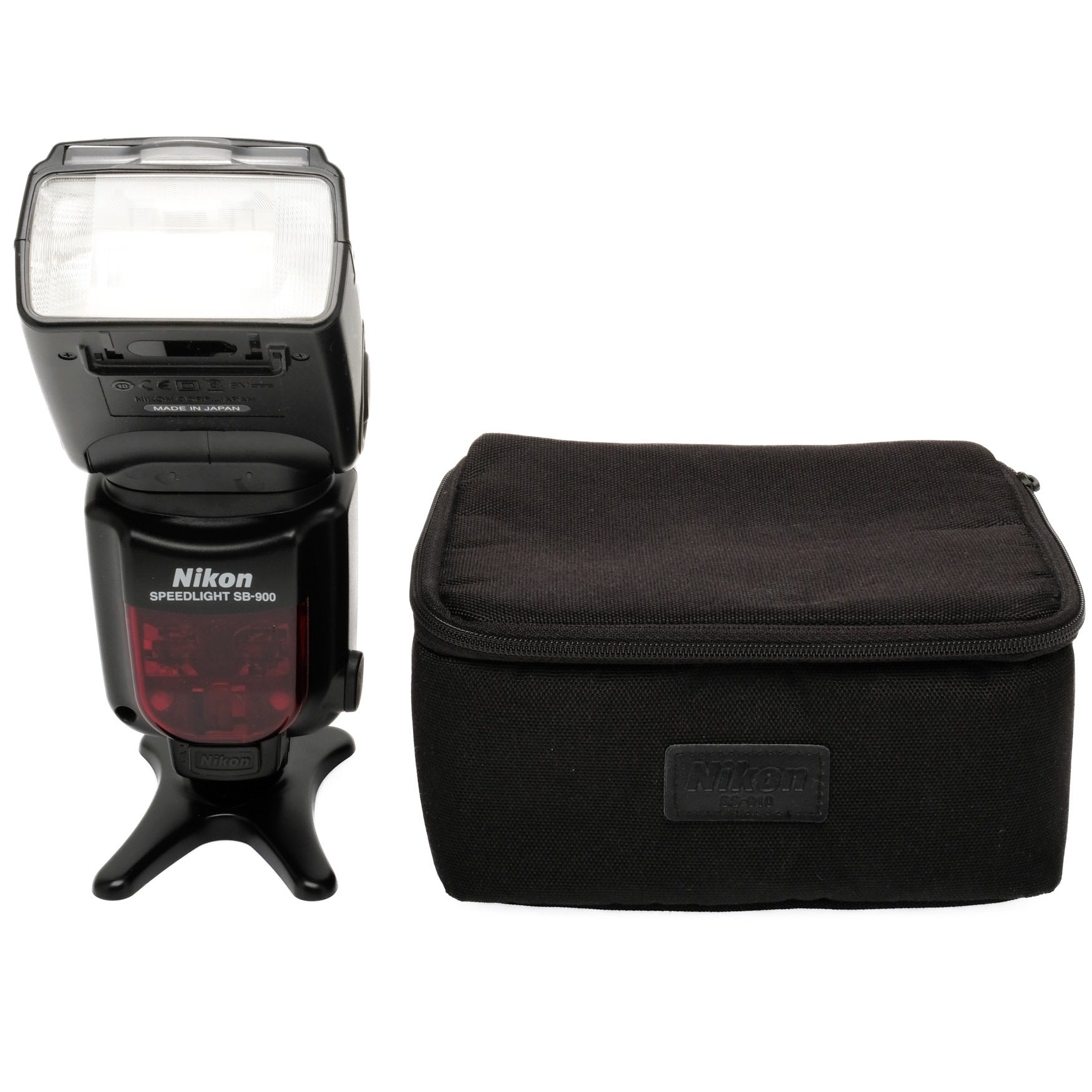 This Nikon SB-900 Speedlight Flash, #2220938, is in good cosmetic condition. It has minor signs of wear from normal use. I rate it cosmetically at a (8+). The LCD screen is clean and undamaged. Mechanically, this flash is in proper working order. The battery compartment is clean with no signs of corrosion. The head tilts and rotates properly. Comes with Case. Please see photos for reference.