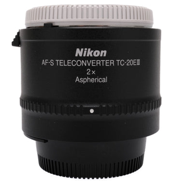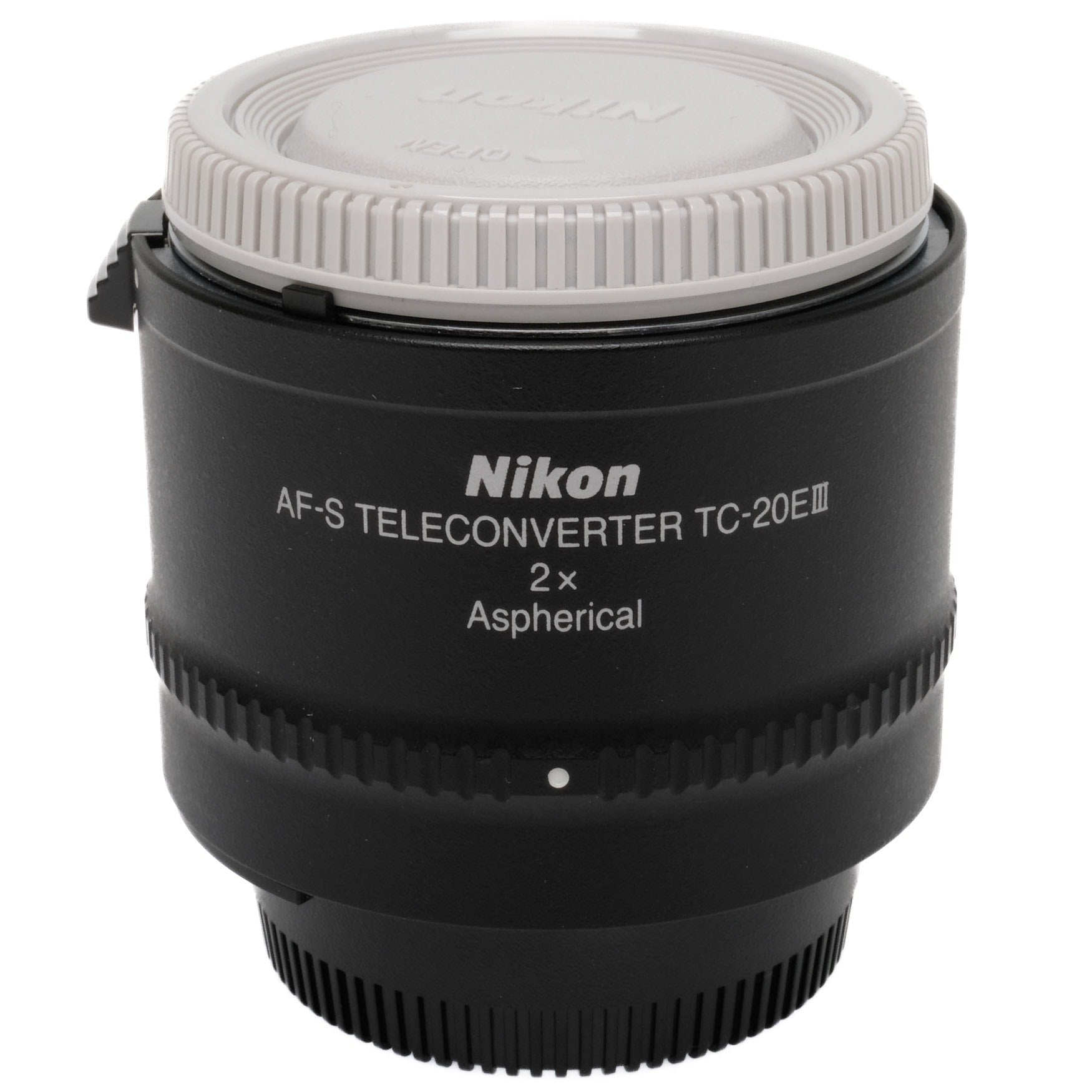 This Nikon TC-20E III Teleconverter #218400 is in excellent cosmetic condition with faint handling wear found throughout, please see photos for visual reference. Cosmetically, this has been rated at a (9+) condition. The converter functions properly and the glass is clean and clear. This includes front/rear caps.