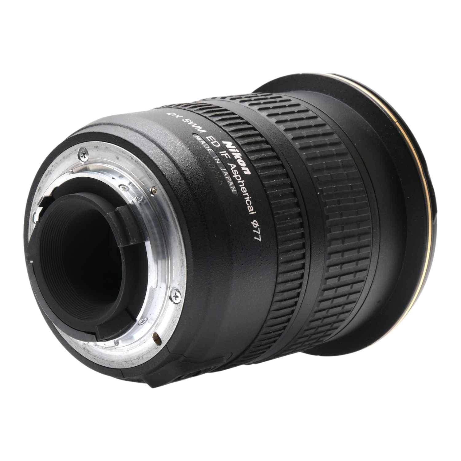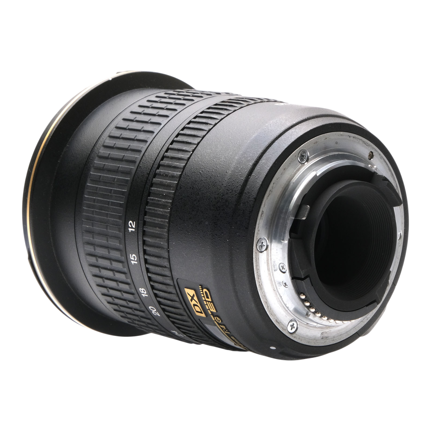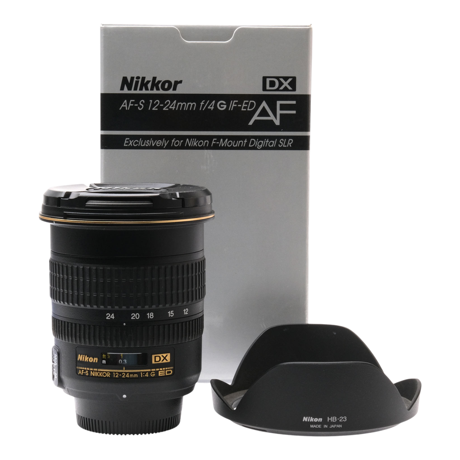 This Nikon AF-S 12-24mm f4 G ED DX Nikkor Zoom Lens, #US230746, is in great condition with minor handling wear. I rate it cosmetically a (9+). The zoom ring is smooth, but the focus ring is a bit stiff. The autofocus and aperture function properly, and the glass is clean and clear with no haze, marks, or fungus. There are a few faint specks of dust inside, but they do not affect image quality. This lens includes a Nikon lens hood, front & rear caps, and the original box. Please refer to the photos for details.