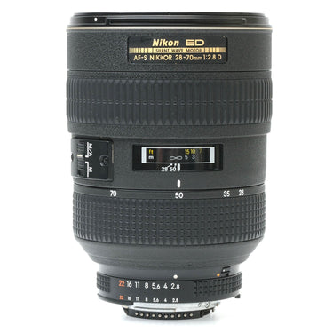 This Nikon AF-S 28-70mm f2.8 D ED Nikkor Zoom Lens, #US311250, is in great condition with minor handling wear. I rate it cosmetically a (9). The zoom ring is smooth, but the aperture ring is a bit jerky and the focus ring is a bit stiff & rough. The autofocus mostly functions, but gets stuck in macro mode. Once it's stuck in macro mode, it needs to be manually focused back into the normal range. The autofocus functions properly in the normal range. The aperture functions properly and the glass is clean and clear with no haze, marks, or fungus. There are a few faint specks of dust inside, but they do not affect image quality.