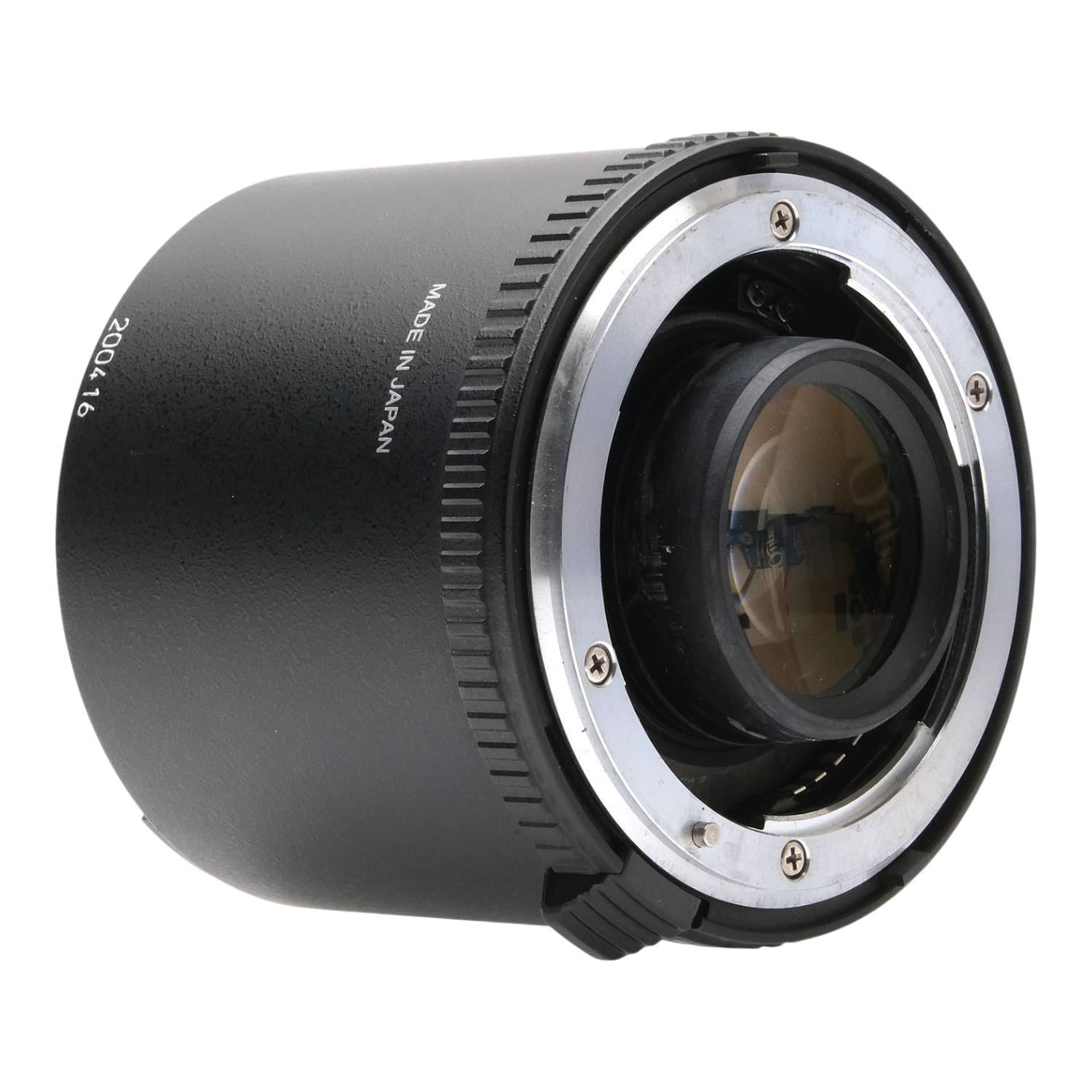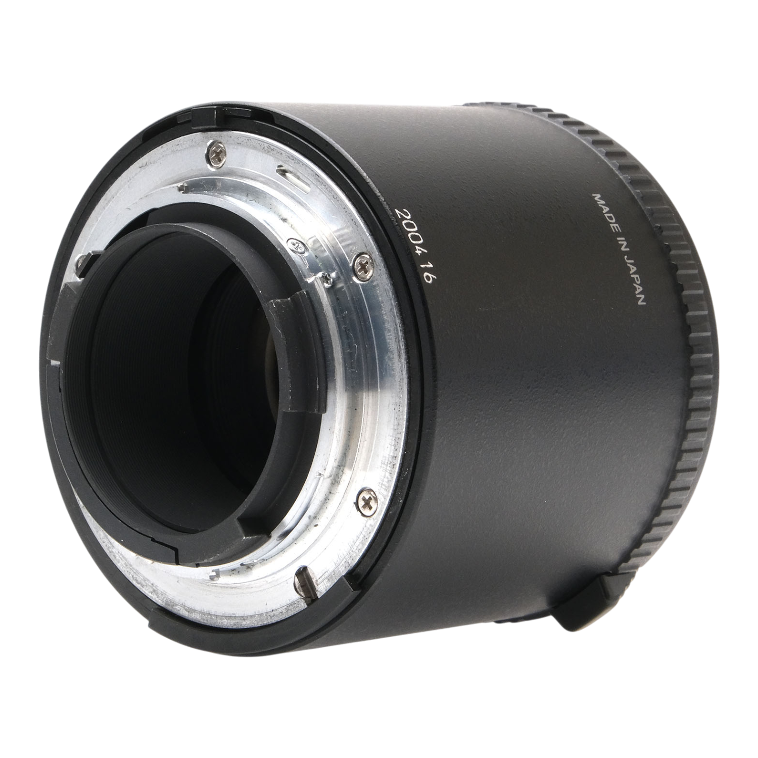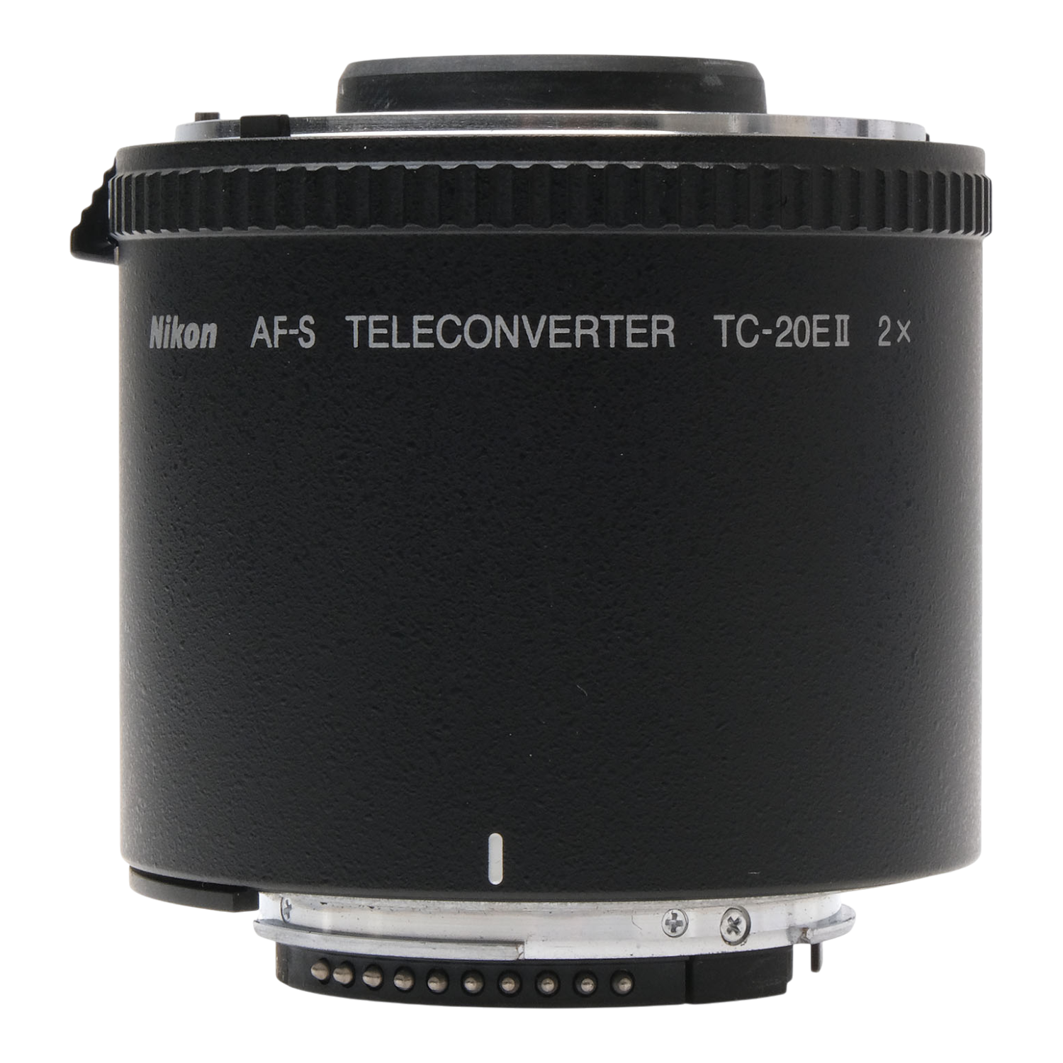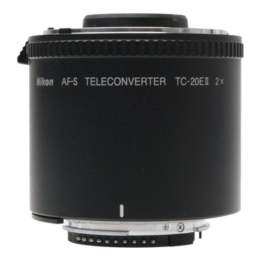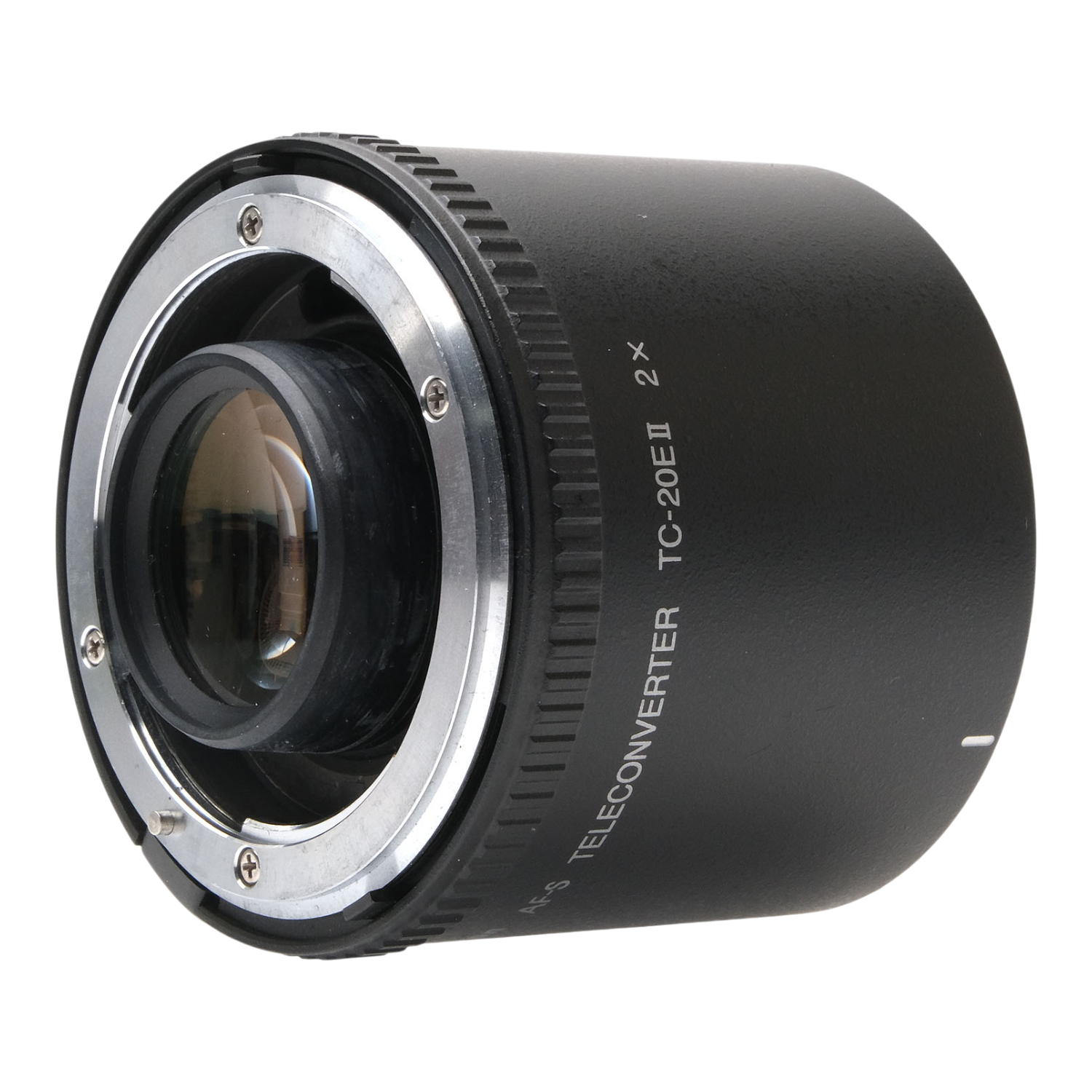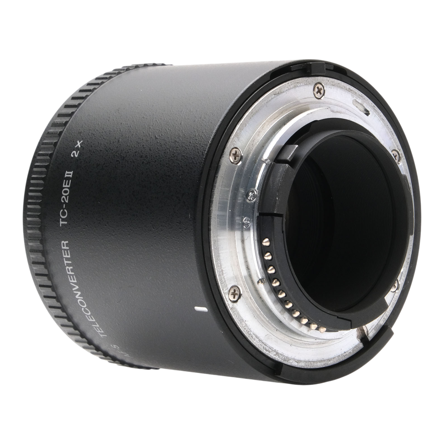 This Nikon TC-20E II 2x Teleconverter, #200416, is in great condition with minor handling wear. I rate it cosmetically a (9+). The teleconverter is in proper working order and the glass is clean and clear with no haze, marks, or fungus. It includes a rear cap and a Neoprene pouch instead of a front cap. Please refer to the photos for details.