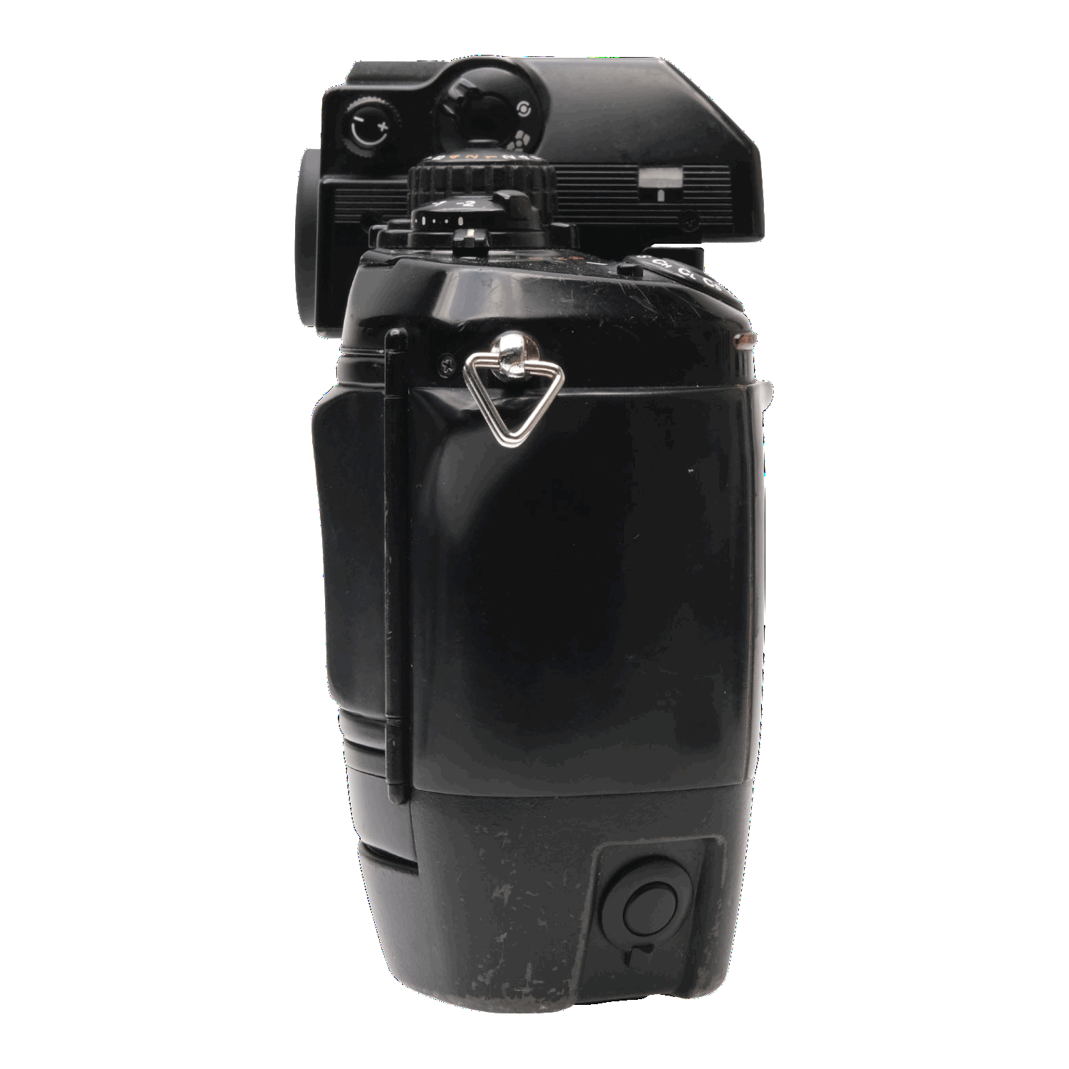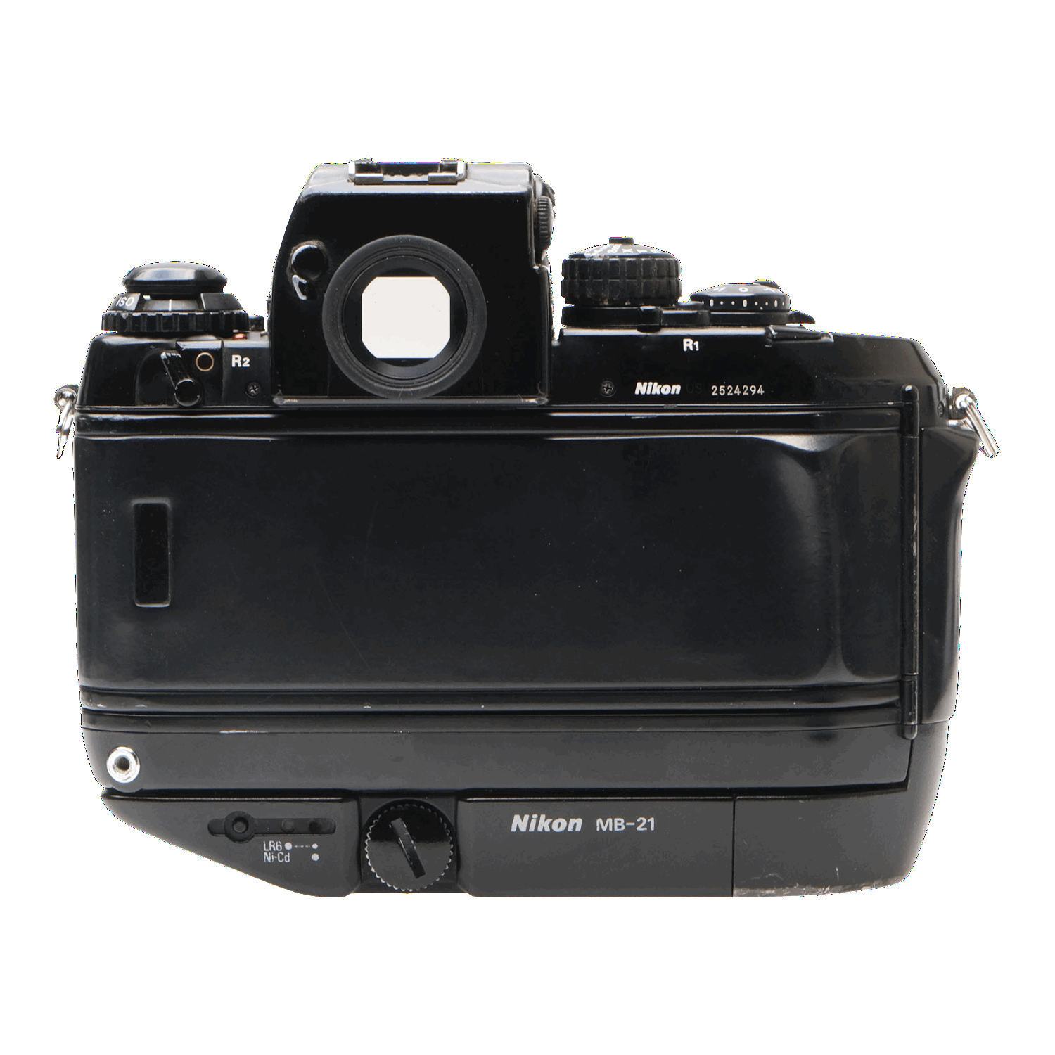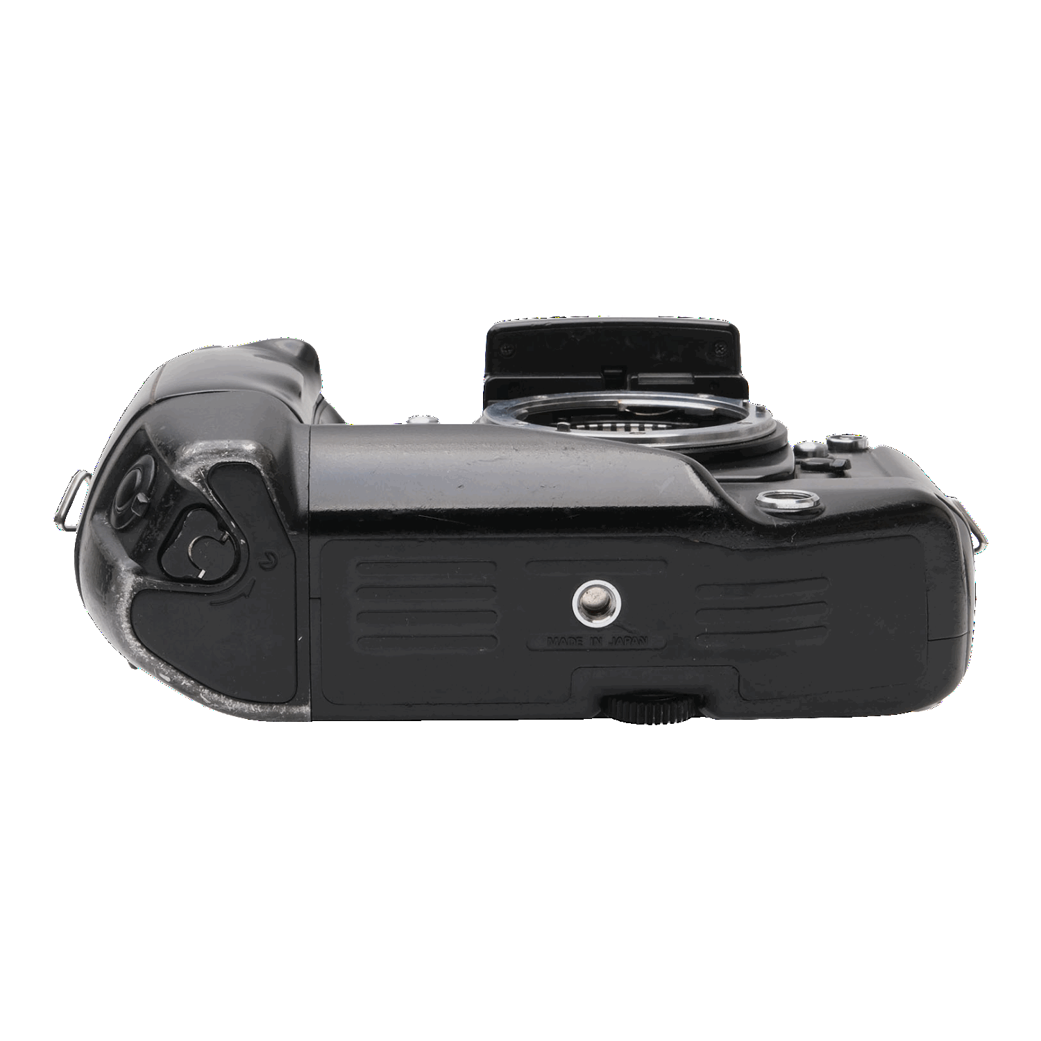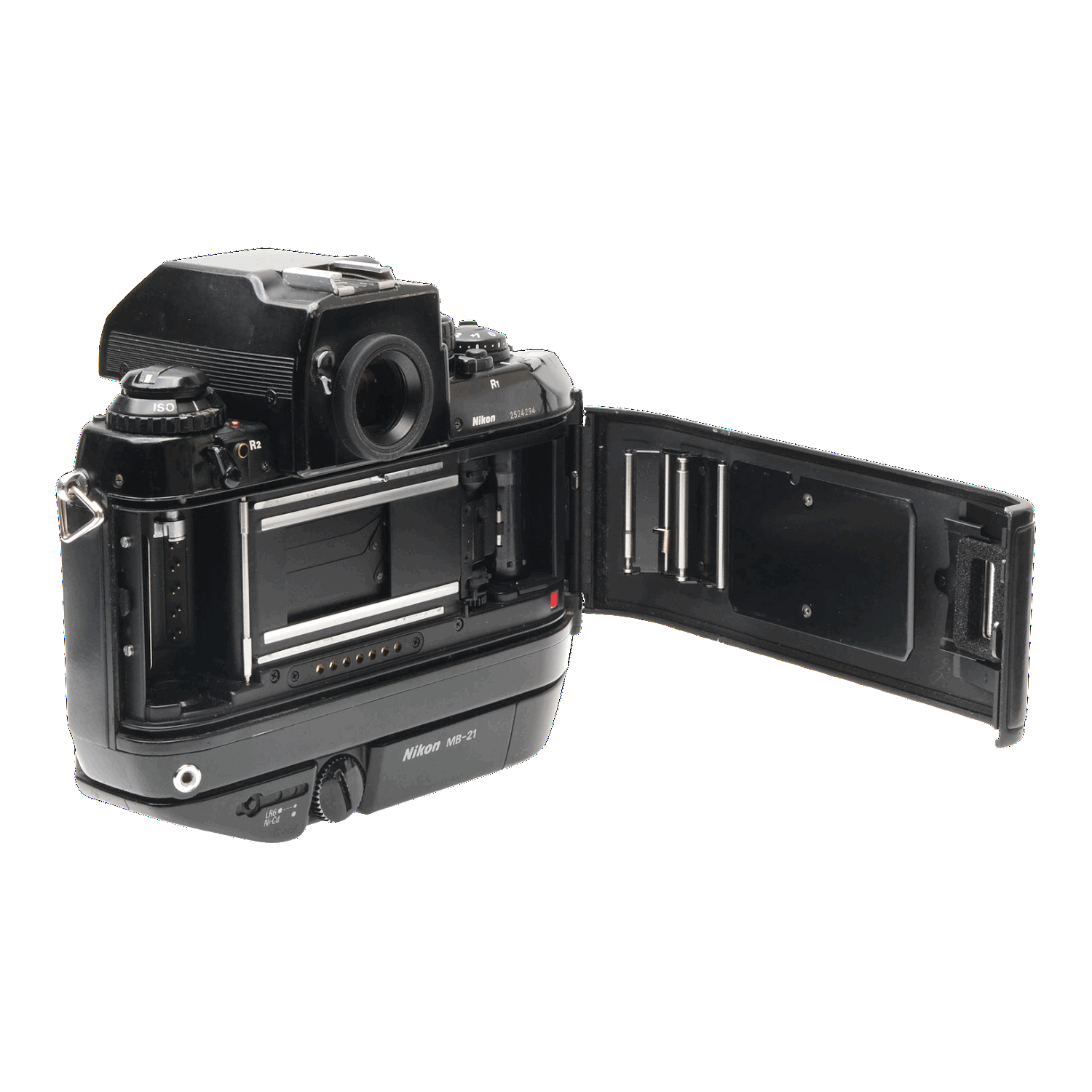 This Nikon F4s, #2137752, is in fair condition with heavy handling wear. I rate it cosmetically a (7+). The camera is in proper working order; film advances properly, the shutter is accurate at all speeds, the meter and self-timer function, and the battery compartment is corrosion-free. The viewfinder has a few faint specks of dust, but is otherwise clear. The included Nikon MB-21 Motor Drive is in similar condition, also rated a (7+). This camera also includes a body cap. It uses six (6) AA batteries for the body & grip (not included). Please refer to the photos for details.
