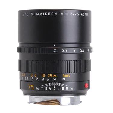 This Leica 75mm f2 Apo-Summicron-M ASPH Lens #4813585, is in excellent cosmetic condition with slight signs of handling wear found throughout, please see photos for visual reference. Cosmetically, this lens has been rated at a (9+) condition. This lens is in proper working order; the aperture and focus turn smoothly, and the glass is clean and clear with no signs of fungus, haze, or marks present. This lens comes boxed with a leather case, a front lens cap, and a rear cap. This lens is ready for use!