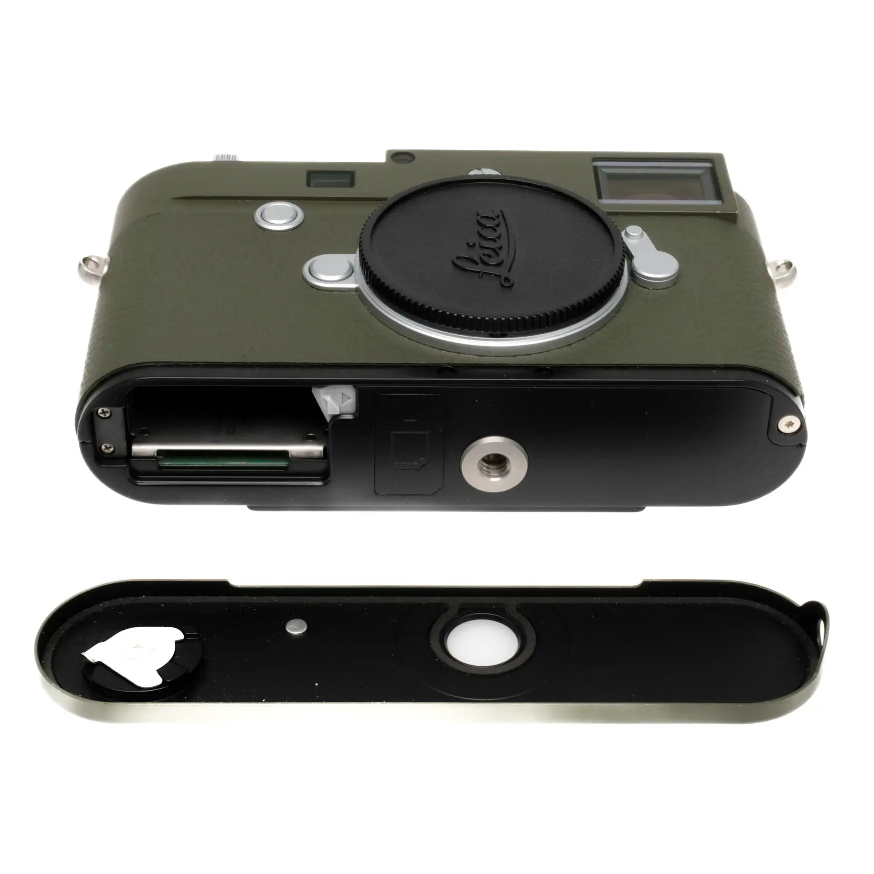 This Leica M10-P Safari, Boxed #5501093 is in great cosmetic condition with minor handling wear found throughout, please see photos for visual reference. Cosmetically, this camera has been rated at a (9) condition. This camera is in proper working order; the finder is bright and accurate, the sensor is unmarked, and the memory card slot reads and writes properly. This camera includes the box, body cap, battery, charger, leather strap and leather sd card holder. Please note, this listing is for the camera body only.