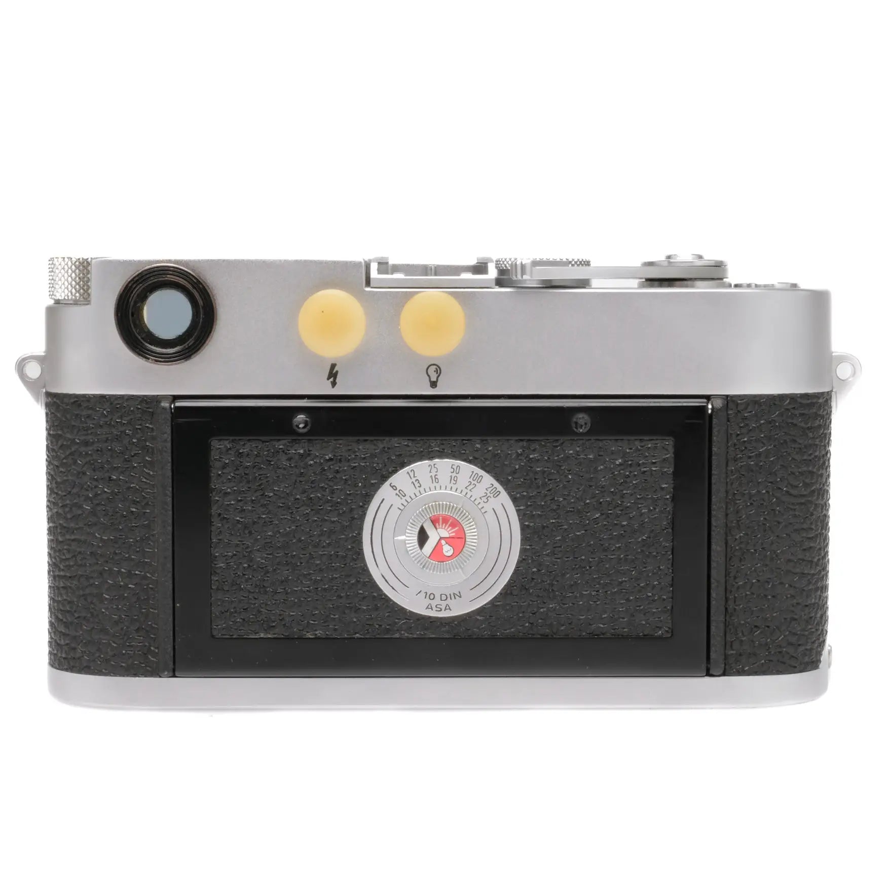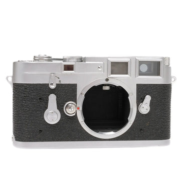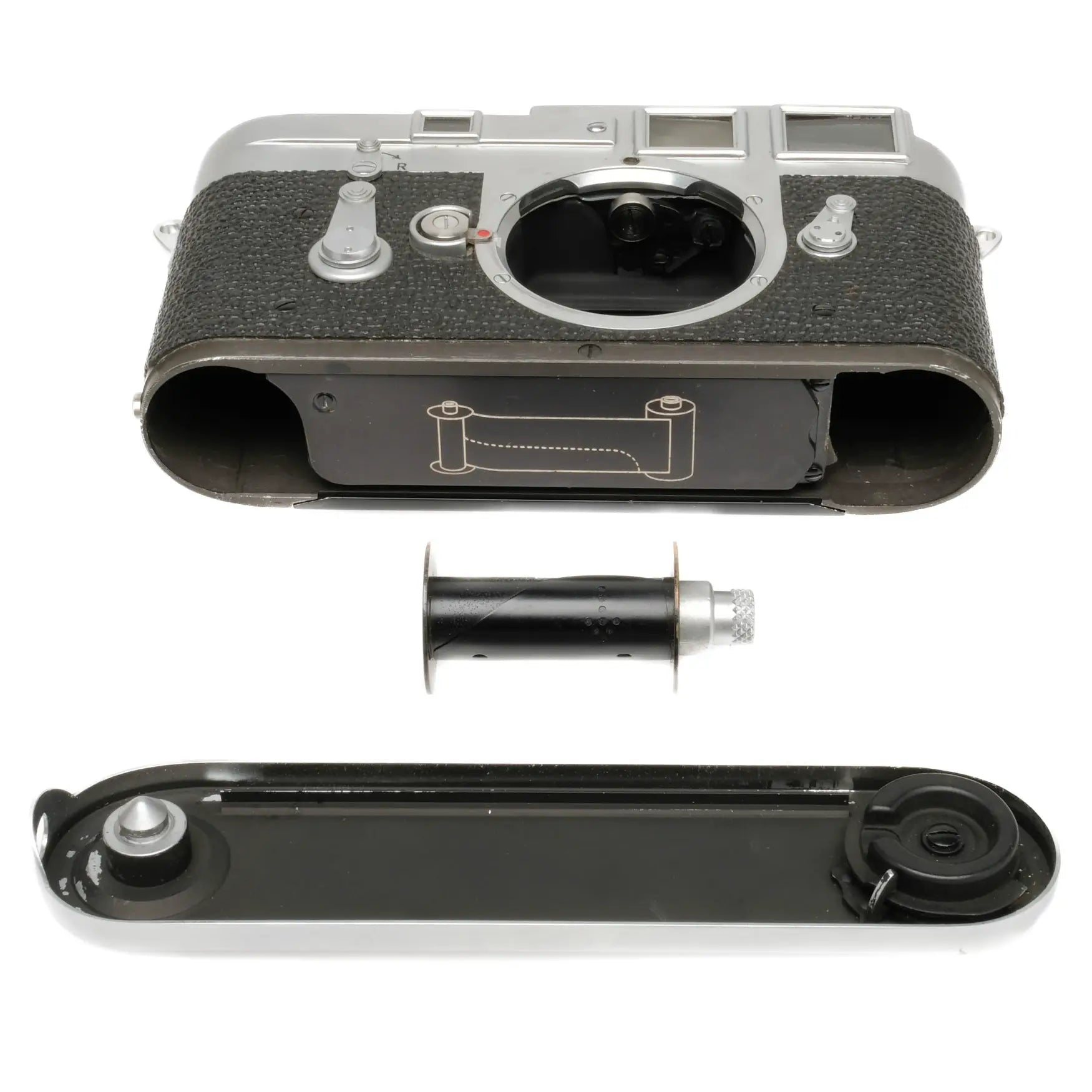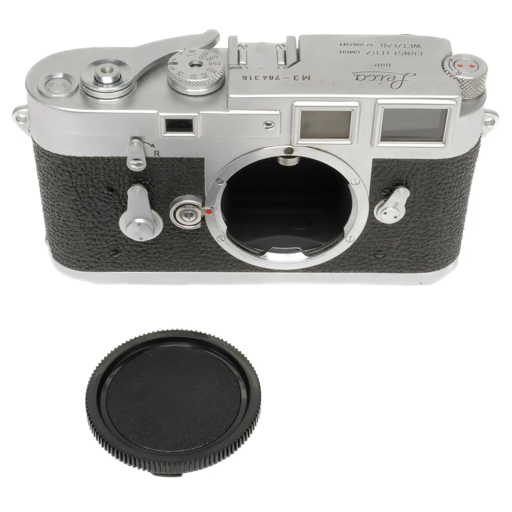 This Leica M3 DS #784316 is in good cosmetic condition with minor handling and edge wear found throughout, please see photos for visual reference. Cosmetically, this camera has been rated at a (8+) condition. This camera is in proper working order; the finder is bright and accurate, the film advance and shutter are smooth, and all shutter speeds are accurate. This camera includes a body cap.