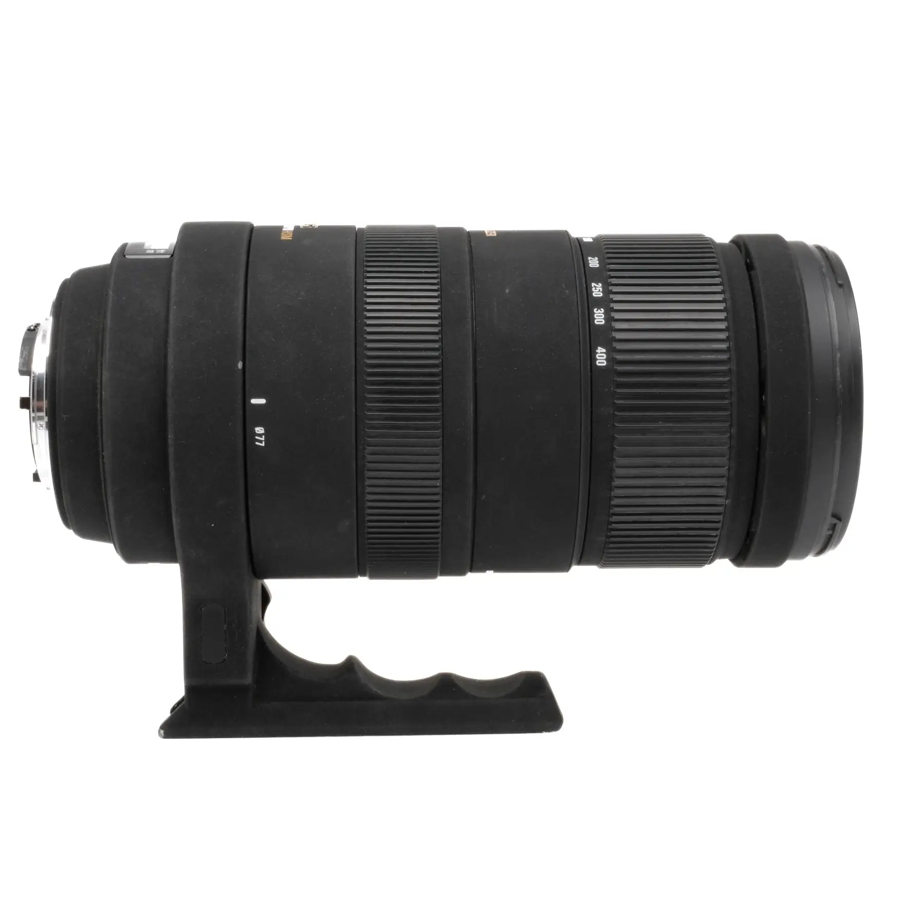 This Sigma 120-400mm f4.5-5.6 Apo HSM Zoom Lens for Nikon AF, #1027492, is in nice condition with minor edge wear. I rate it cosmetically at (9) condiiton. The zoom and focus are smooth and the aperture works properly. The glass is nice with no haze, marks or fungus. This lens comes with both caps and lens shade.