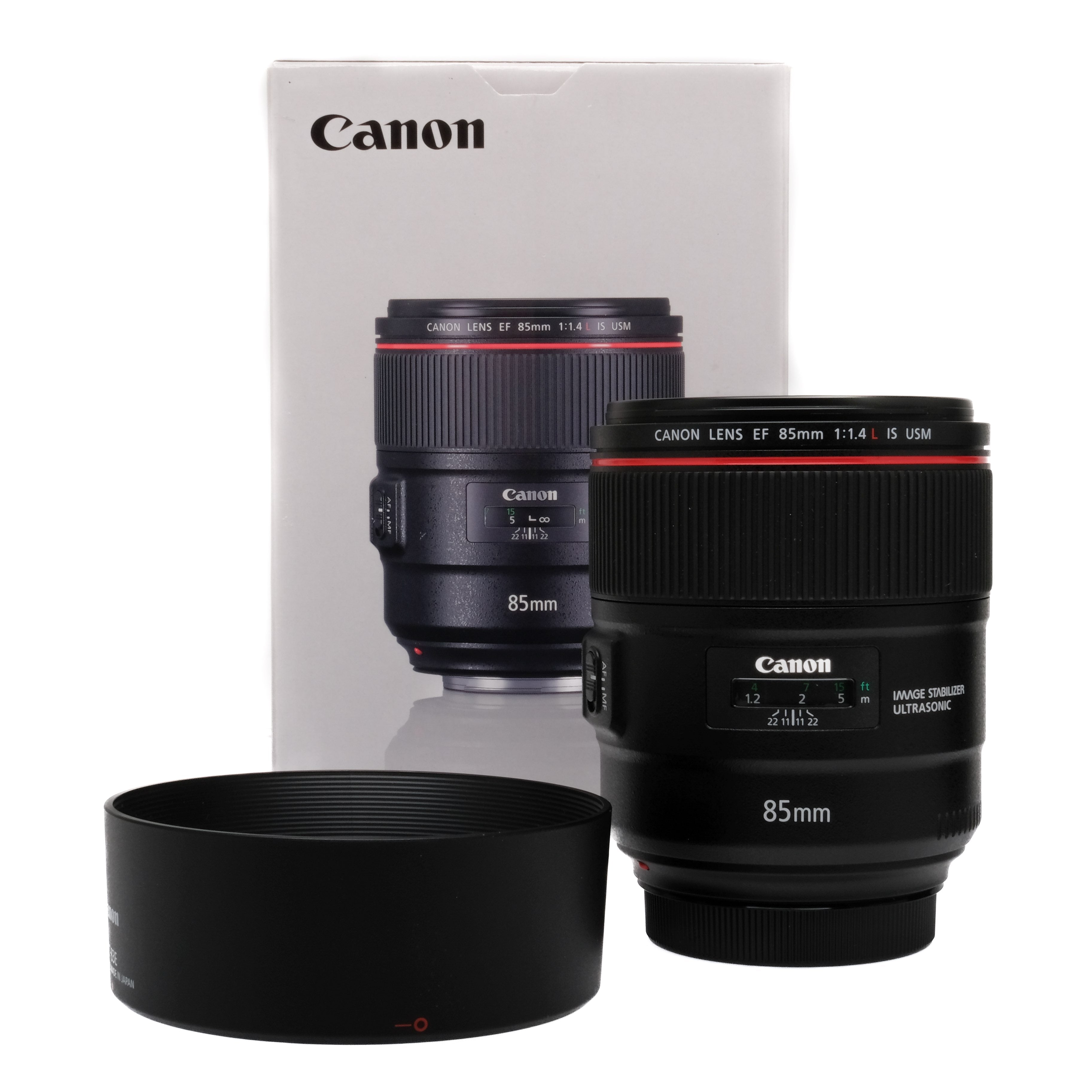 This Canon 85mm f1.4 L IS USM is in excellent cosmetic condition with faint handling wear found throughout, please see photos for visual reference. Cosmetically, this lens has been rated at a (9+) condition. This lens is in proper working order,the autofocus is accurate and the focus is smooth, all apertures function and the glass is clean and clear with no marks fungus or haze. This lens includes a rear cap, hood and box.