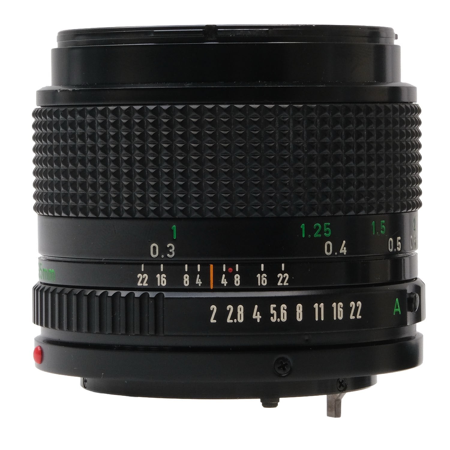 This Canon FD 28mm f2.8 Lens, #240109, is in great condition with minor handling wear. I rate it cosmetically a (9+). The focus ring is smooth, but the aperture ring is quite stiff. The aperture functions properly and the glass is clean and clear with no haze, marks, or fungus. There are a few faint specks of dust inside, but they do not affect image quality. This lens includes front & rear caps. Please refer to the photos for details.