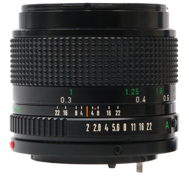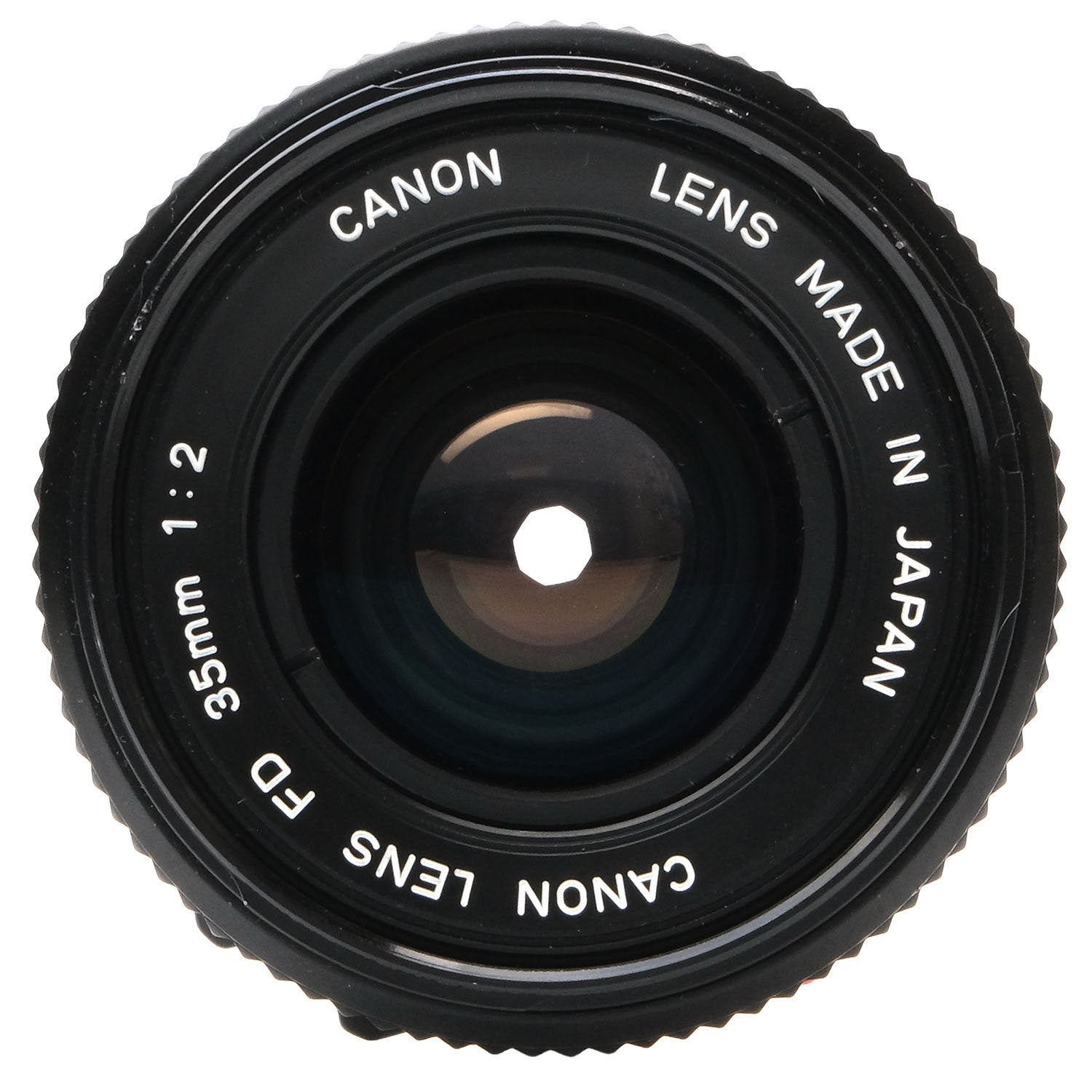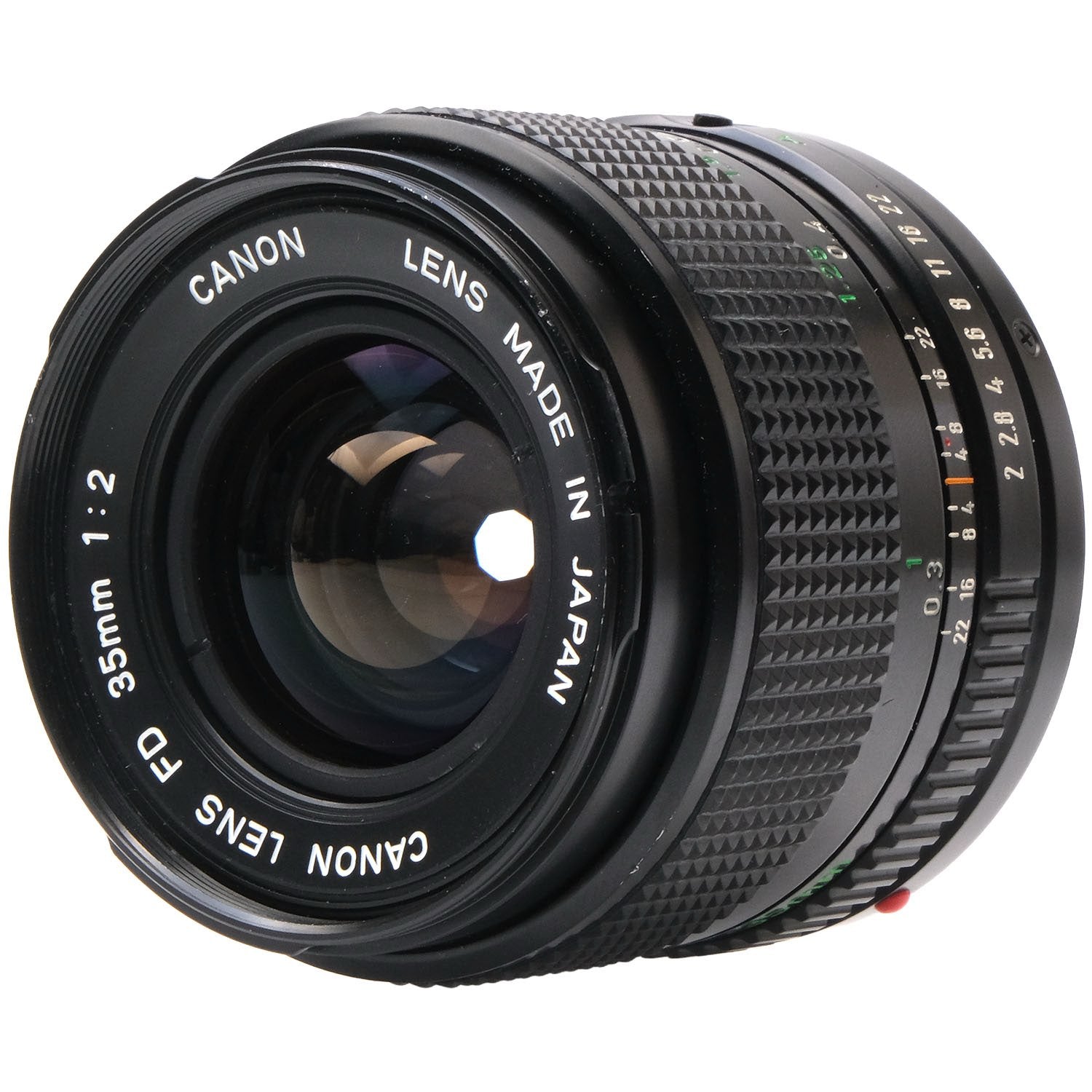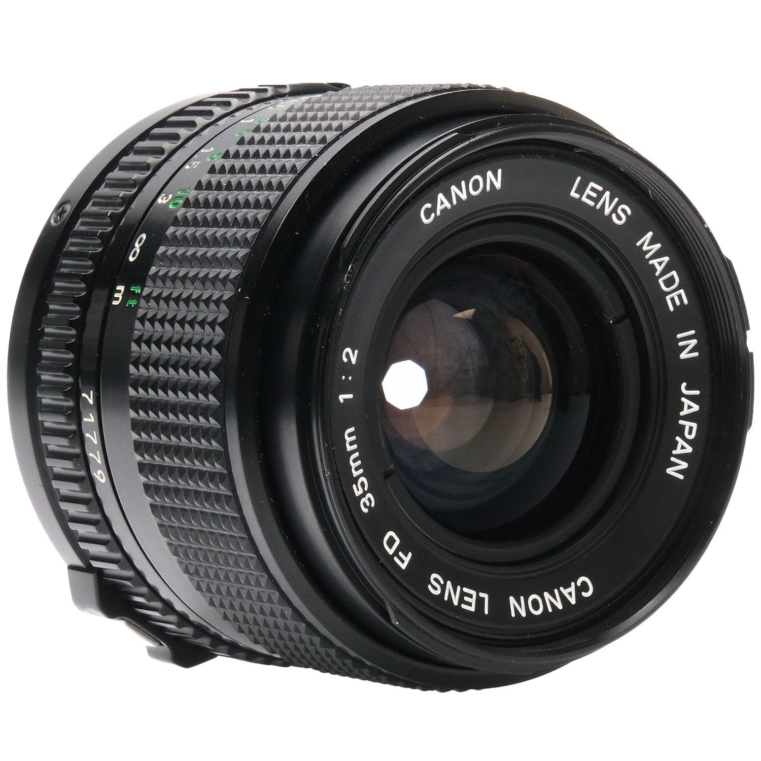 This Canon FD 35mm f2 Lens, #71779, is in great condition with minor handling wear. I rate it cosmetically a (9+). The focus ring is smooth, but the aperture ring is a bit stiff. The aperture functions properly and the glass is clean and clear with no haze, marks, or fungus. There are a few faint specks of dust inside, but they do not affect image quality. This lens includes front & rear caps. Please refer to the photos for details.