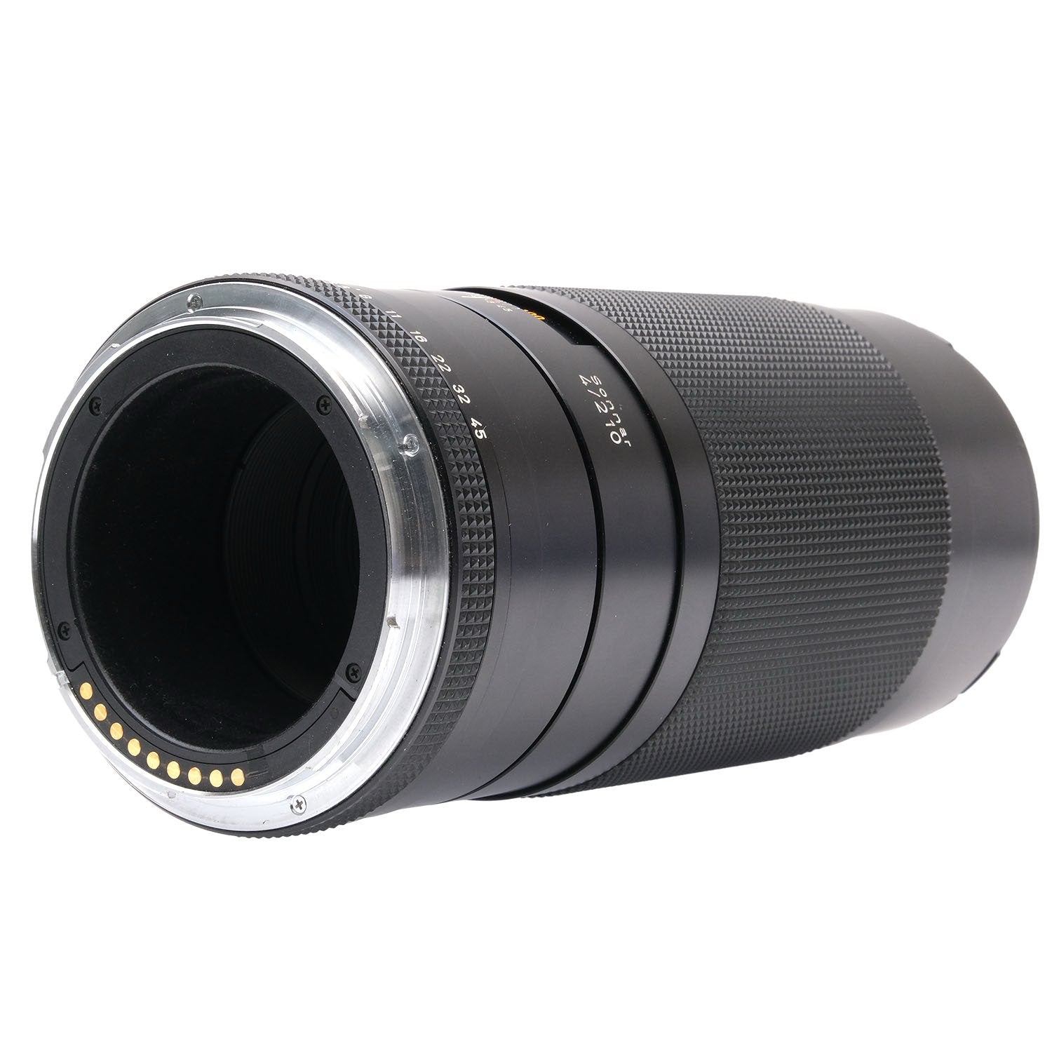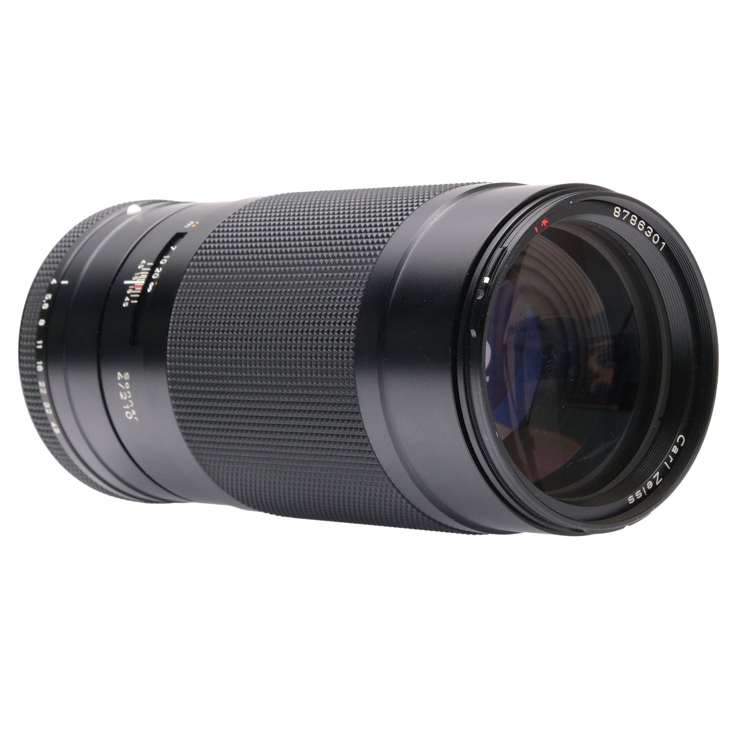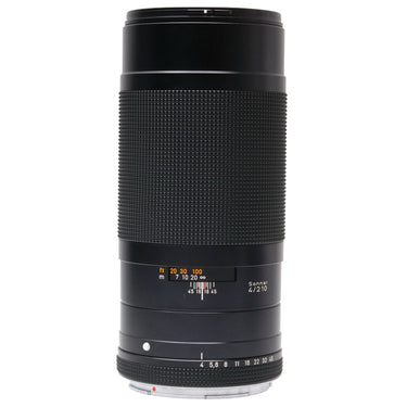 This Contax 210mm f4 Sonnar T* Lens for Contax 645, #8786301, is in great condition with minor handling wear. I rate it cosmetically a (9+). The aperture ring is smooth, but the focus ring is a bit rough. The autofocus and aperture function properly and the glass is clean and clear with no haze, marks, or fungus. There are a few faint specks of dust inside, but they do not affect image quality. This lens includes a Contax lens pouch and front & rear caps. Please refer to the photos for details.