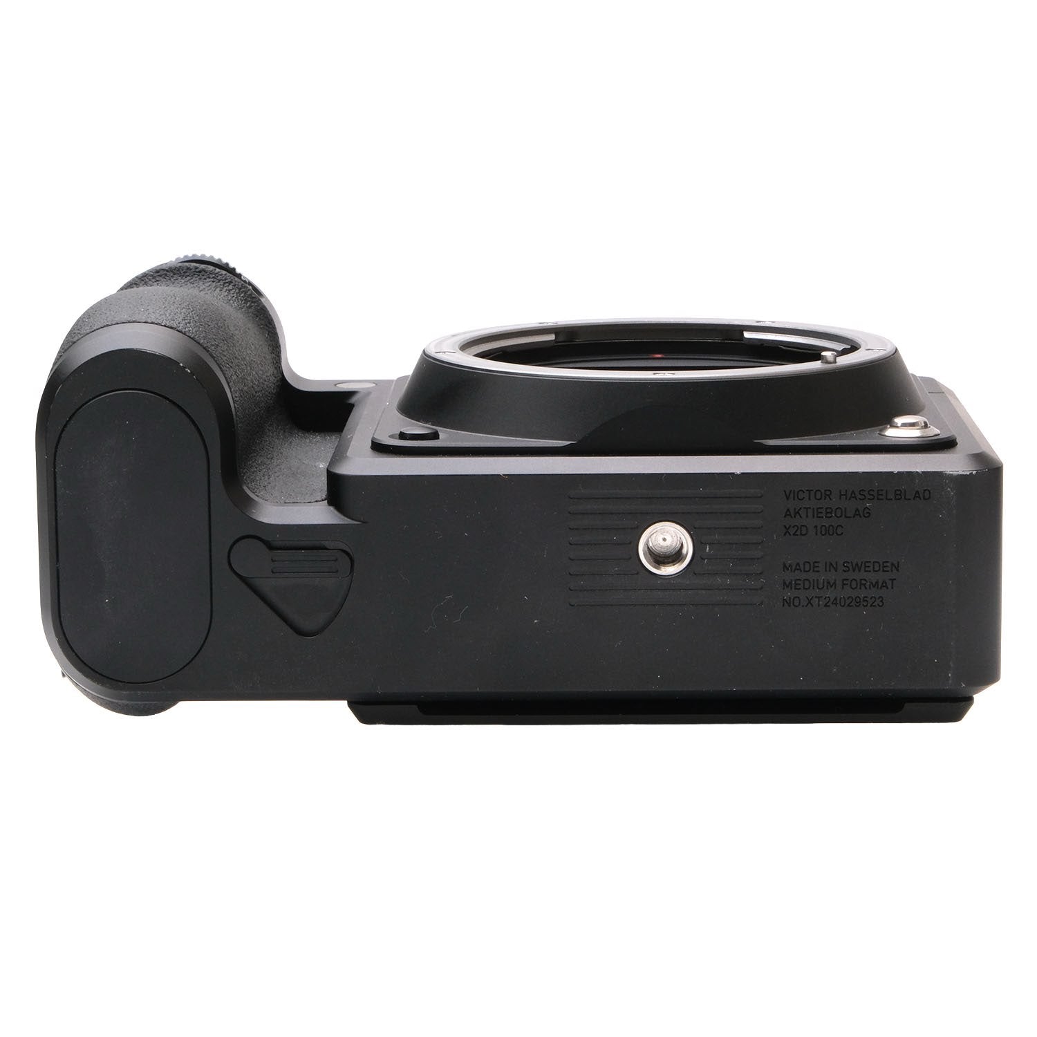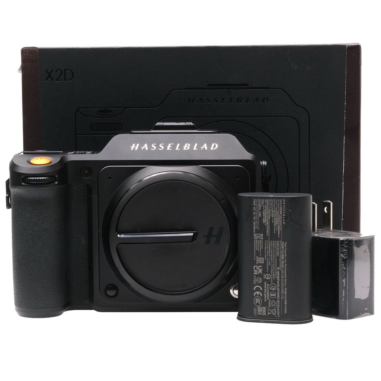 This Hasselblad X2D 100C, #XT24029523, is in good condition with some handling wear. I rate it cosmetically an (8+). The camera is in proper working order; the viewfinder is clear, the sensor is unmarked, and the memory card slot reads & writes. This camera includes a Hasseblad battery, AC adaptor, USB-C to USB-C cable, neck strap, body cap, hot shoe cover, and the original instructions & box. Please refer to the photos for details.