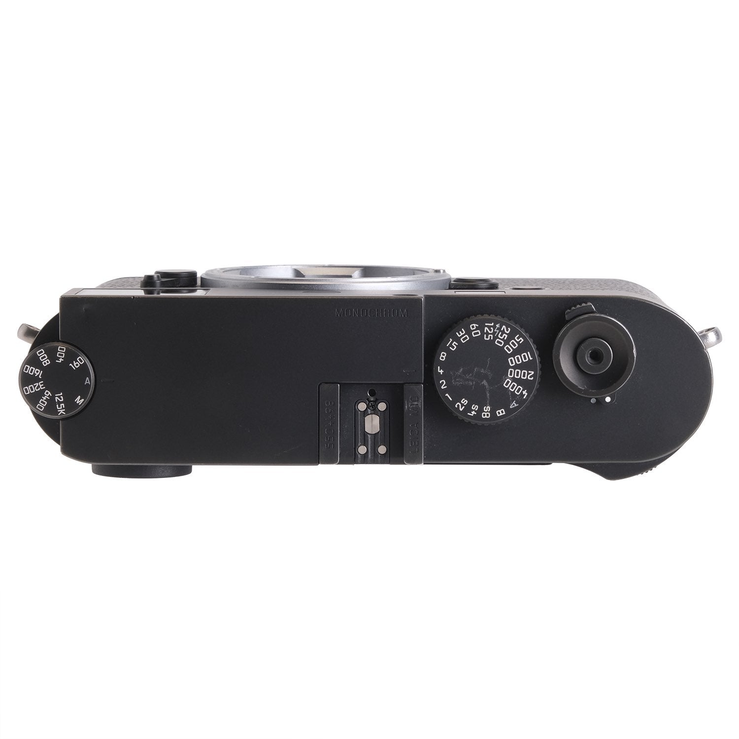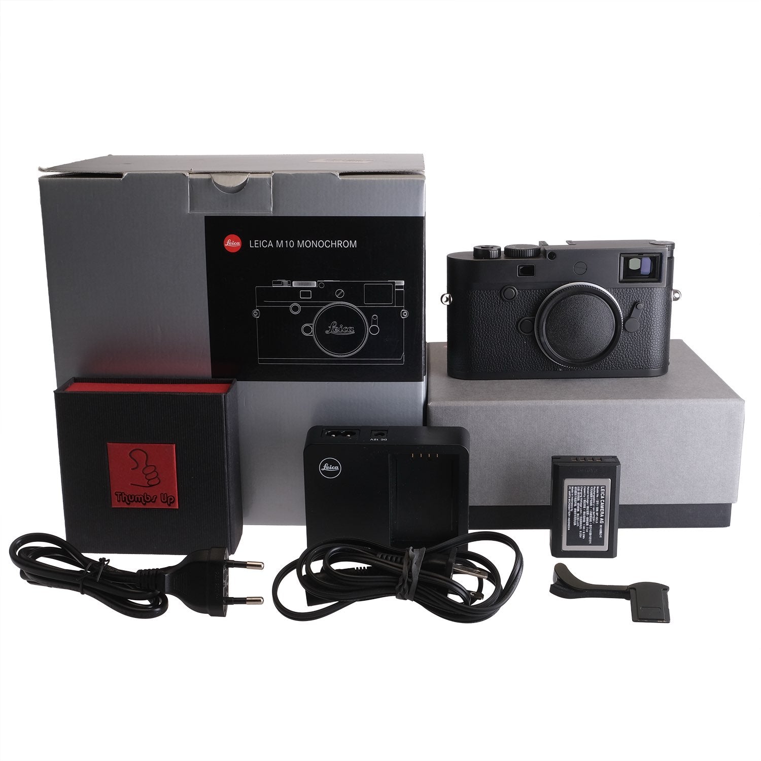 This Leica M10 Monochrom Camera Body #5504498, is in average cosmetic condition with heavy signs of handling wear found throughout, please see photos for visual reference. Cosmetically, this camera has been rated at a (8) condition. This camera is in proper working order; the finder is bright and accurate, the sensor is unmarked, and the memory card slot reads and writes. This camera comes boxed with a thumbs up thumb grip, a battery, and a charger. This camera is ready for use!