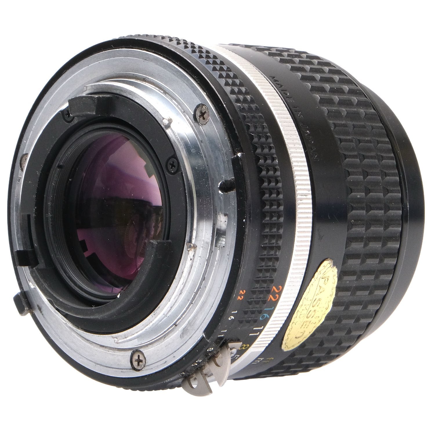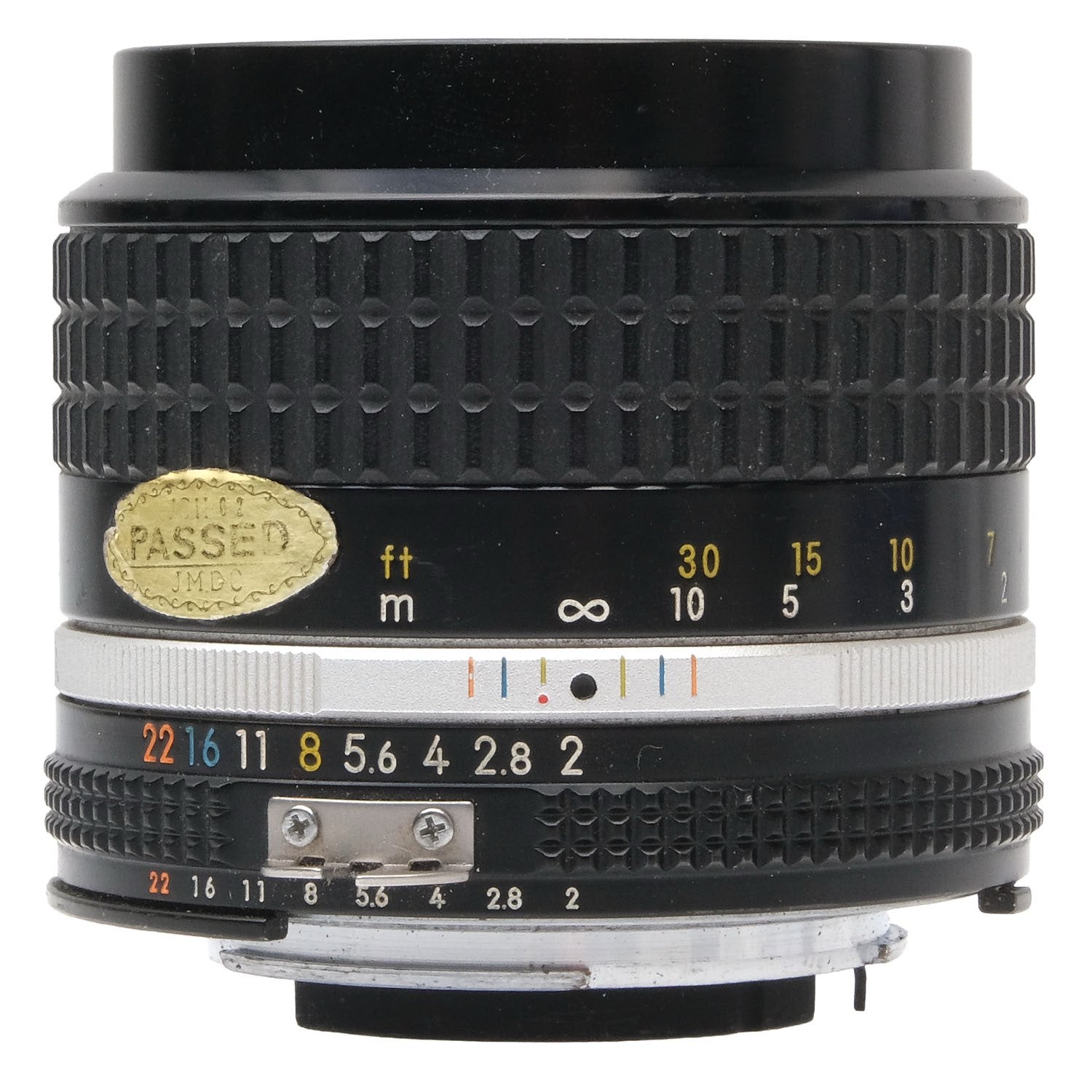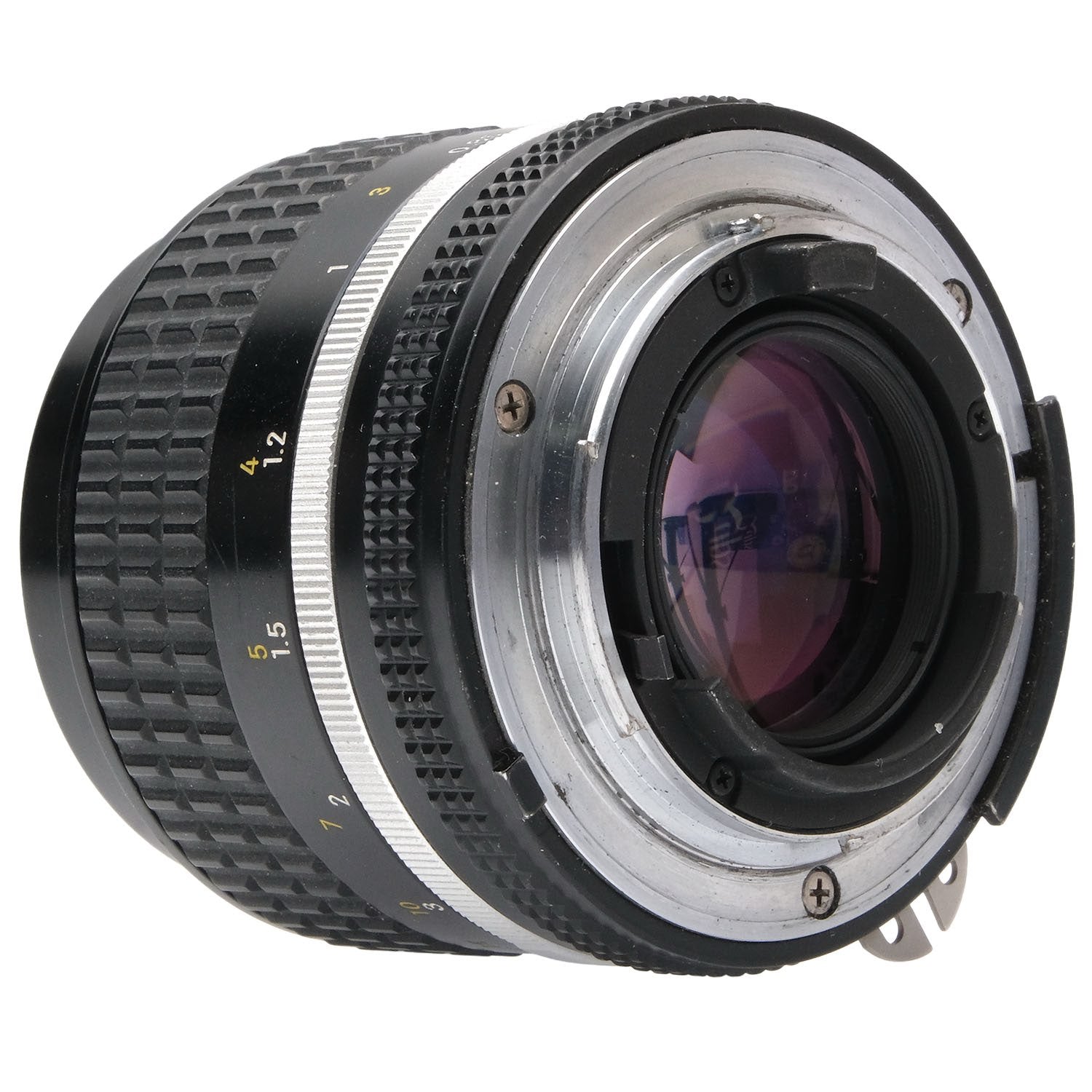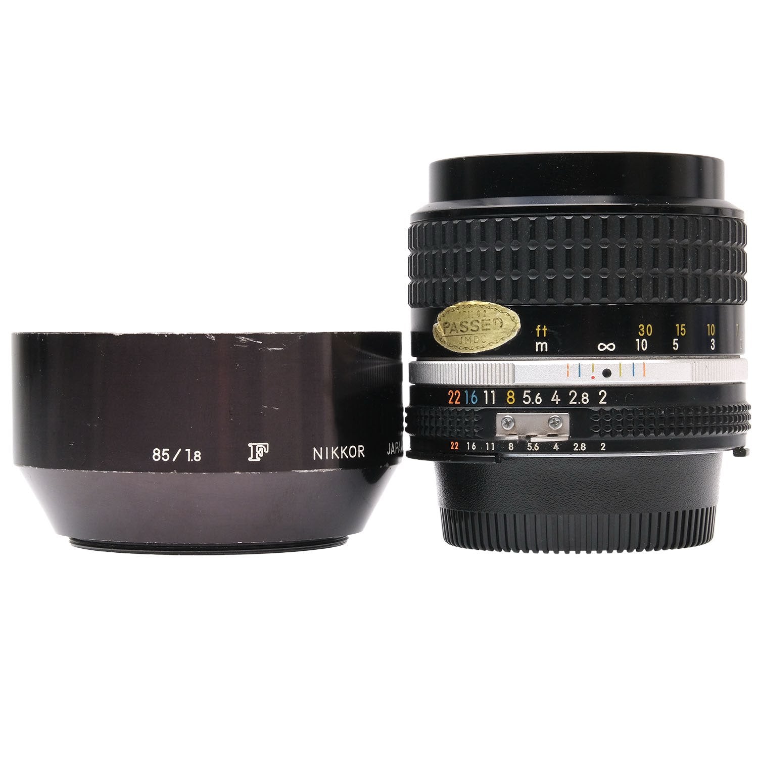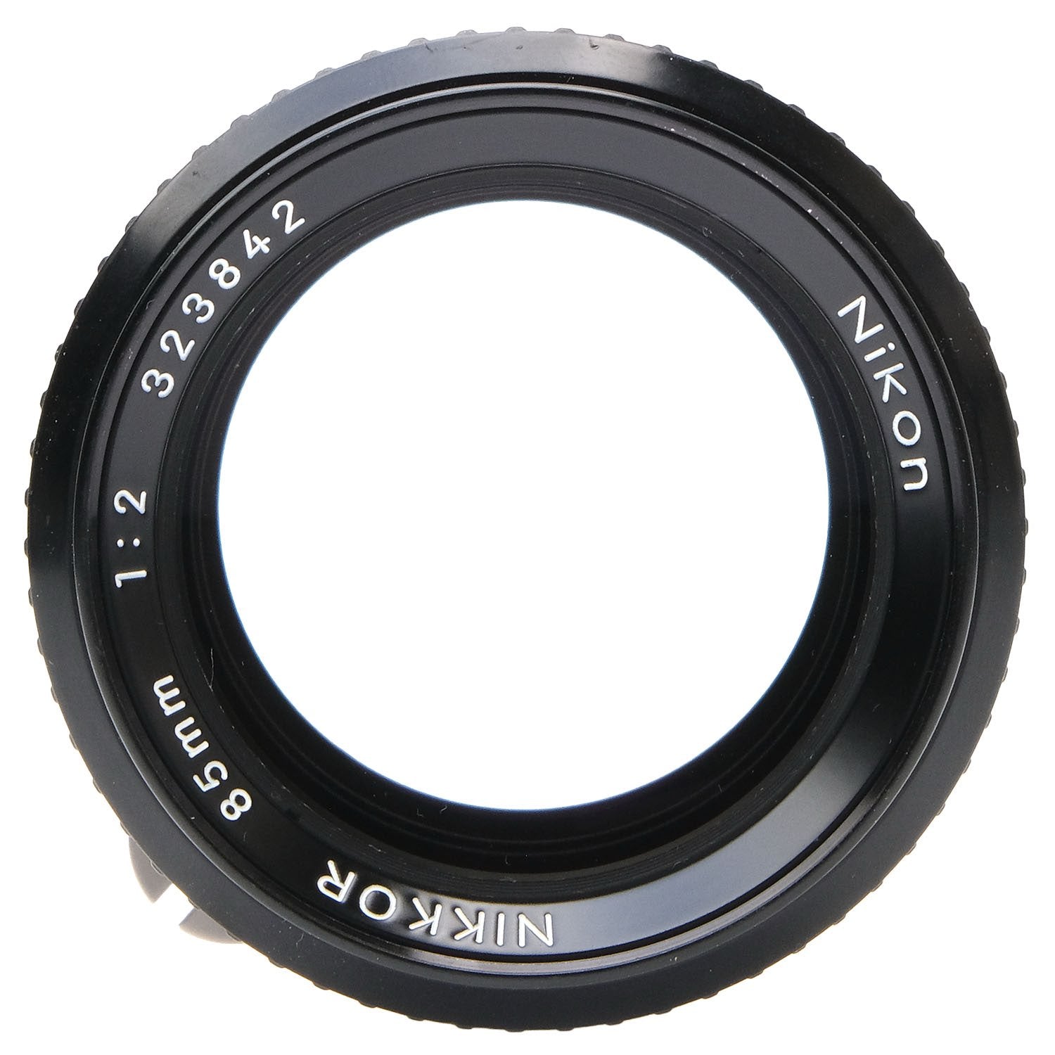 This Nikon AI-S 85mm f2 Nikkor Lens, #323842, is in good condition with some handling wear. I rate it cosmetically an (8+). The aperture ring is smooth, but the focus ring is a bit stiff. The aperture functions properly and the glass is clean and clear with no haze, marks, or fungus. There are a few faint specks of dust inside, but they do not affect image quality. This lens includes a threaded Nikon lens hood, a Nikon L1Bc filter, and rear lens cap. No front cap is included. Please refer to the photos for details.
