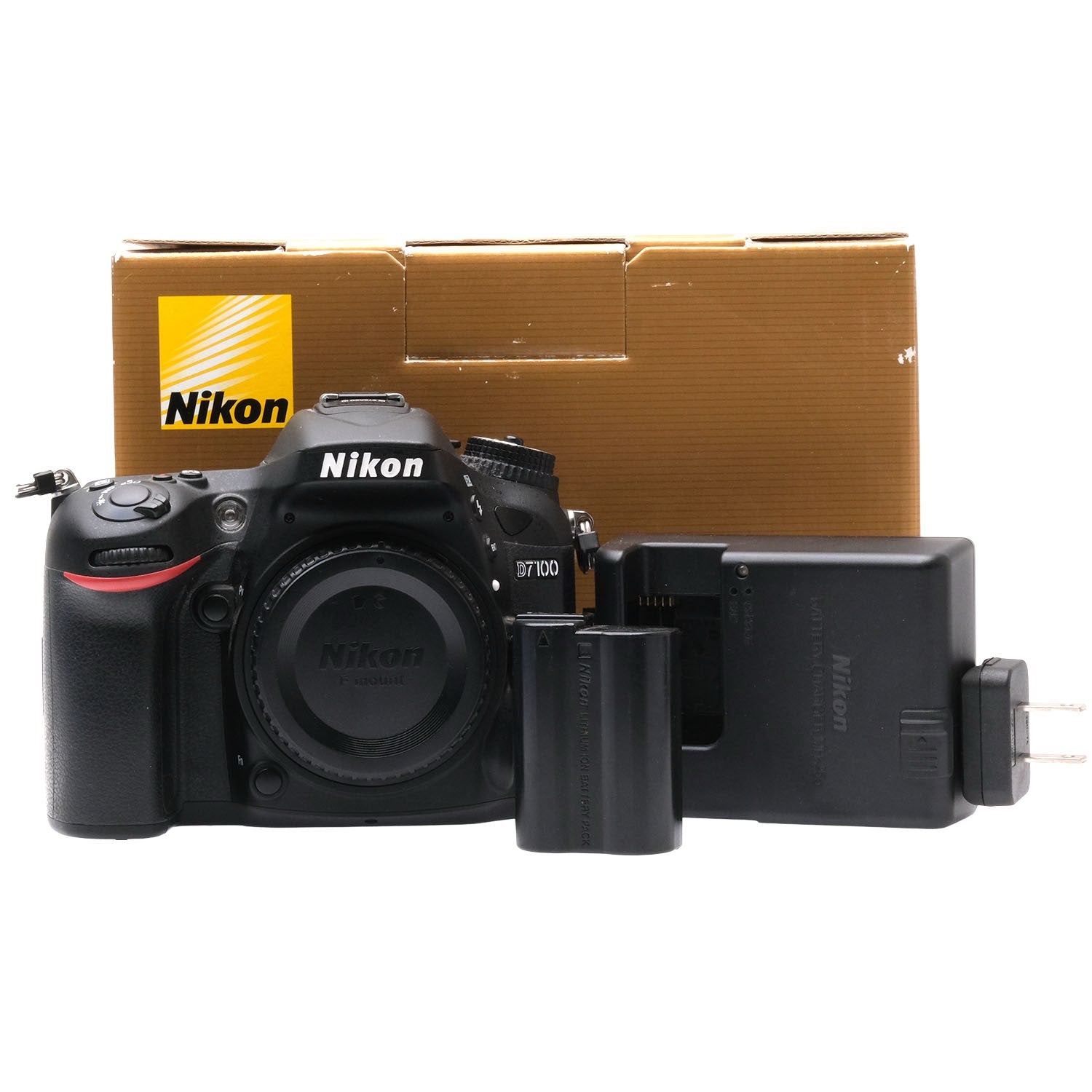 This Nikon D7100, #2544673, is in great condition with minor handling wear. I rate it cosmetically a (9+). It has approximately 1,600 shutter actuations. The camera is in proper working order; the viewfinder is clear, the sensor is unmarked, the memory card slots read & write, and the built-in flash opens, closes, and fires. This camera includes a Nikon battery, battery charger, USB cable, body cap, hot shoe cover, and the original instructions & box. Please refer to the photos for details.