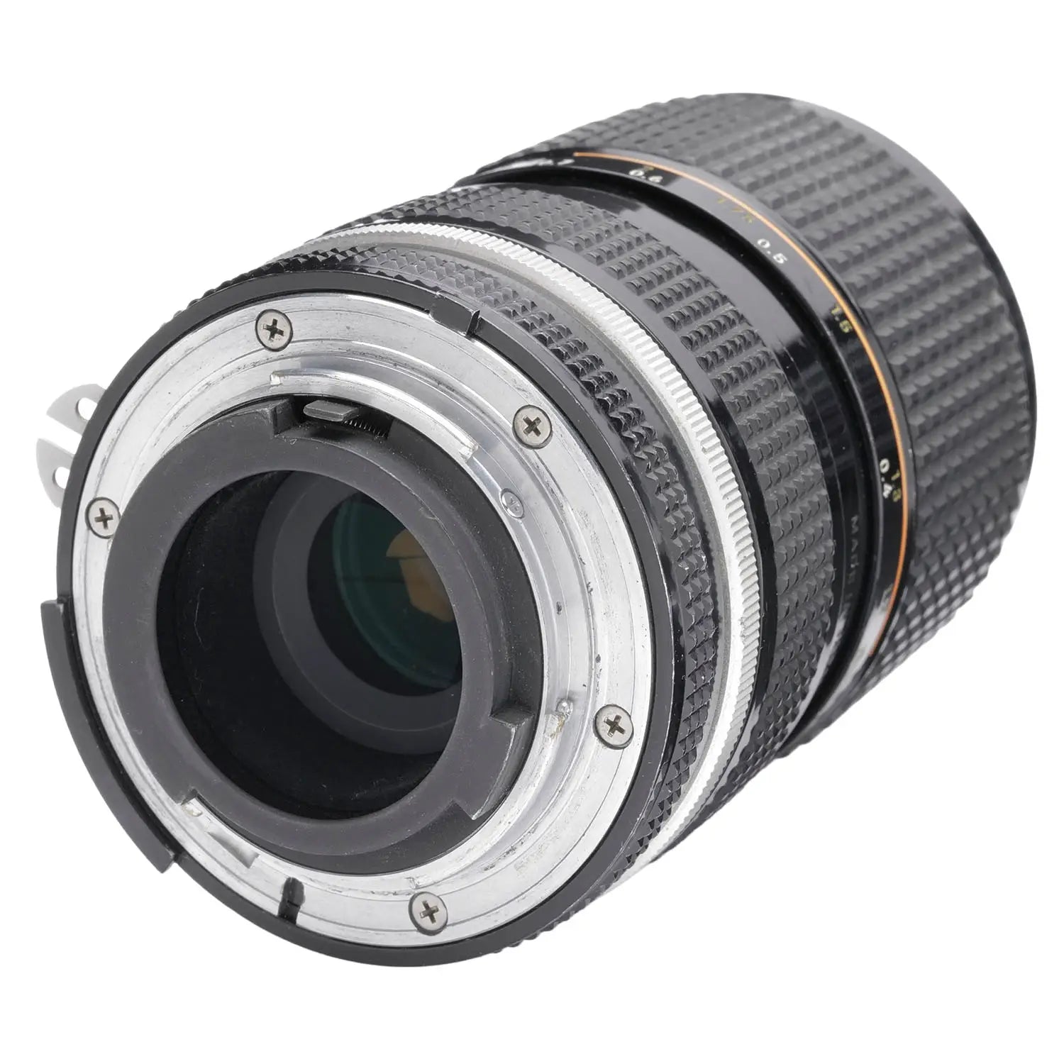This Nikon 35-70mm f3.5 AIS Zoom Lens, #948111, is in bargain condition with average edge and handling wear. I rate it cosmetically at (7+) condition. The zoom and focus are smooth and the aperture works properly. The glass is clean and clear with no haze, marks or fungus. This lens comes with both caps.