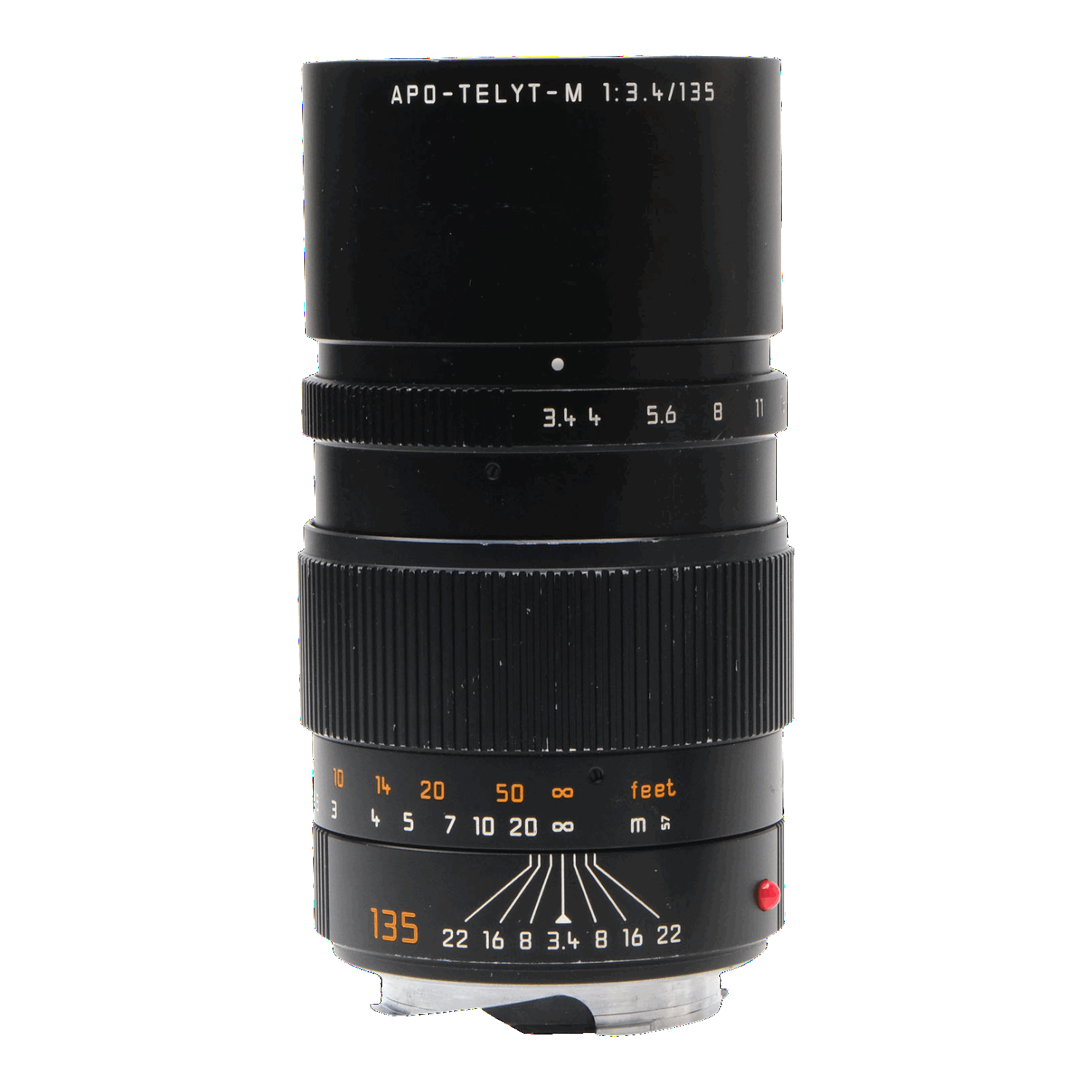 This Leica 135mm f3.4 APO-Telyt-M Lens (Black), #44185058, is in good condition with some handling wear. I rate it cosmetically an (8). The aperture ring is smooth, but the focus ring is a bit stiff and makes some slight noise. The aperture functions properly, and the glass is clean and clear with no haze, marks, or fungus. There are a few faint specks of dust inside, but they do not affect image quality. This lens includes a leather Leica lens case, front & rear caps, and the original instructions & box. Please refer to the photos for details.